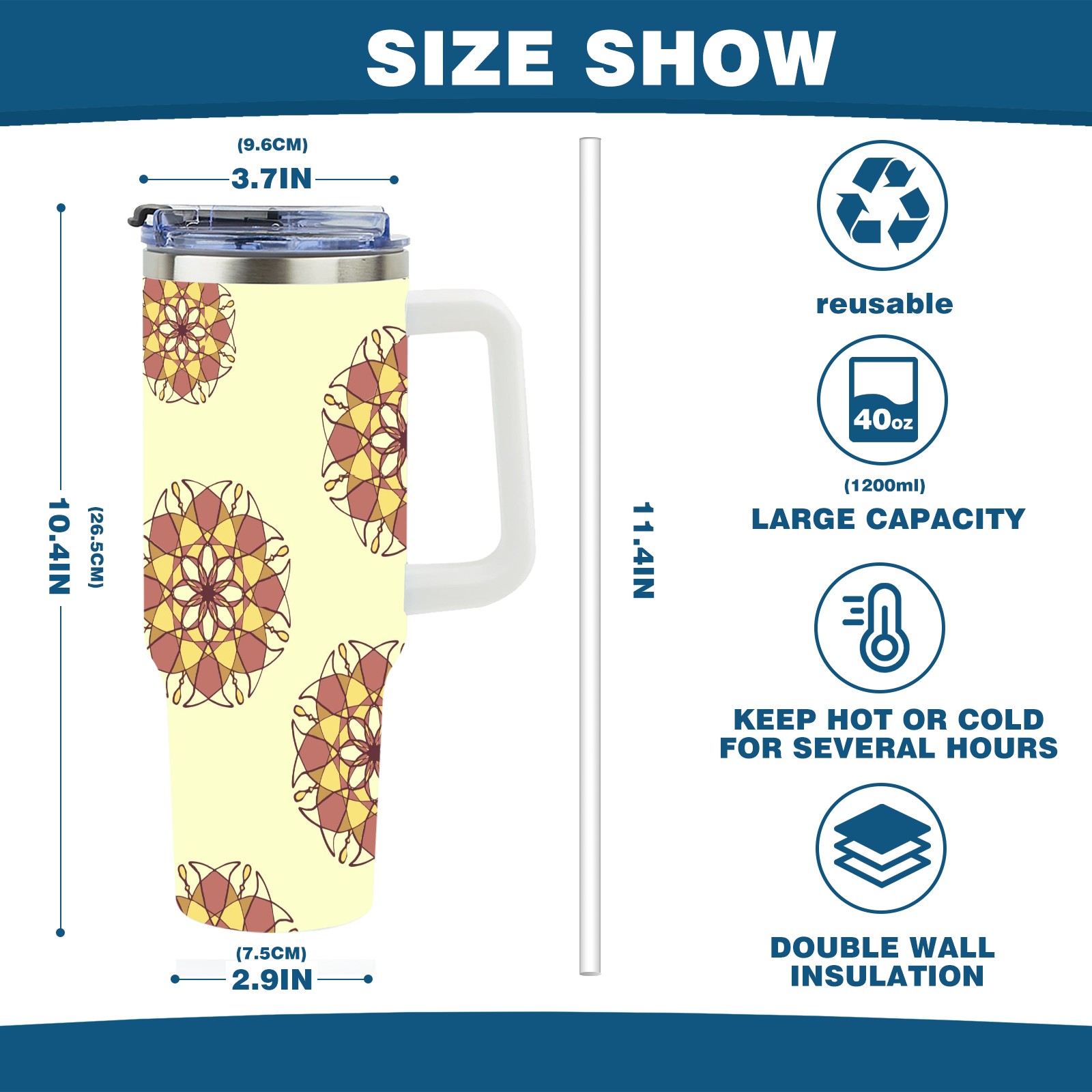 • <p>This multi-functional insulated water bottle features a simple and practical design, suitable for various daily scenarios. The ergonomic handle allows for easy one-handed drinking, and the detachable handle can be adjusted or removed as needed, making it convenient for commuting, exercising, or carrying to meetings. Made of high-quality stainless steel, it is BPA-free and features double-walled vacuum insulation technology that keeps drinks cold for 8 hours and hot for 6 hours, ensuring you can enjoy your beverage at the perfect temperature anytime, anywhere. The 40-ounce Christmas edition comes with a sliding lid, silicone straw, and a non-slip design. Accessories are dishwasher safe, and the narrow bottom and wide mouth design perfectly fits car cup holders. The exclusive flip-top straw lid is environmentally friendly and durable, with a one-touch leak-proof closure and two drinking modes: sip and gulp. A dust cover provides effective protection. This bottle is suitable for travel, office work, sports, camping, and other occasions, making it a thoughtful gift for friends and family.</p>