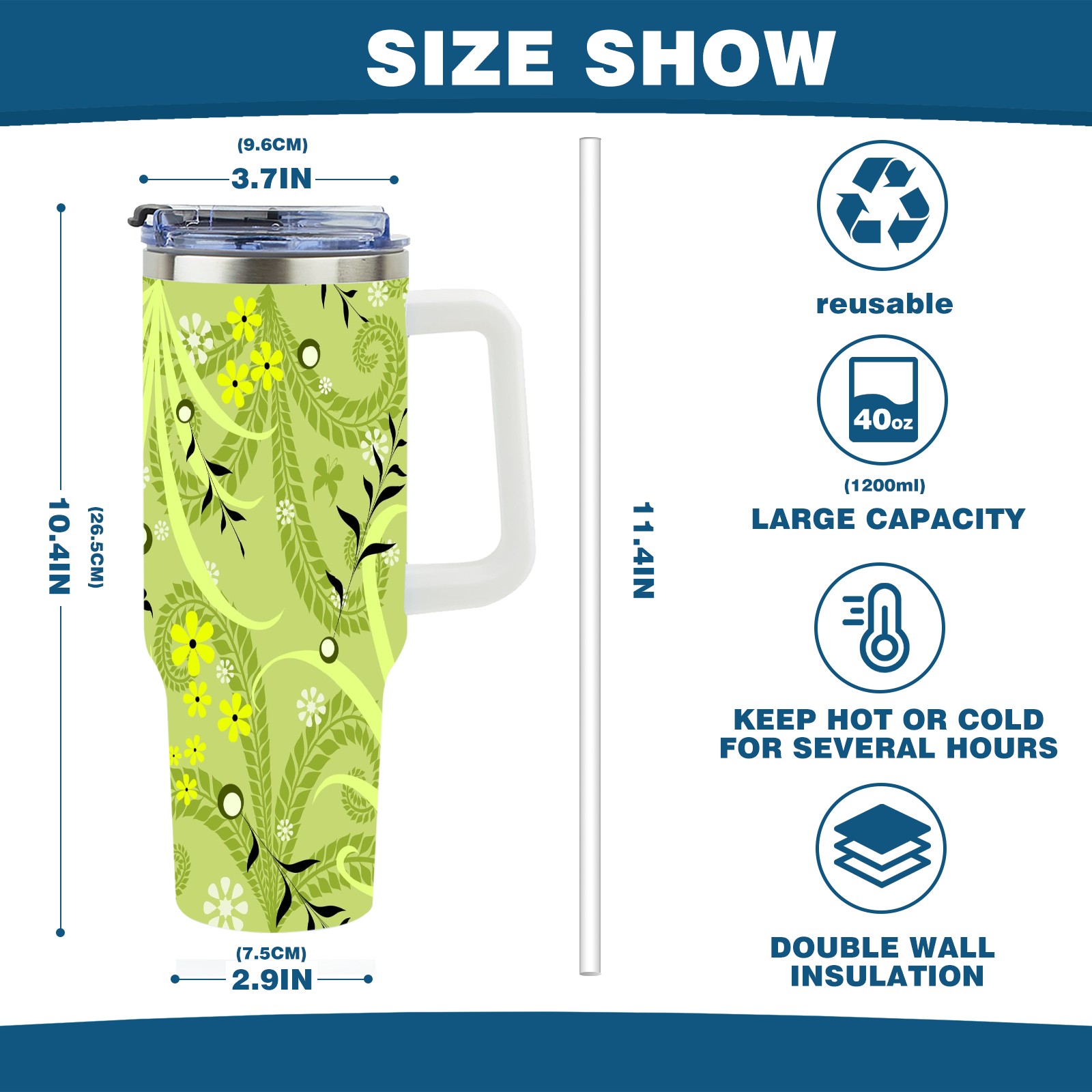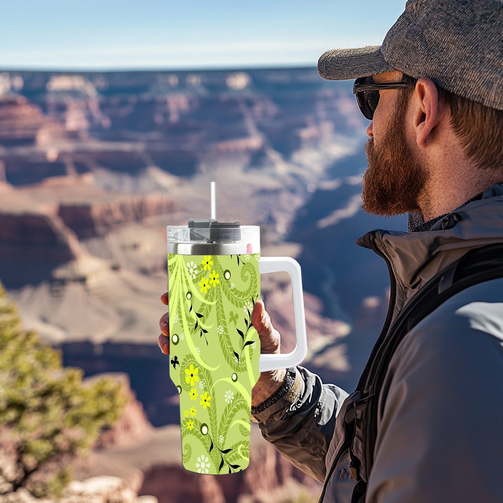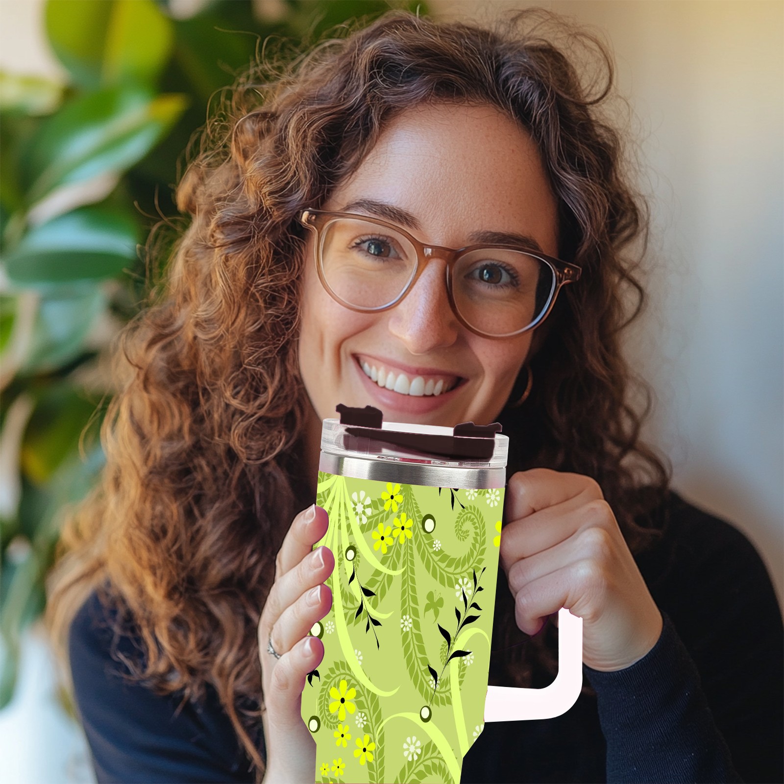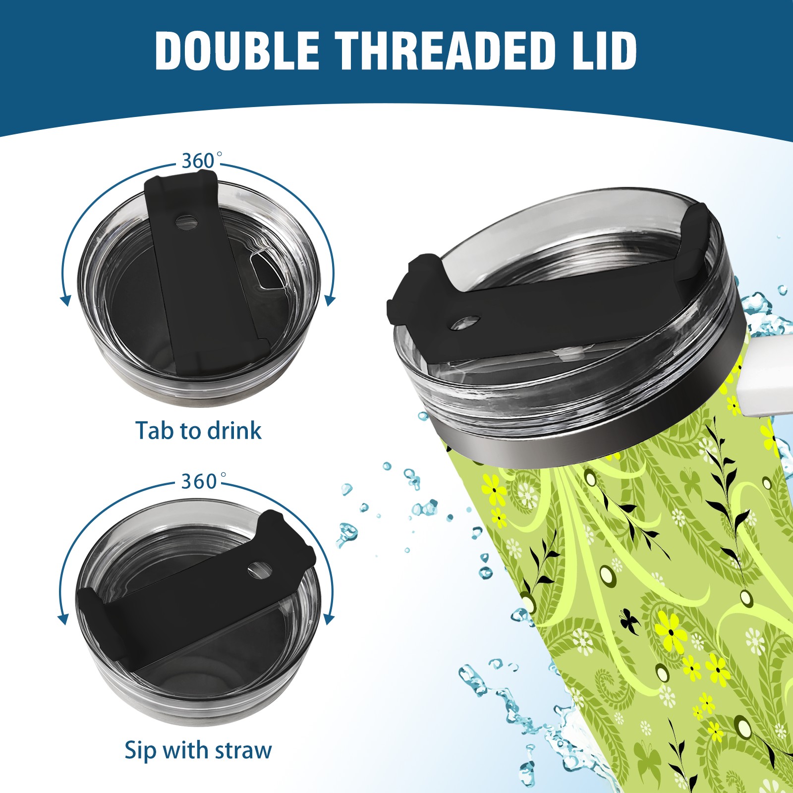 40oz Leaf Green Seamless thermos with lid and straw, leak-proof stainless steel, with handle, spill-proof bottle, convenient for travel(pink)
