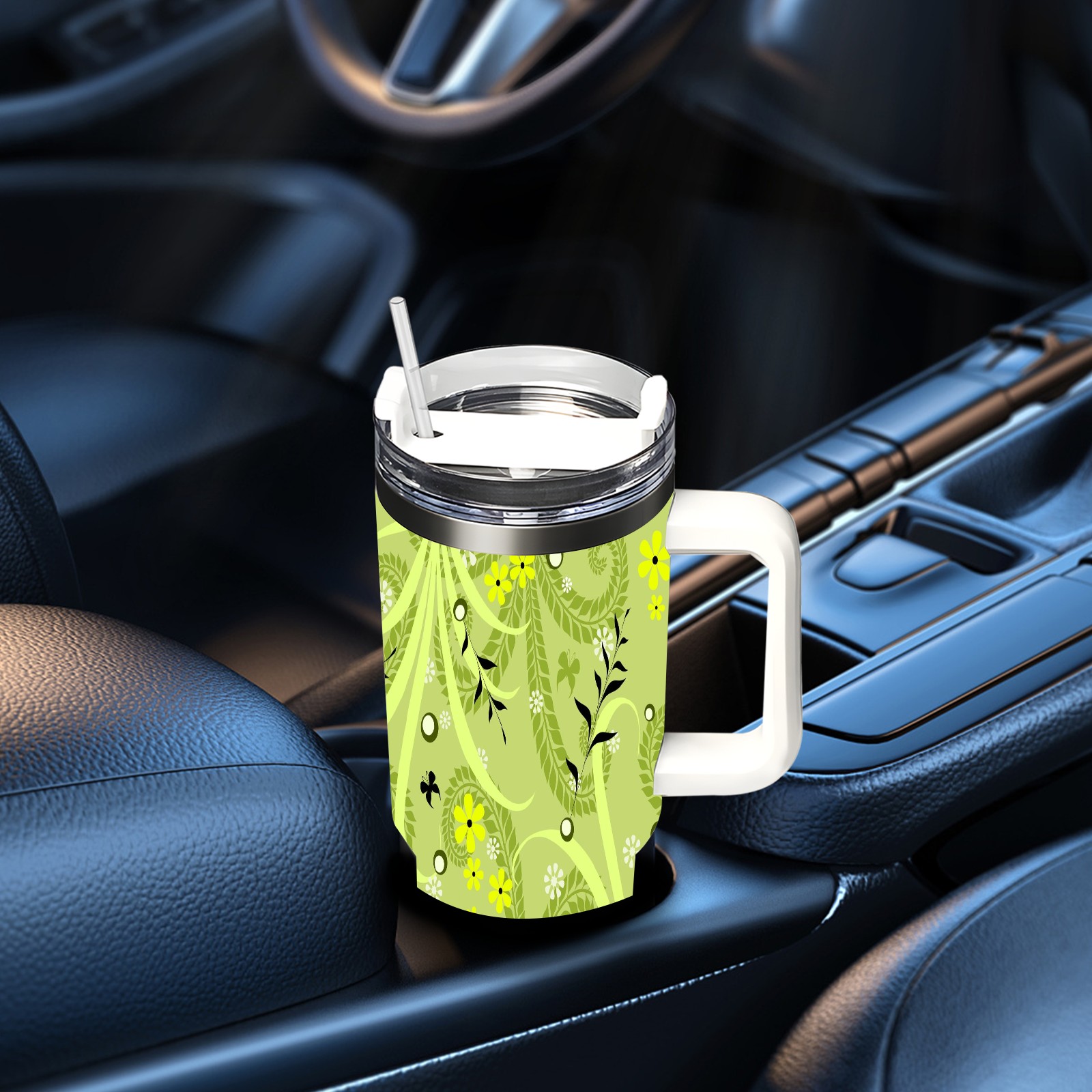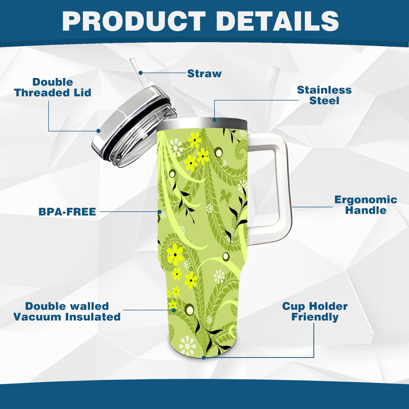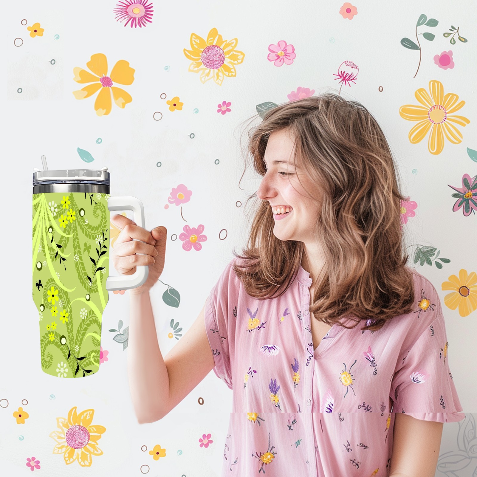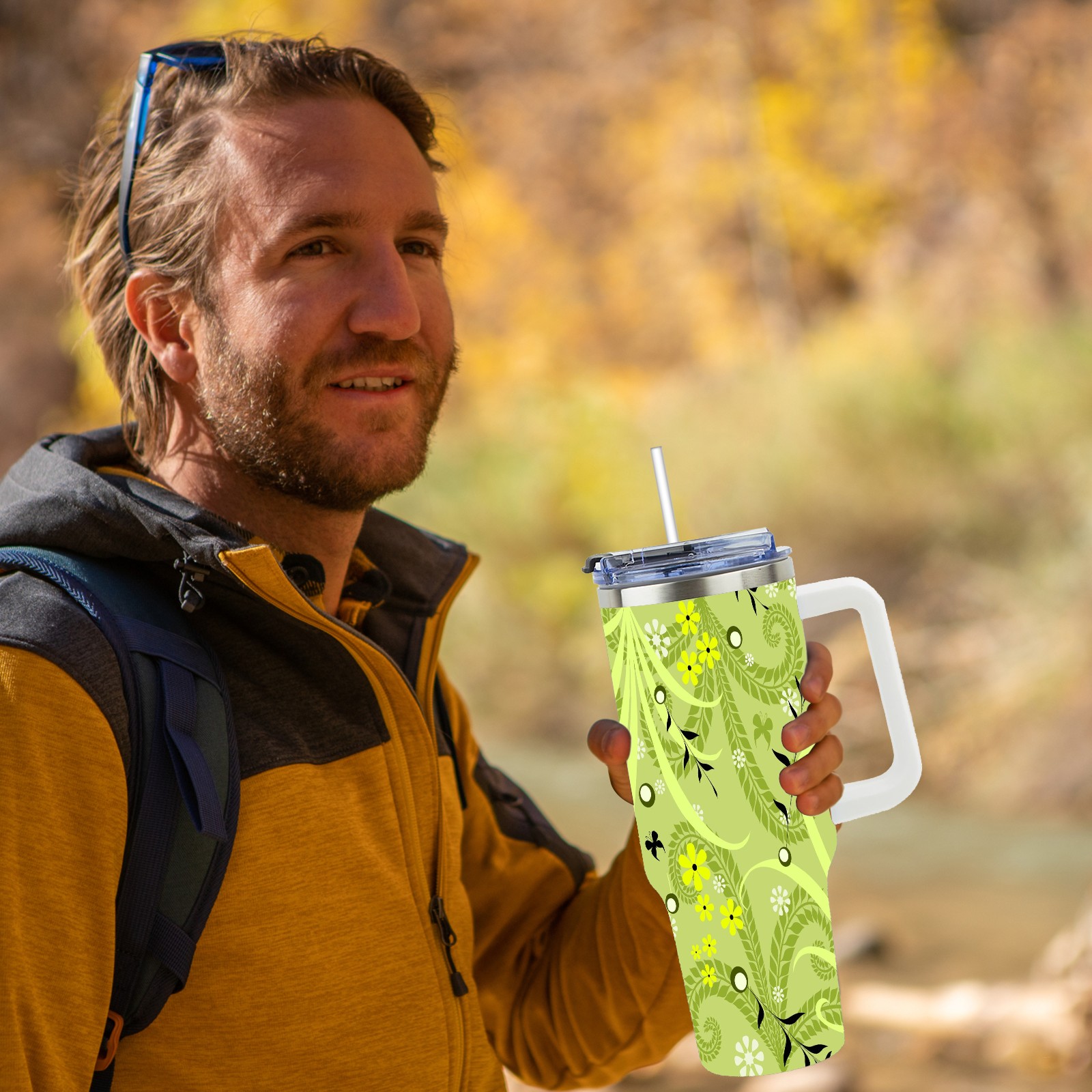 40oz Leaf Green Seamless thermos with lid and straw, leak-proof stainless steel, with handle, spill-proof bottle, convenient for travel(pink)