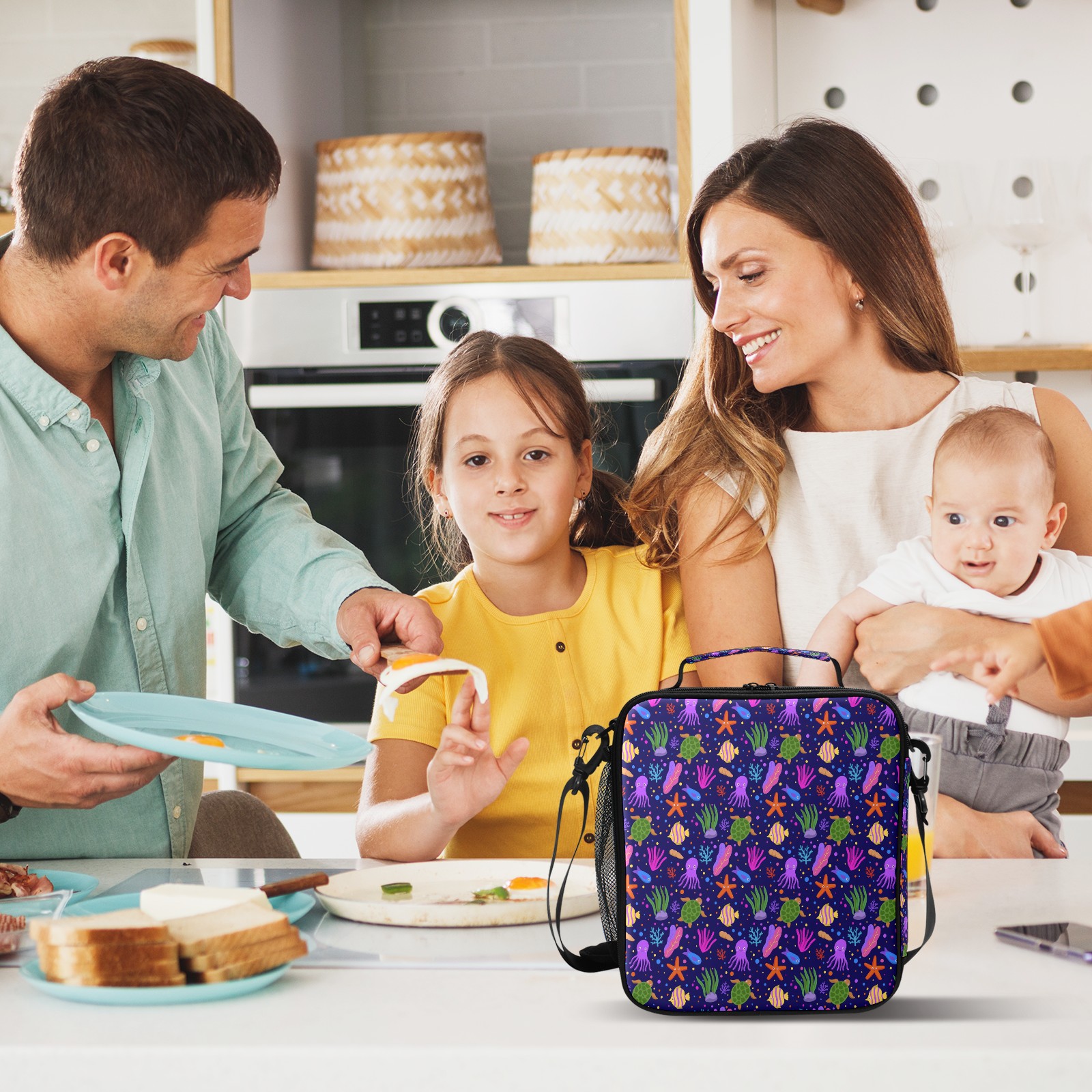 方形餐包 Cartoon Octopus Turtle Coral