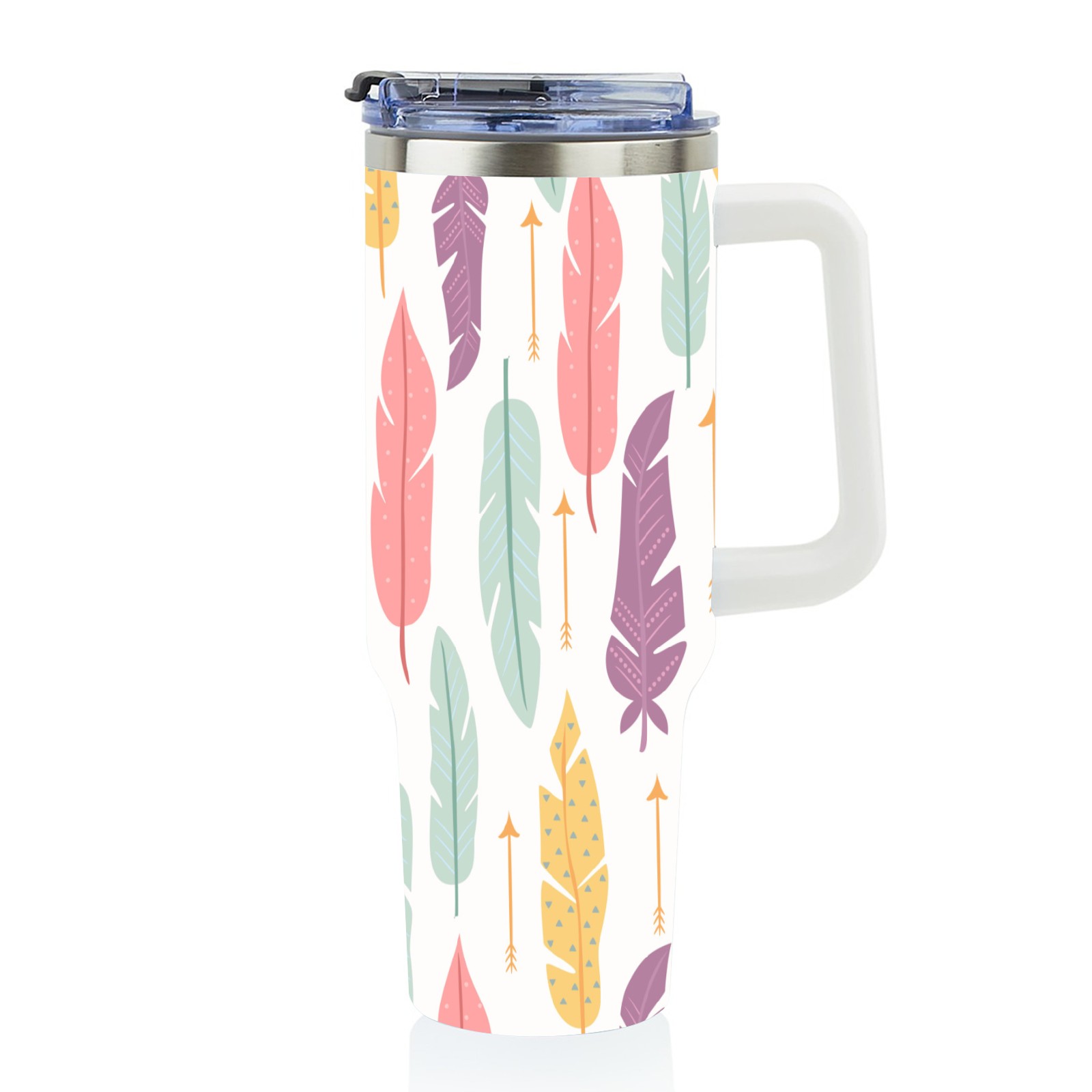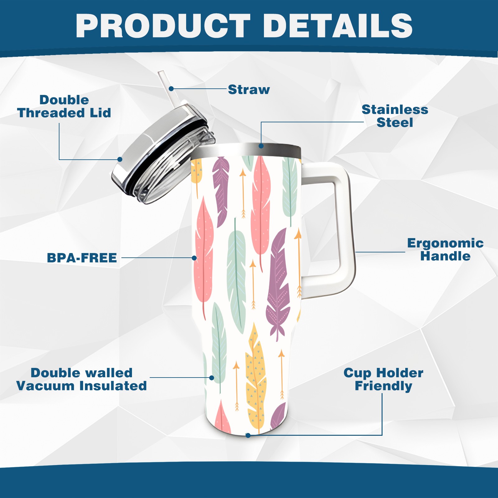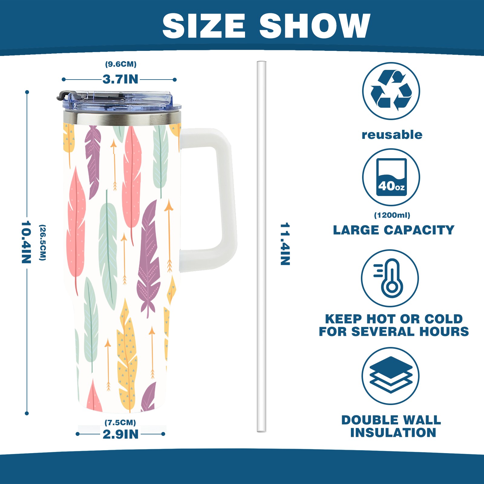40oz Feathers Colorful Seamless thermos with lid and straw, leak-proof stainless steel, with handle, spill-proof bottle, convenient for travel(pink)