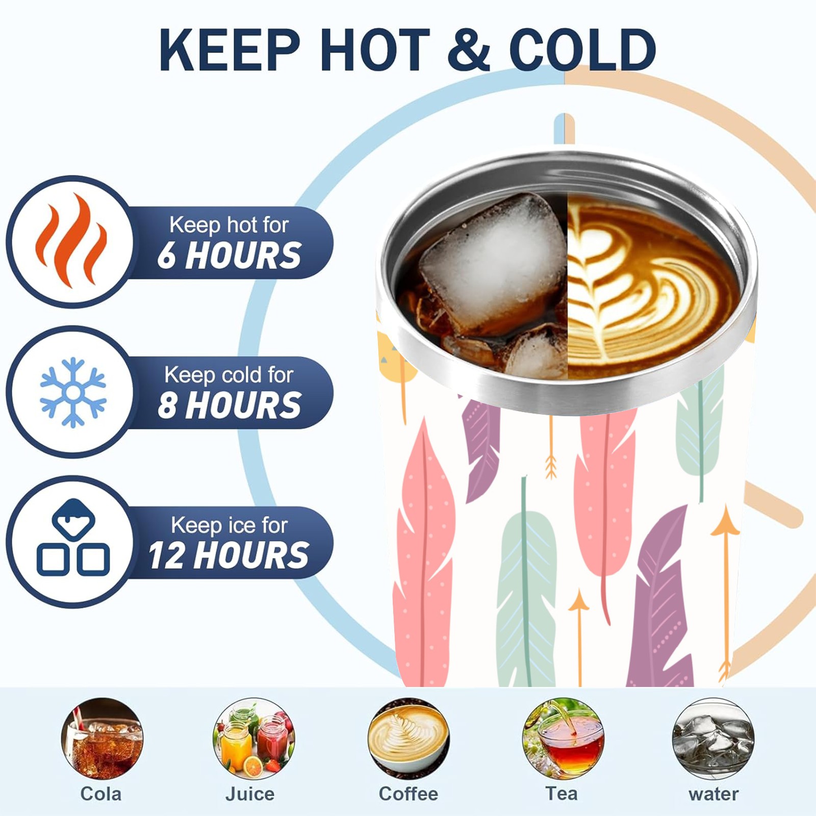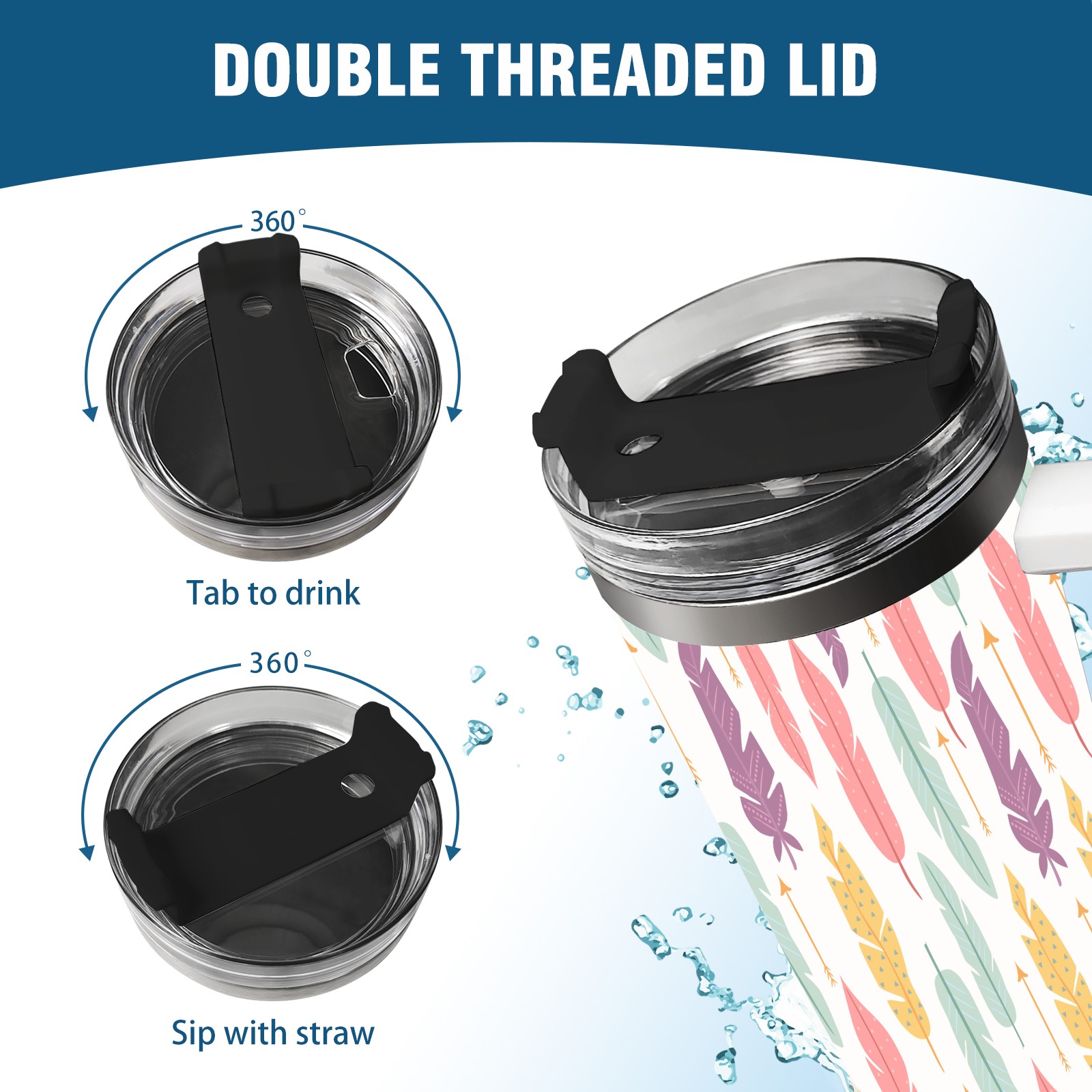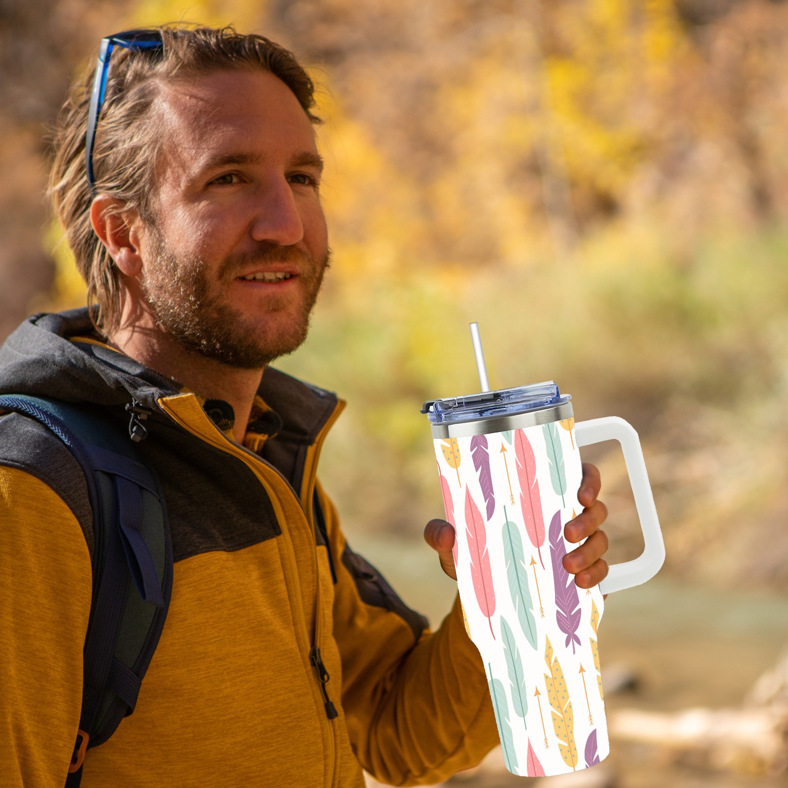 40oz Feathers Colorful Seamless thermos with lid and straw, leak-proof stainless steel, with handle, spill-proof bottle, convenient for travel(pink)