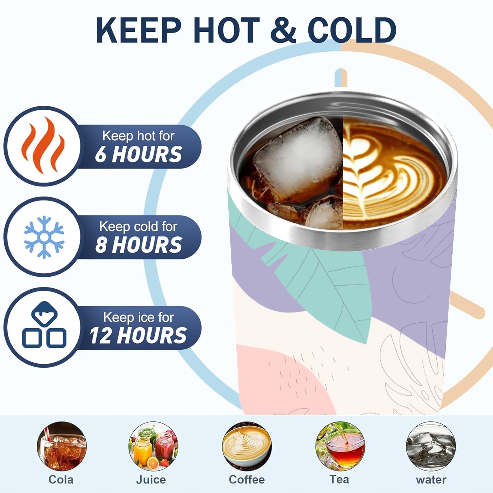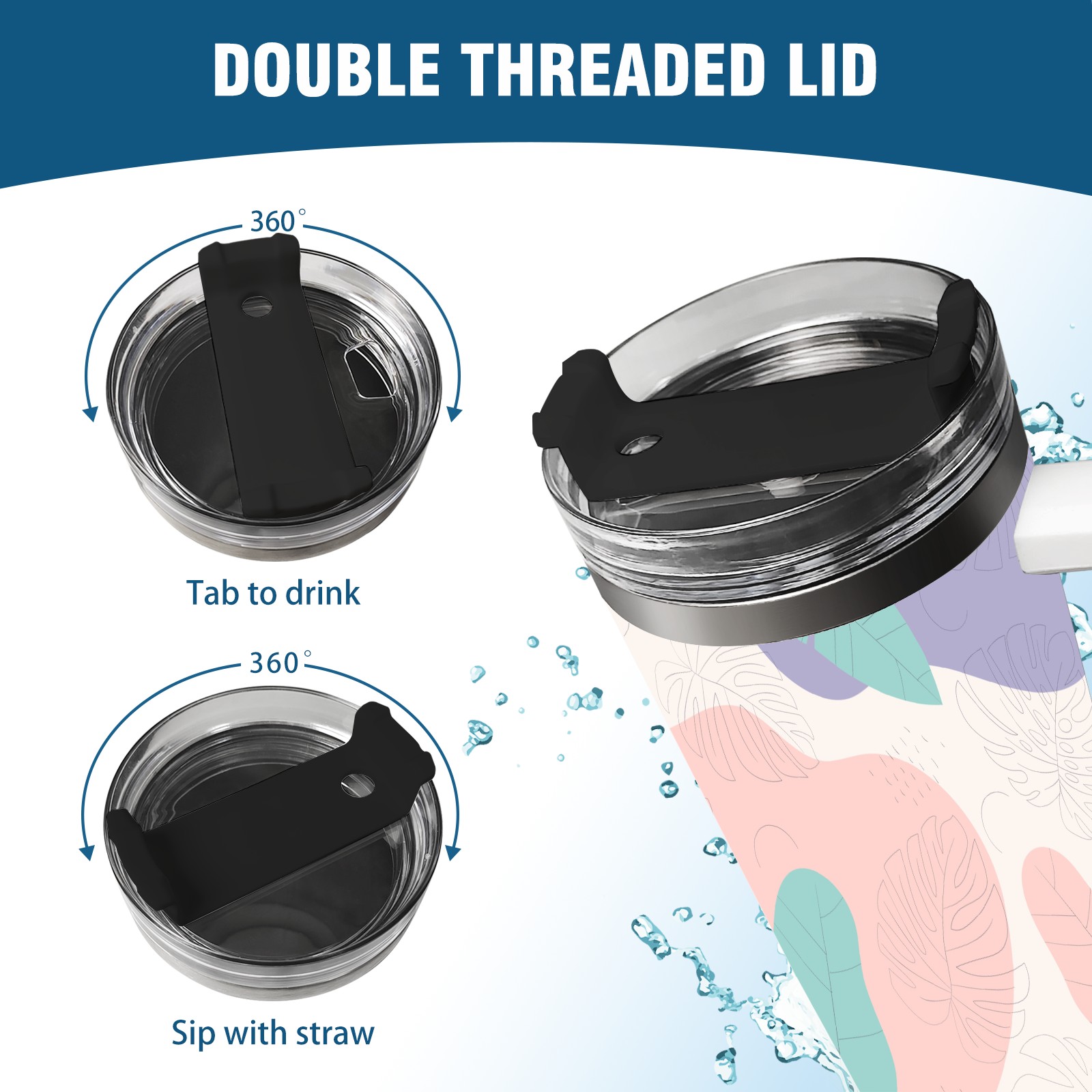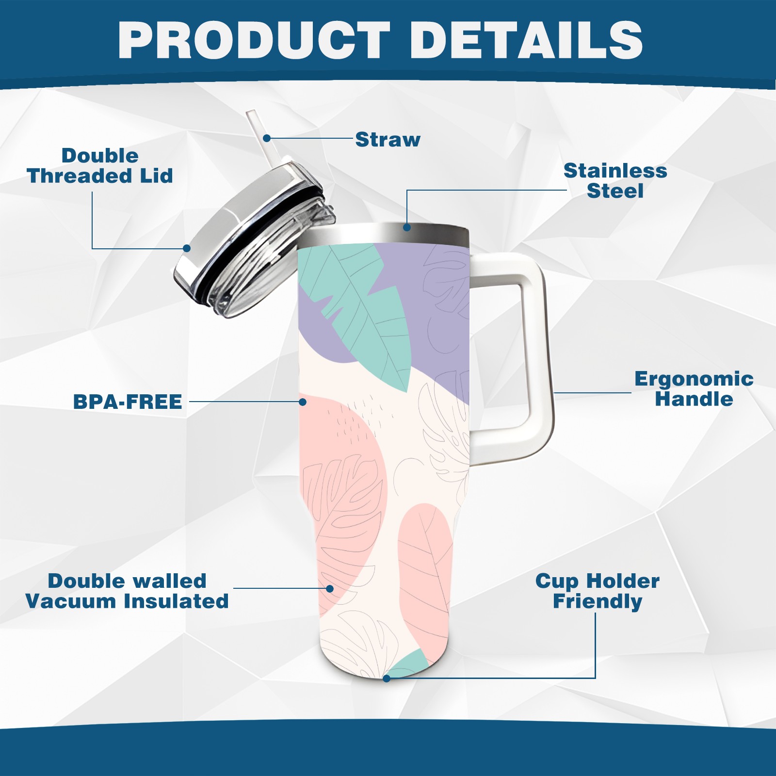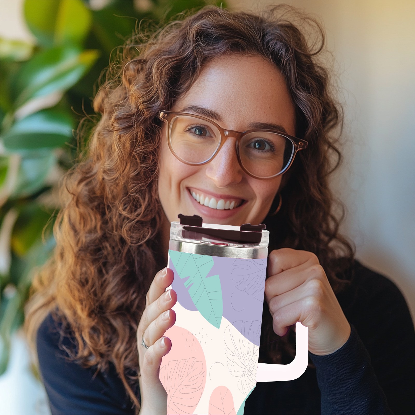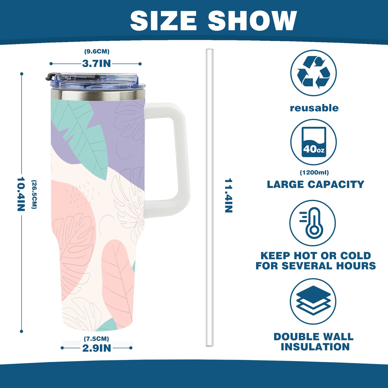 40oz Leaves Colorful Seamless thermos with lid and straw, leak-proof stainless steel, with handle, spill-proof bottle, convenient for travel(pink)