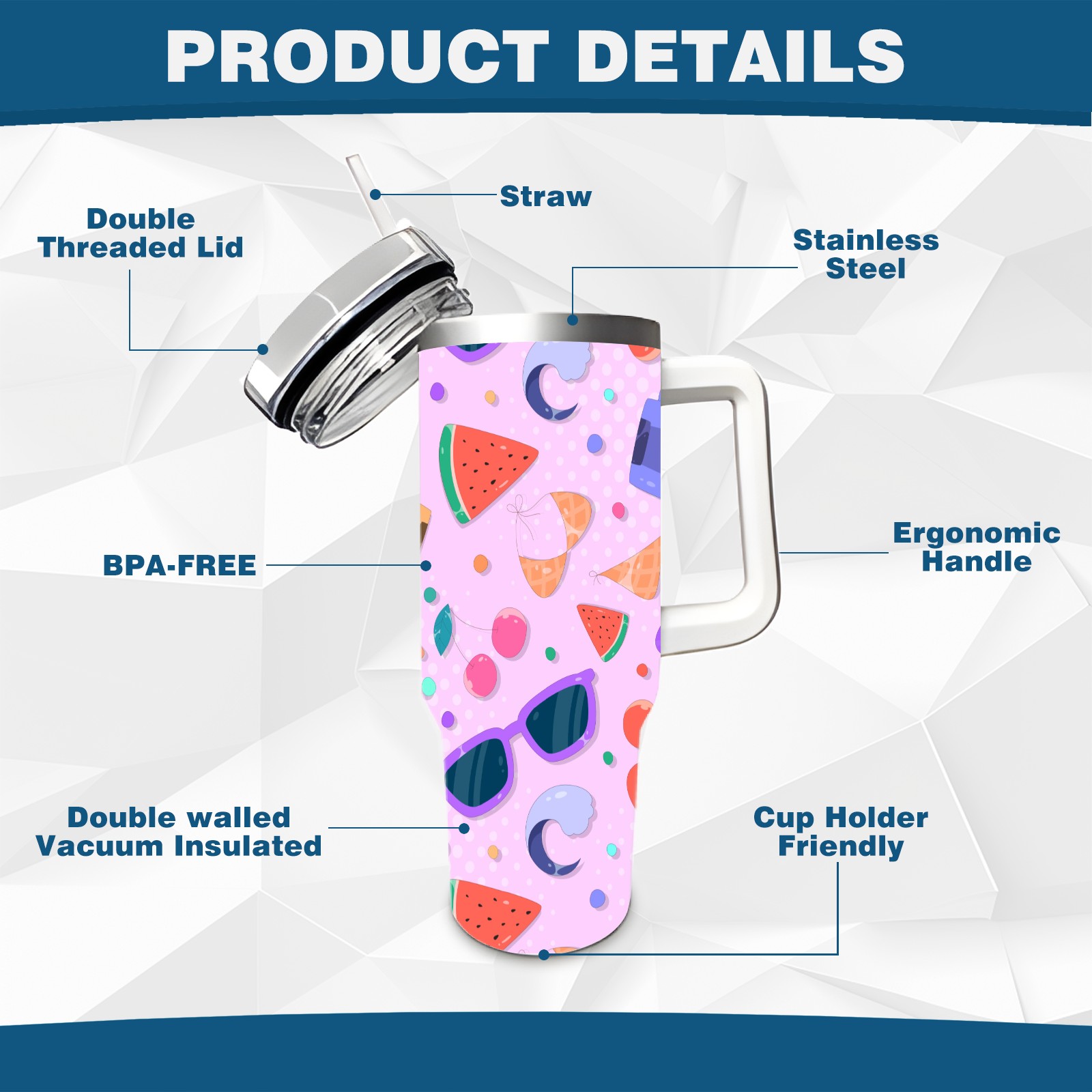 • <p>This multi-functional insulated water bottle features a simple and practical design, suitable for various daily scenarios. The ergonomic handle allows for easy one-handed drinking, and the detachable handle can be adjusted or removed as needed, making it convenient for commuting, exercising, or carrying to meetings. Made of high-quality stainless steel, it is BPA-free and features double-walled vacuum insulation technology that keeps drinks cold for 8 hours and hot for 6 hours, ensuring you can enjoy your beverage at the perfect temperature anytime, anywhere. The 40-ounce Christmas edition comes with a sliding lid, silicone straw, and a non-slip design. Accessories are dishwasher safe, and the narrow bottom and wide mouth design perfectly fits car cup holders. The exclusive flip-top straw lid is environmentally friendly and durable, with a one-touch leak-proof closure and two drinking modes: sip and gulp. A dust cover provides effective protection. This bottle is suitable for travel, office work, sports, camping, and other occasions, making it a thoughtful gift for friends and family.</p>