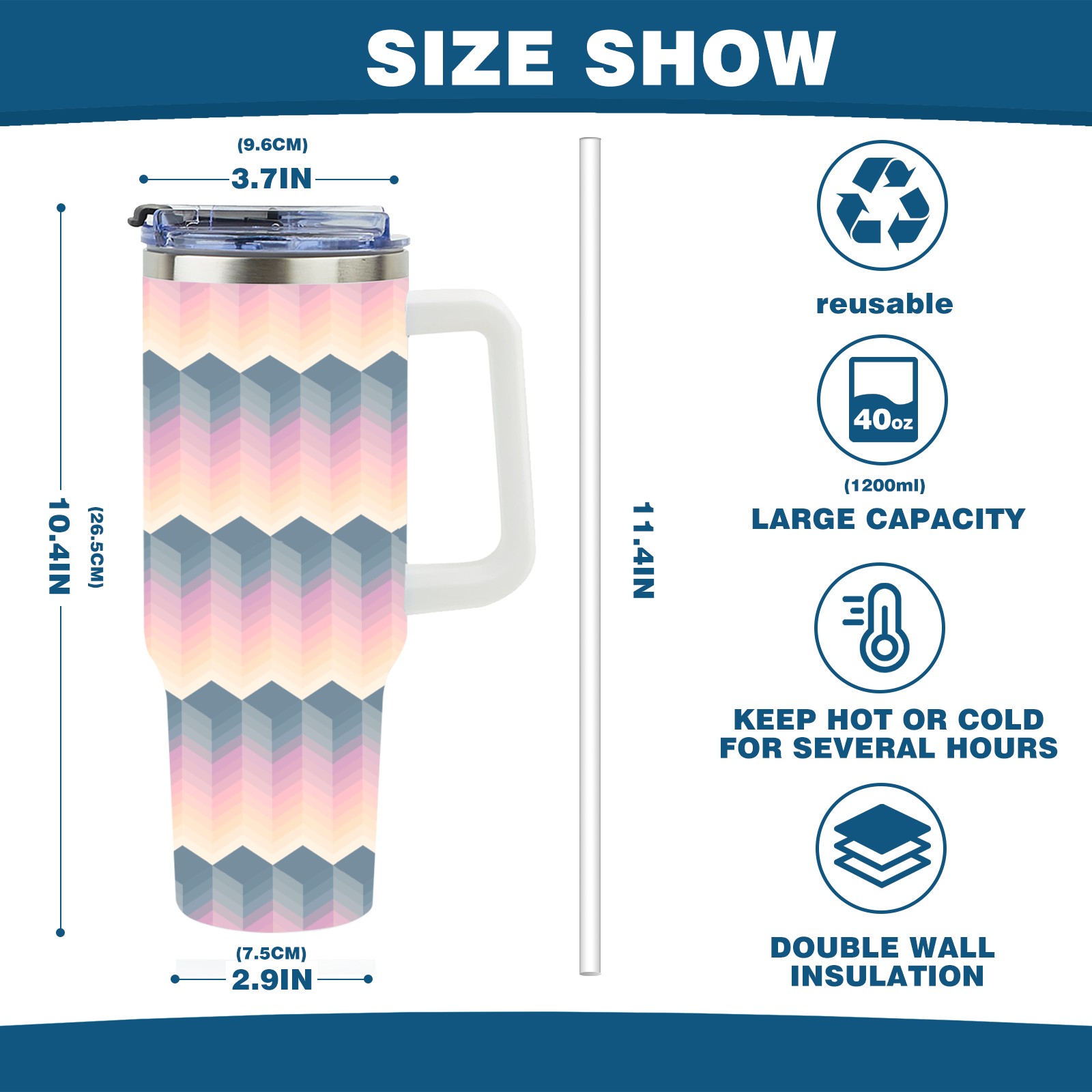40oz Block Seamless Colorful thermos with lid and straw, leak-proof stainless steel, with handle, spill-proof bottle, convenient for travel(pink)