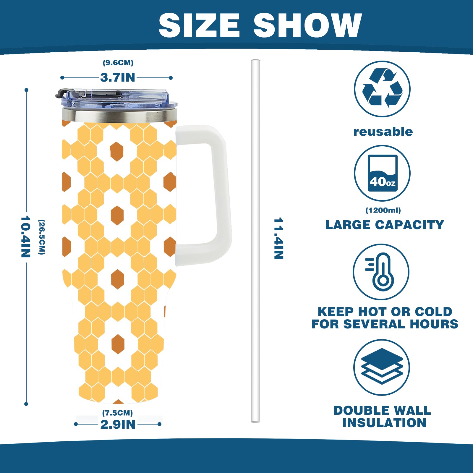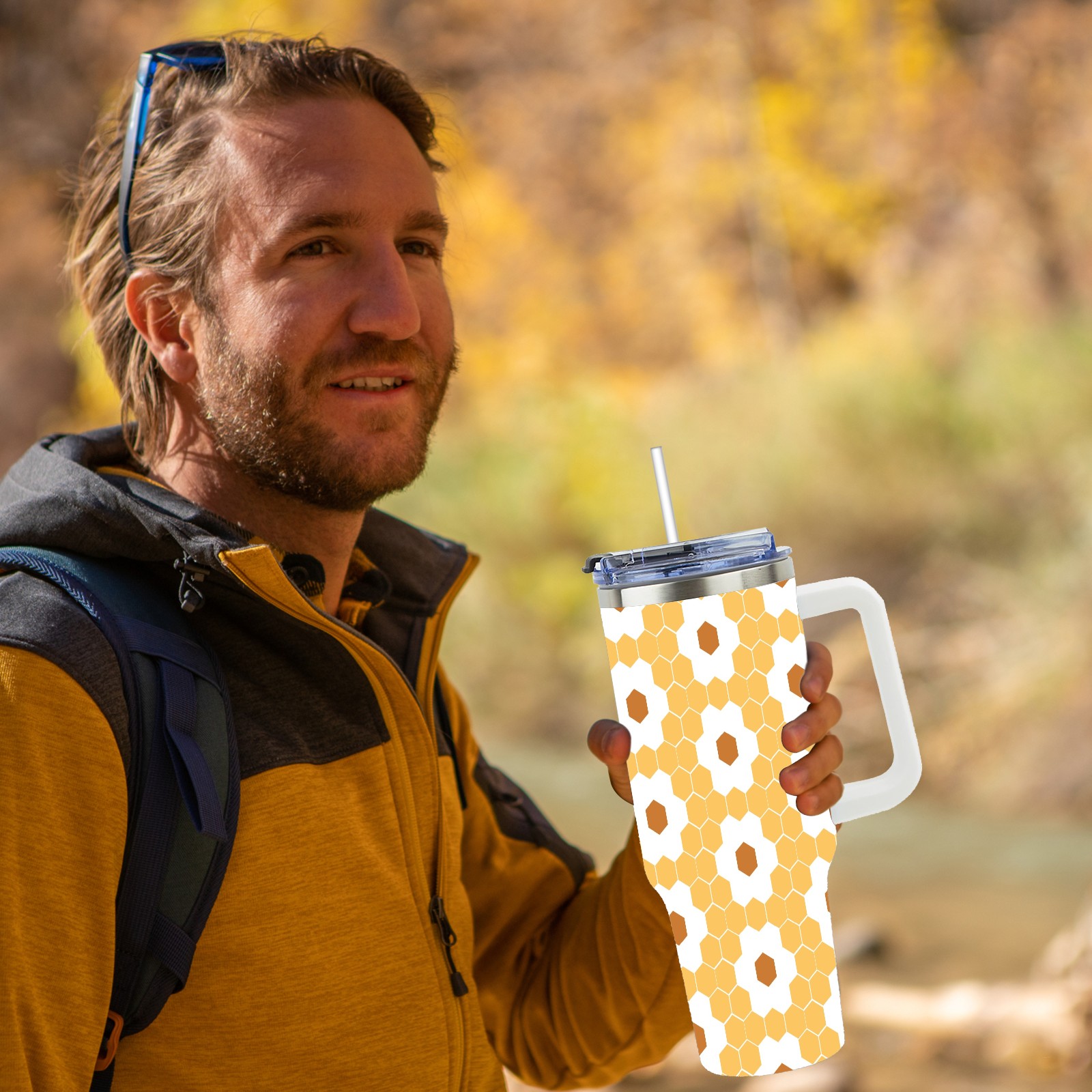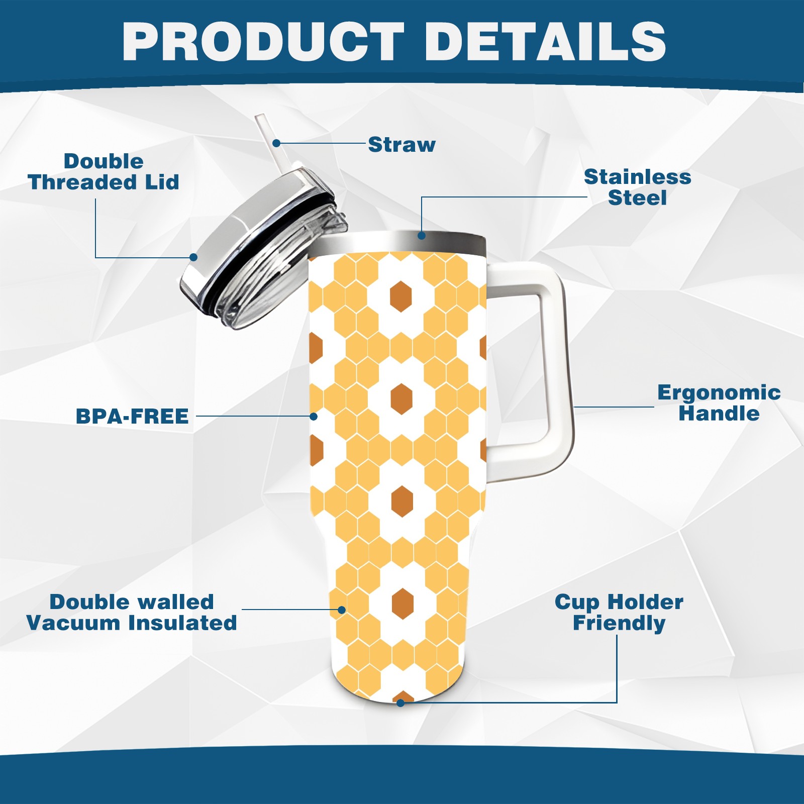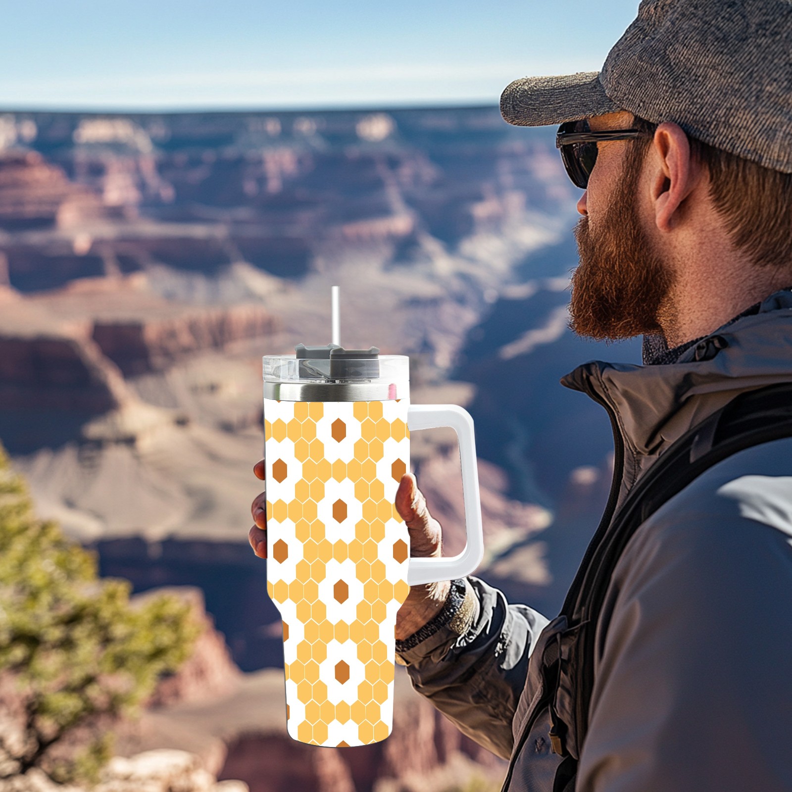 40oz Hexagon Honeycomb Seamless thermos with lid and straw, leak-proof stainless steel, with handle, spill-proof bottle, convenient for travel(pink)