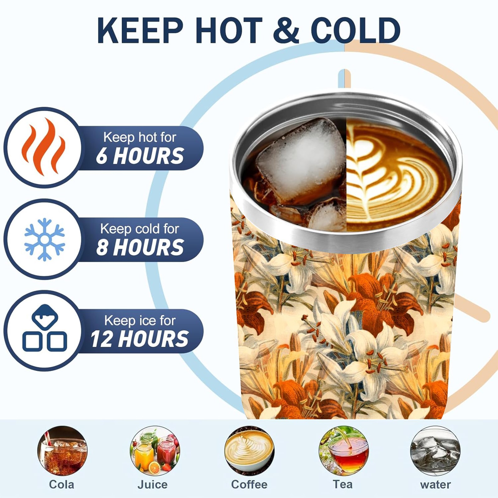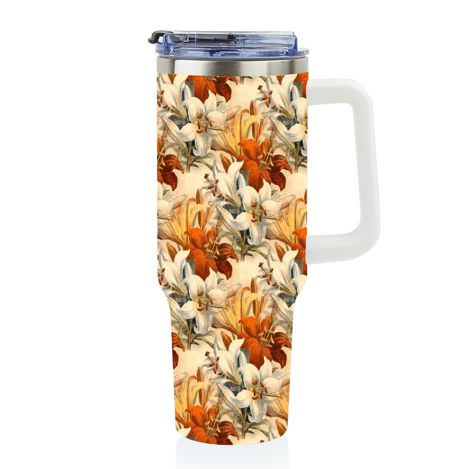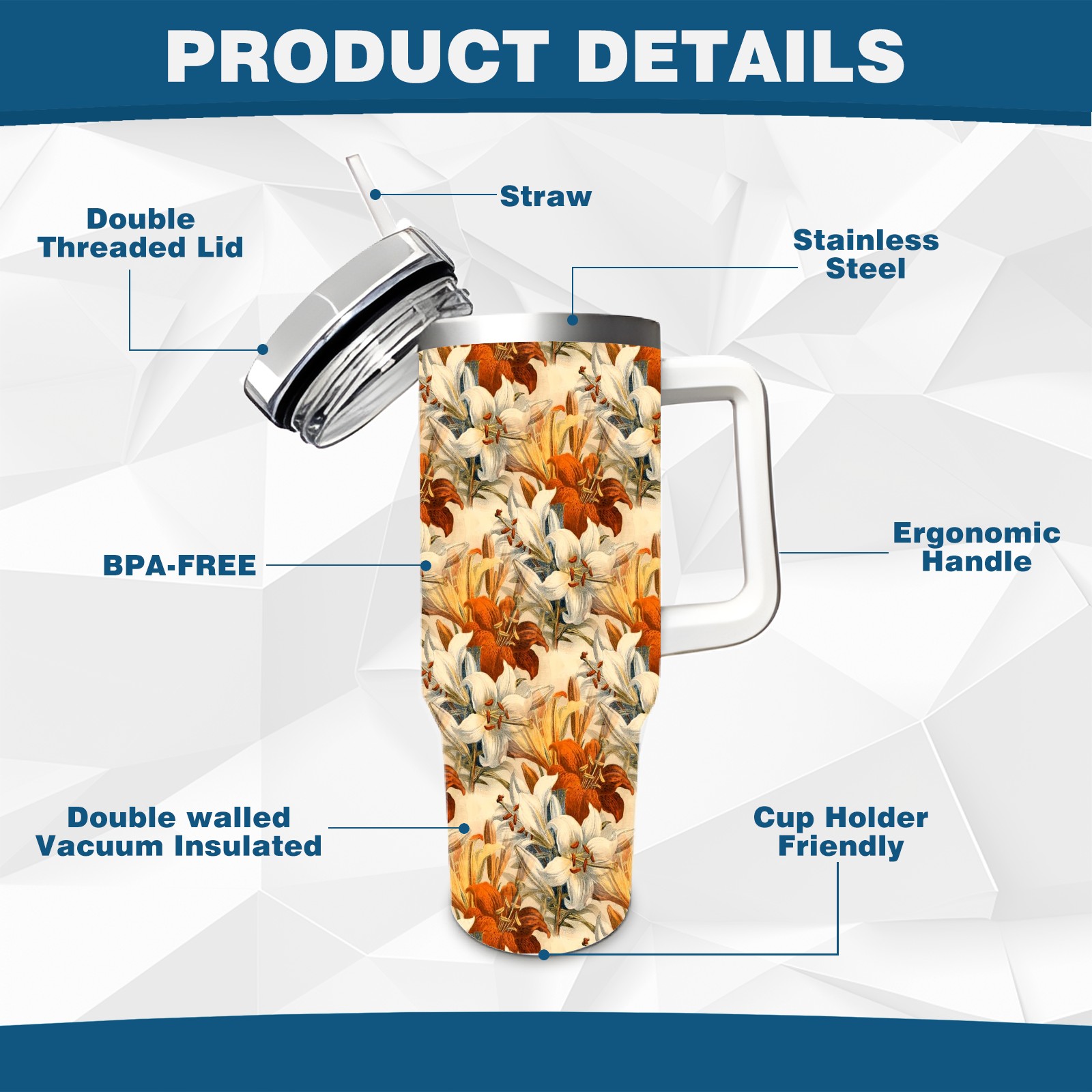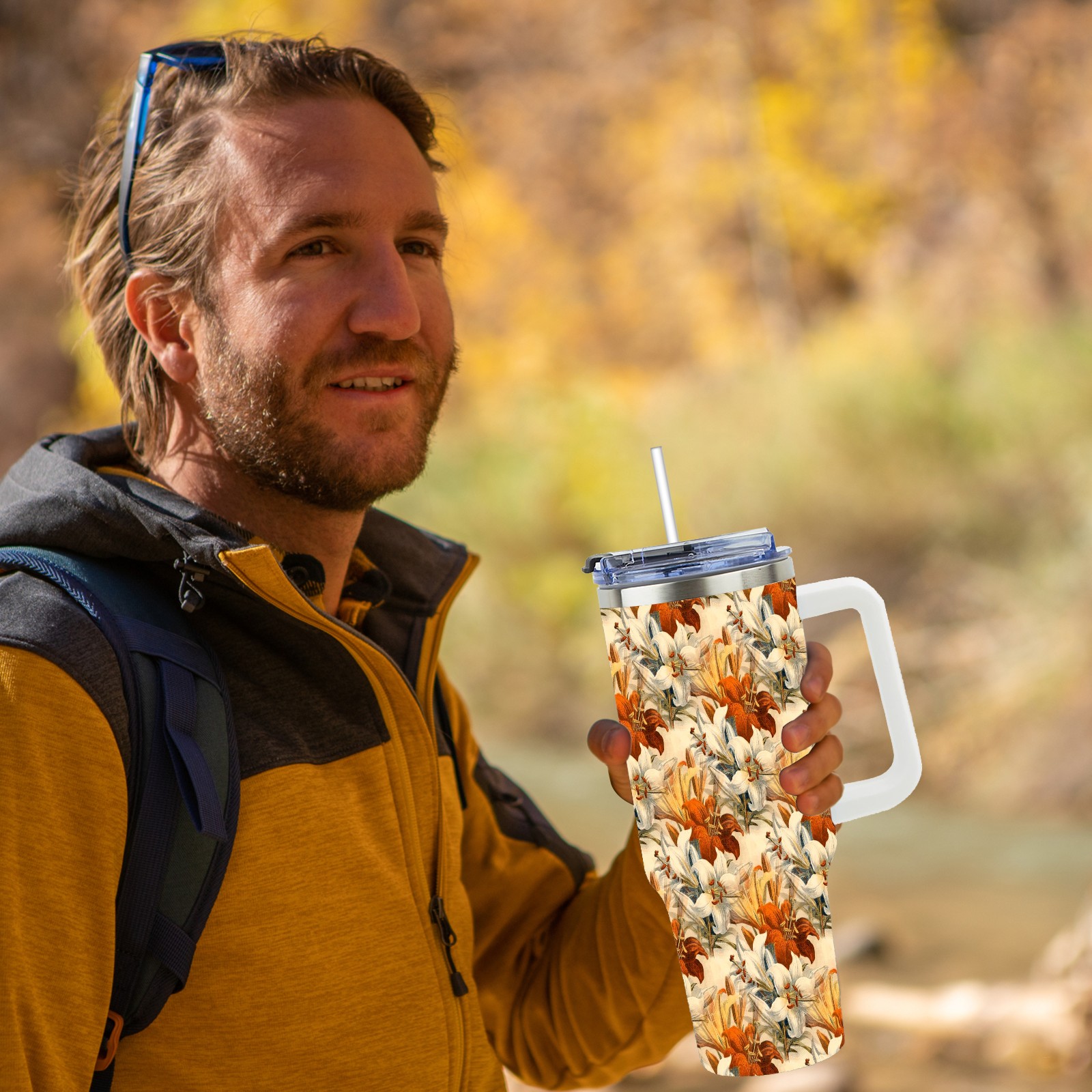 40oz Flower Seamless Retro thermos with lid and straw, leak-proof stainless steel, with handle, spill-proof bottle, convenient for travel(pink)
