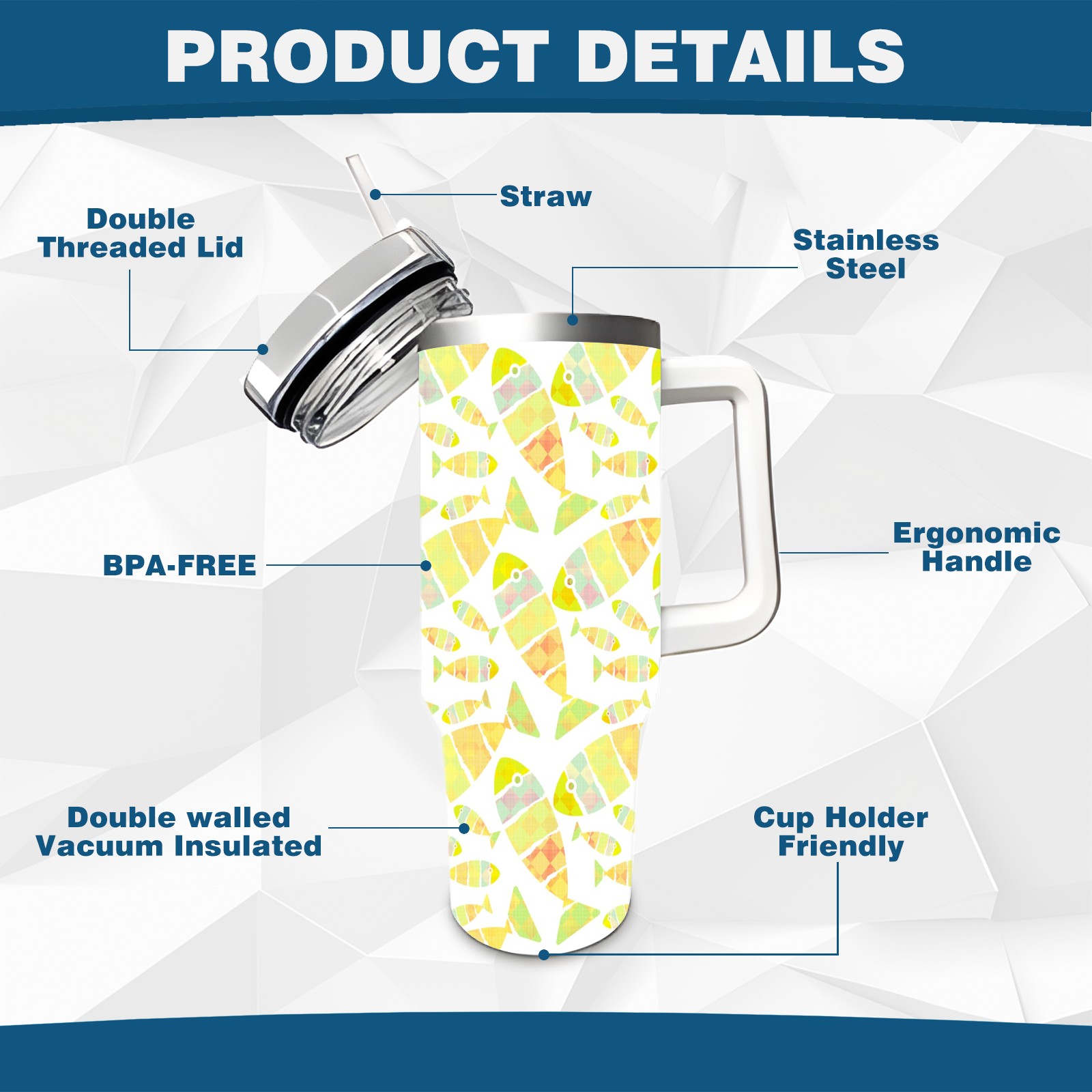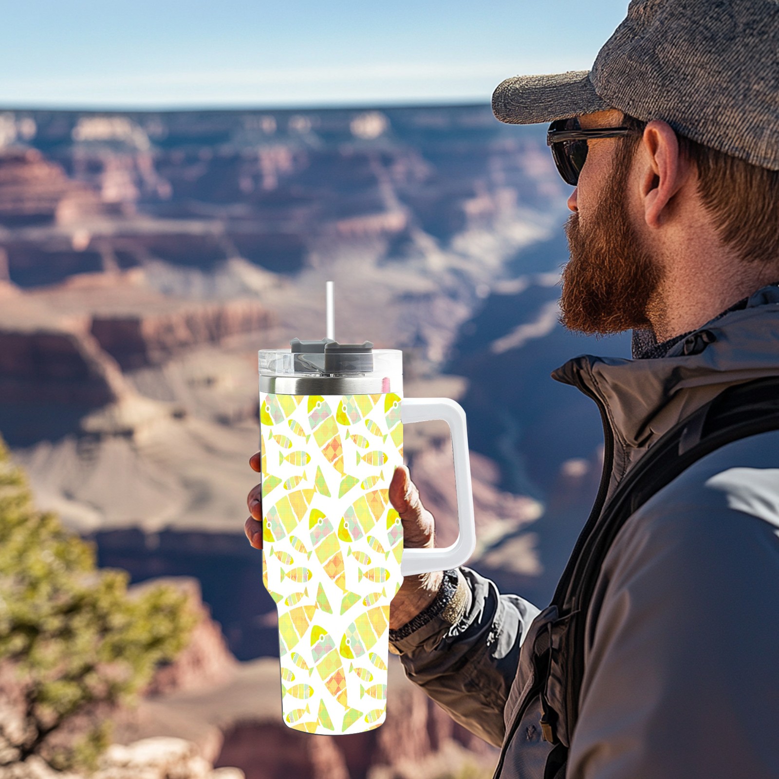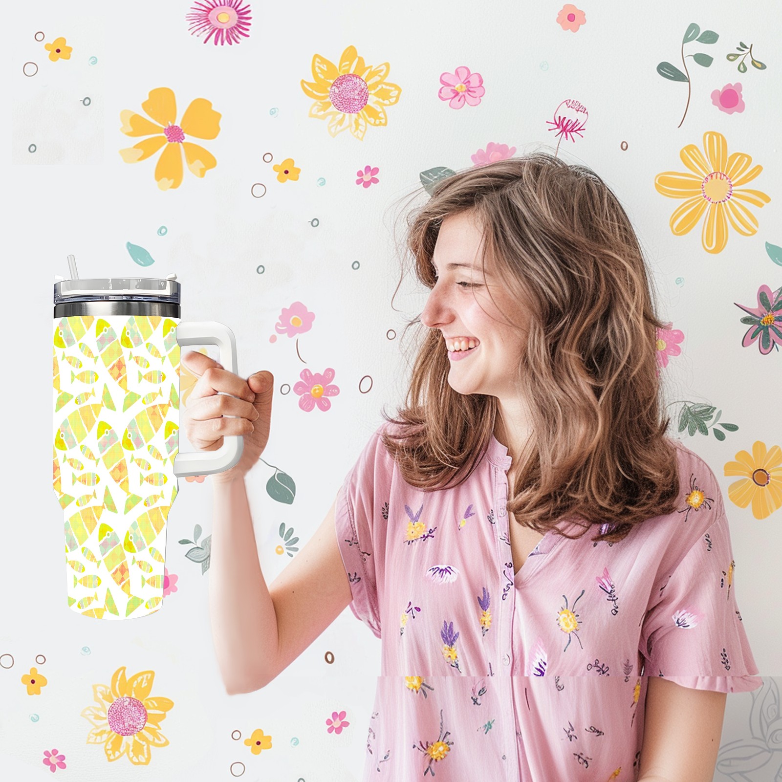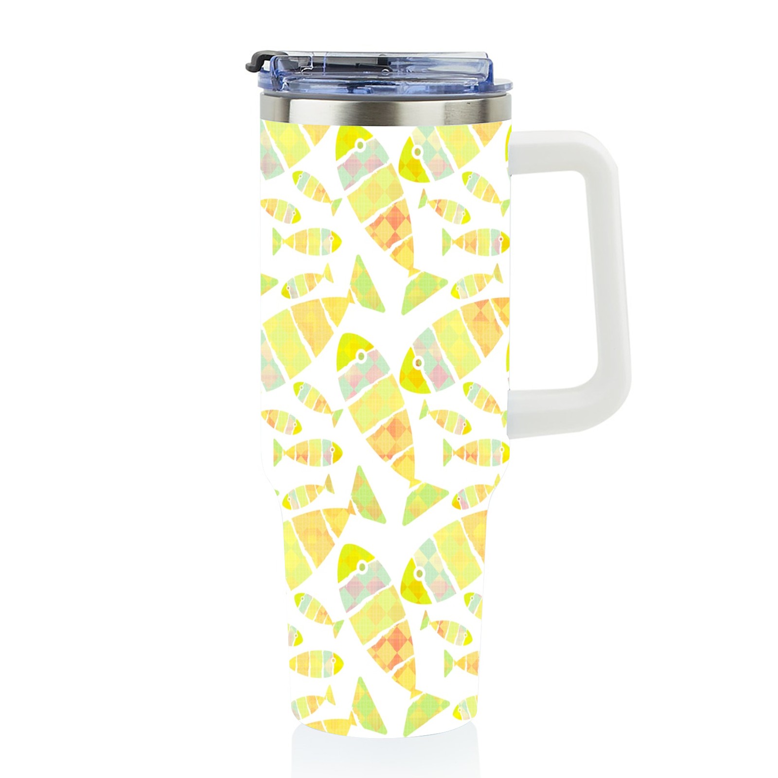 40oz Fish Seamless Colorful thermos with lid and straw, leak-proof stainless steel, with handle, spill-proof bottle, convenient for travel(pink)