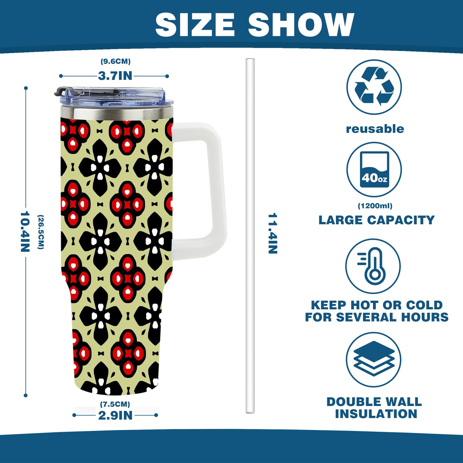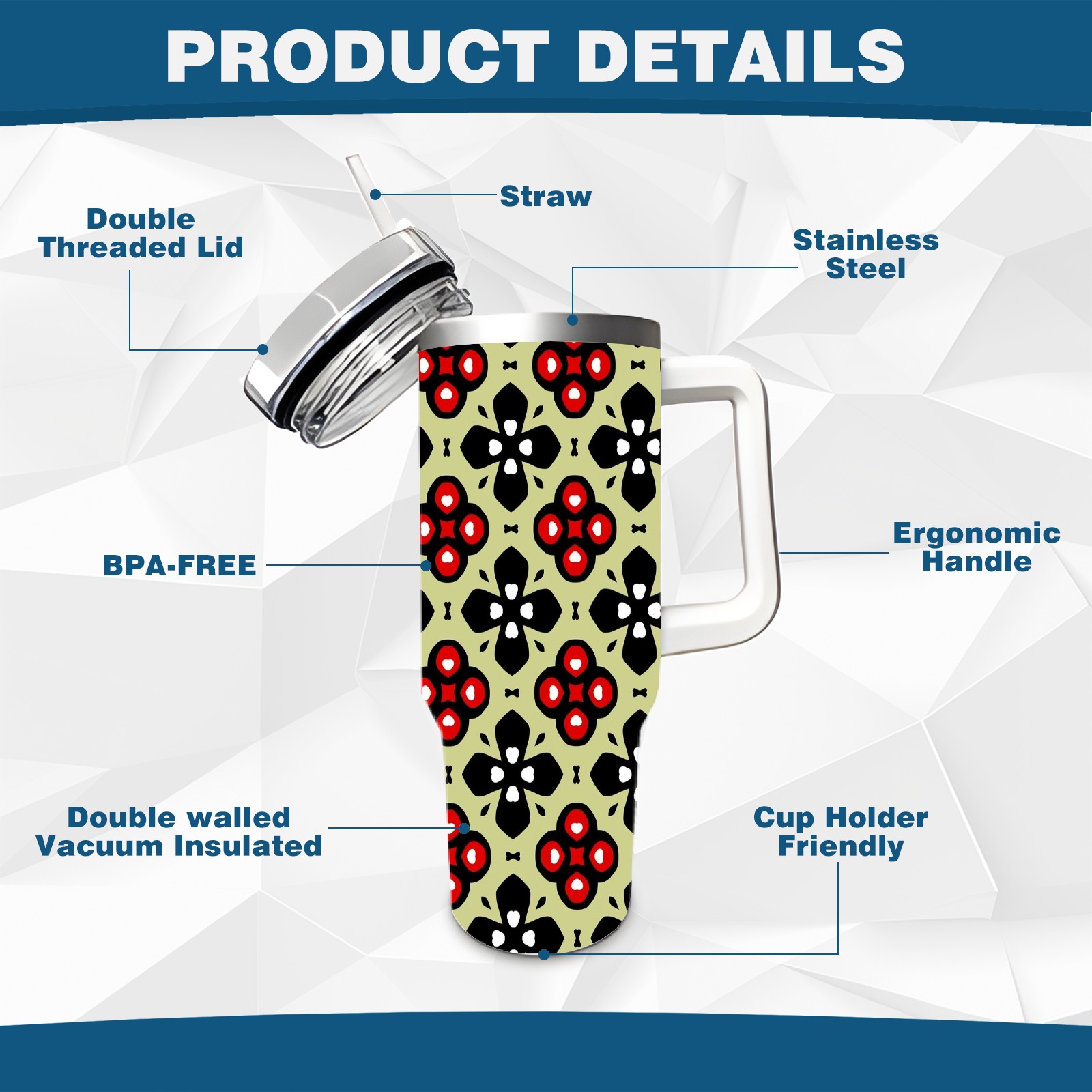 • <p>This multi-functional insulated water bottle features a simple and practical design, suitable for various daily scenarios. The ergonomic handle allows for easy one-handed drinking, and the detachable handle can be adjusted or removed as needed, making it convenient for commuting, exercising, or carrying to meetings. Made of high-quality stainless steel, it is BPA-free and features double-walled vacuum insulation technology that keeps drinks cold for 8 hours and hot for 6 hours, ensuring you can enjoy your beverage at the perfect temperature anytime, anywhere. The 40-ounce Christmas edition comes with a sliding lid, silicone straw, and a non-slip design. Accessories are dishwasher safe, and the narrow bottom and wide mouth design perfectly fits car cup holders. The exclusive flip-top straw lid is environmentally friendly and durable, with a one-touch leak-proof closure and two drinking modes: sip and gulp. A dust cover provides effective protection. This bottle is suitable for travel, office work, sports, camping, and other occasions, making it a thoughtful gift for friends and family.</p>