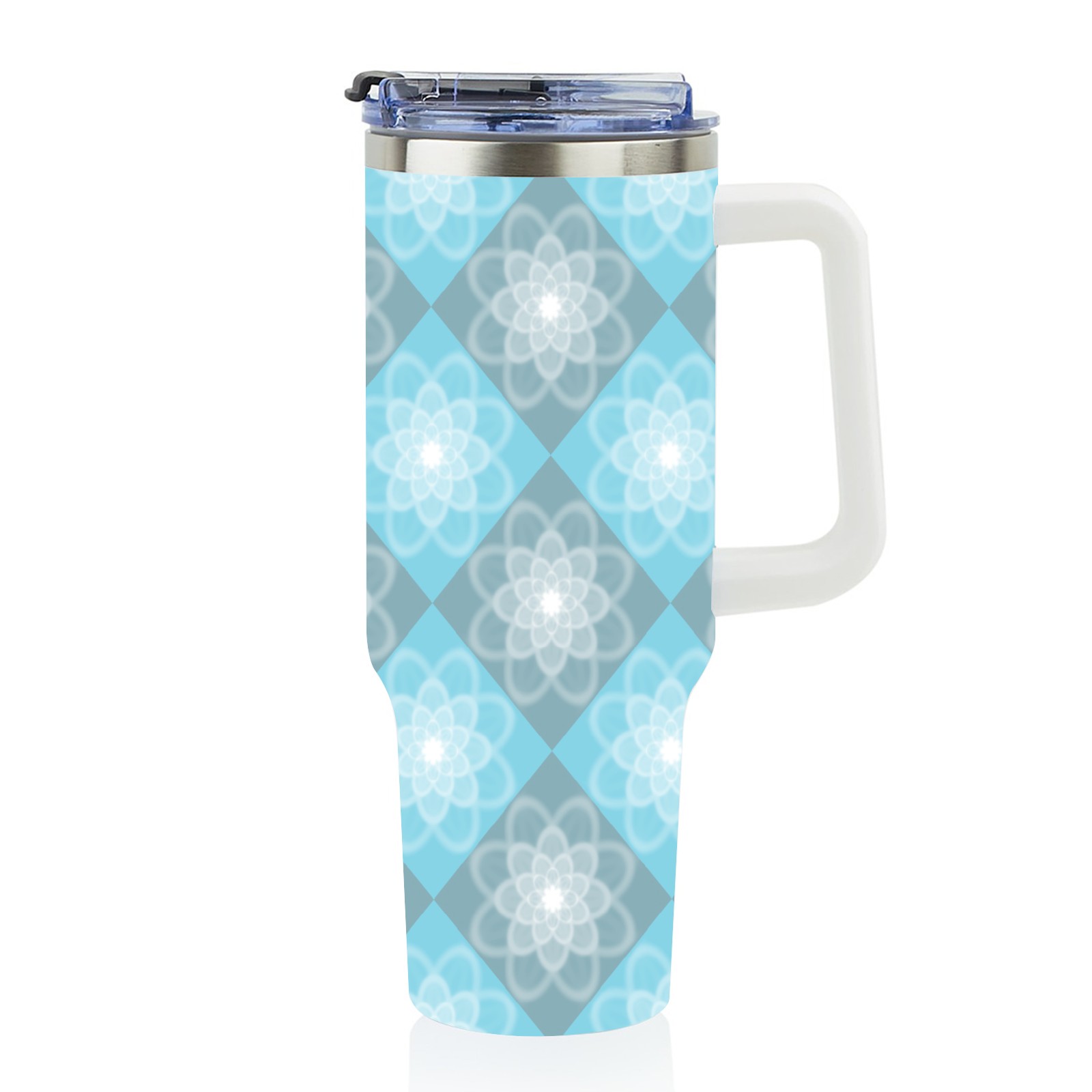 40oz Square Flower Seamless thermos with lid and straw, leak-proof stainless steel, with handle, spill-proof bottle, convenient for travel(pink)