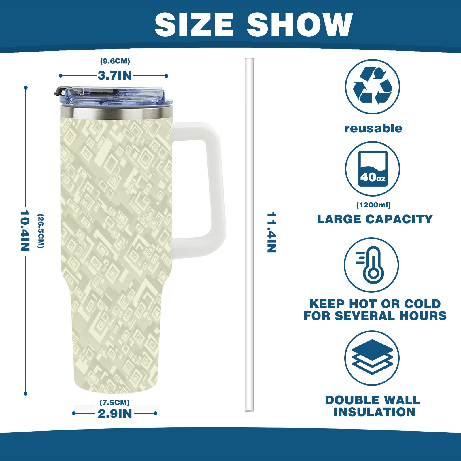 40oz Rectangle Seamless Beige thermos with lid and straw, leak-proof stainless steel, with handle, spill-proof bottle, convenient for travel(pink)