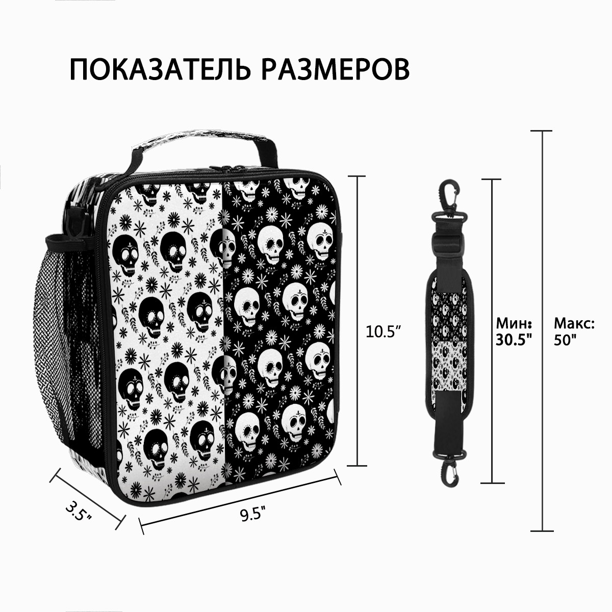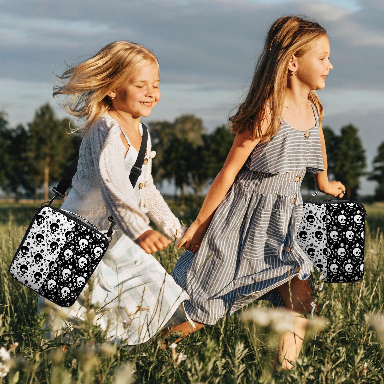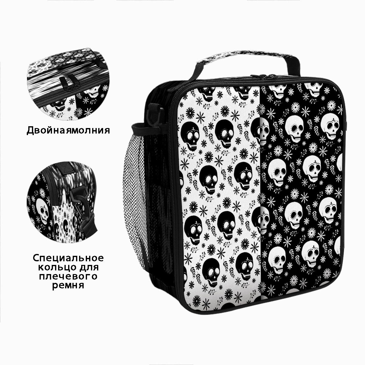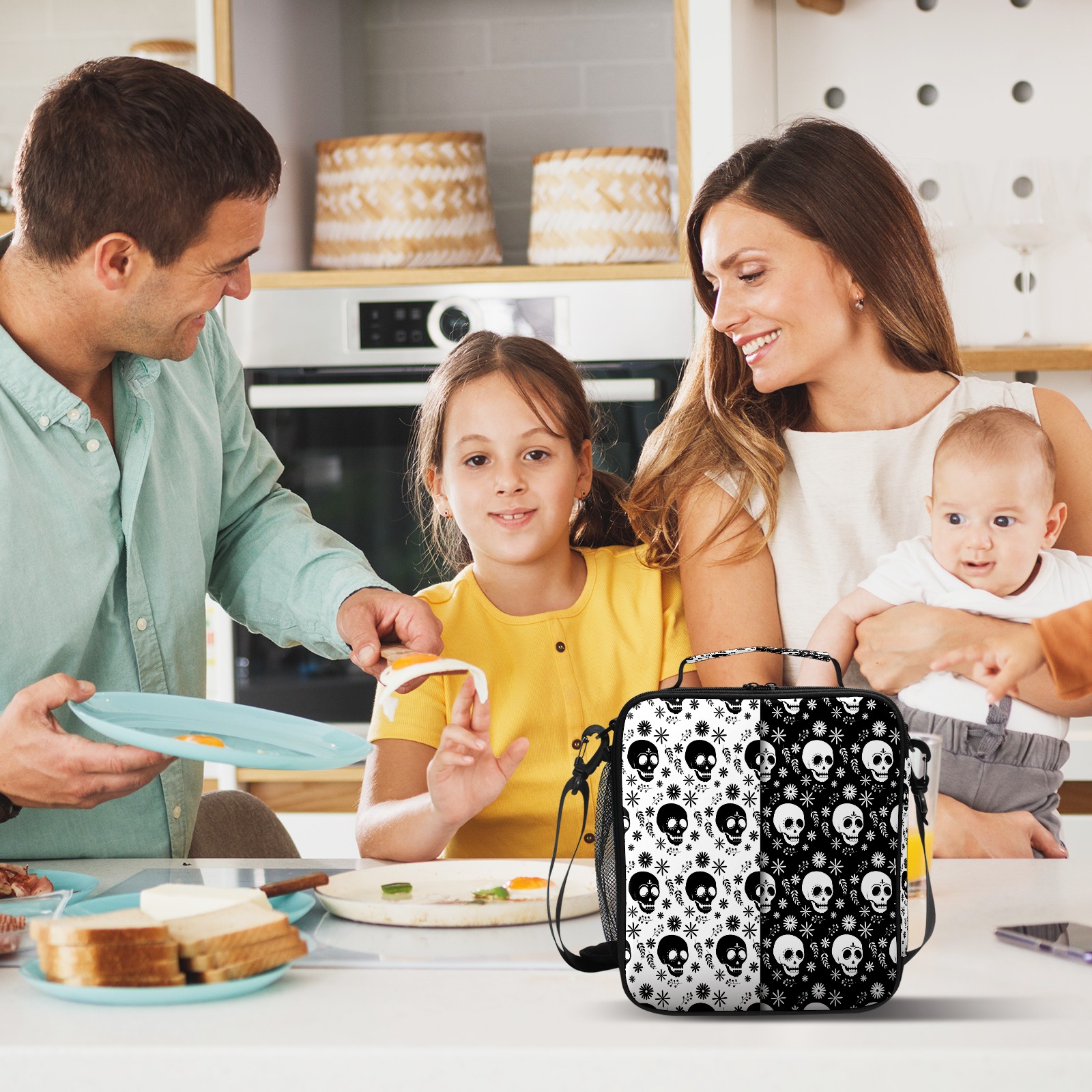方形餐包 Skull Black White