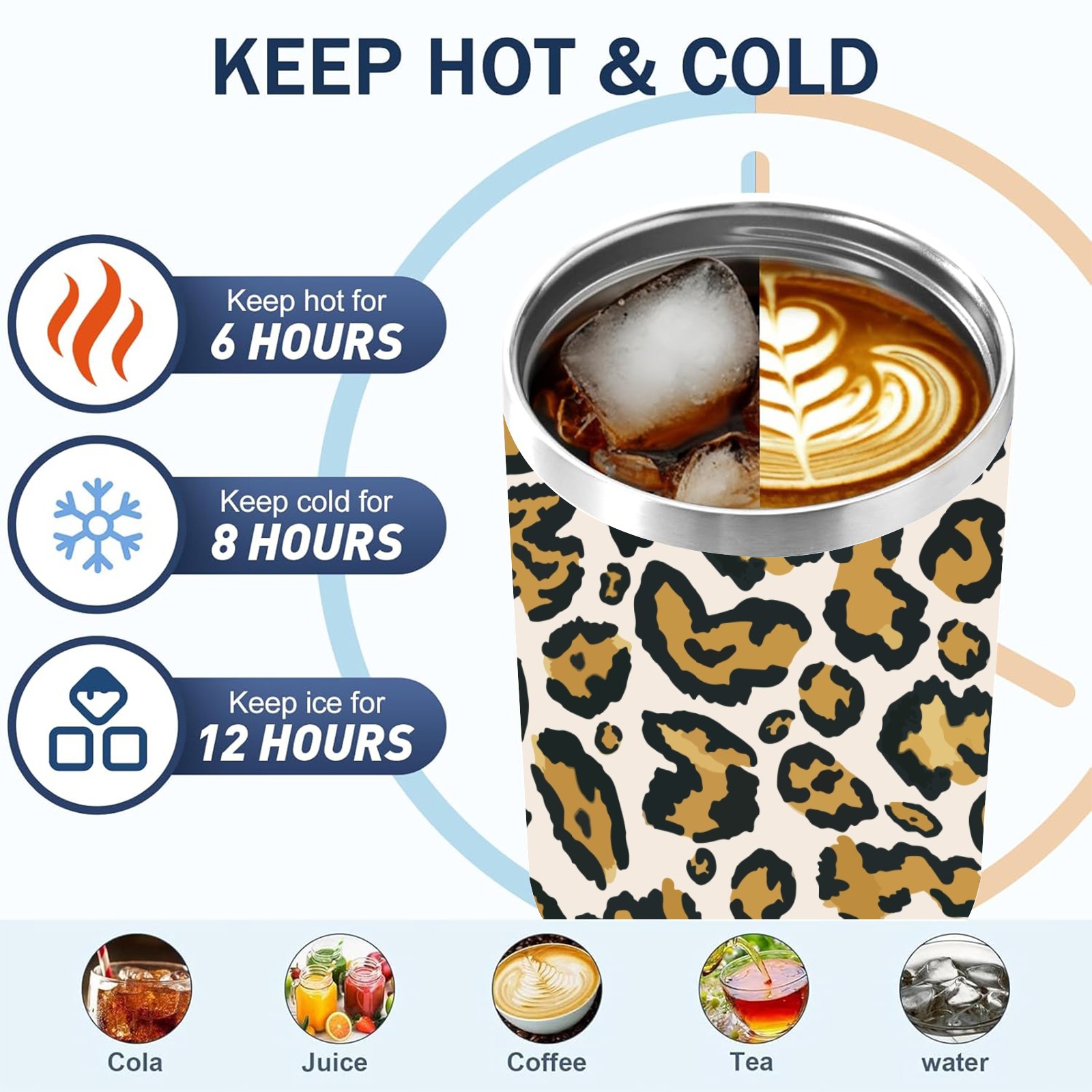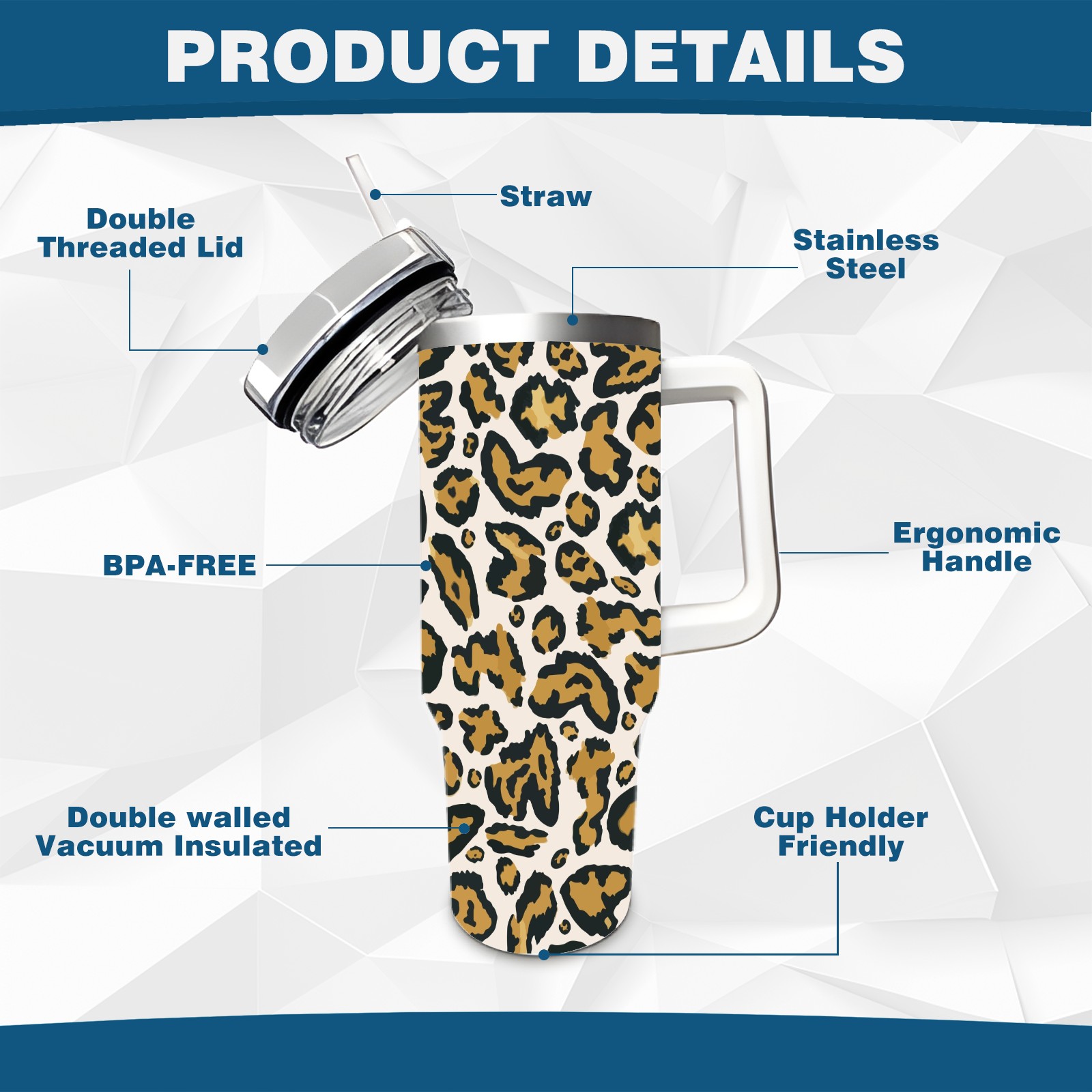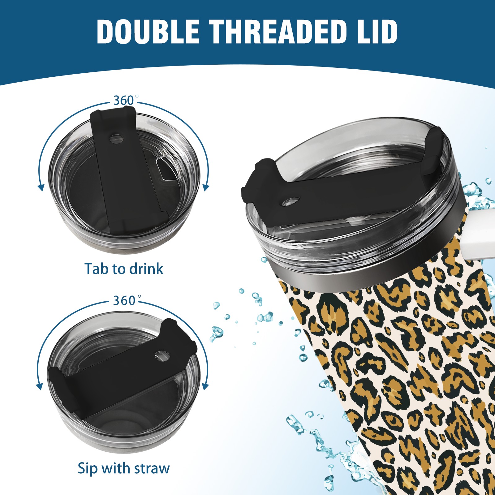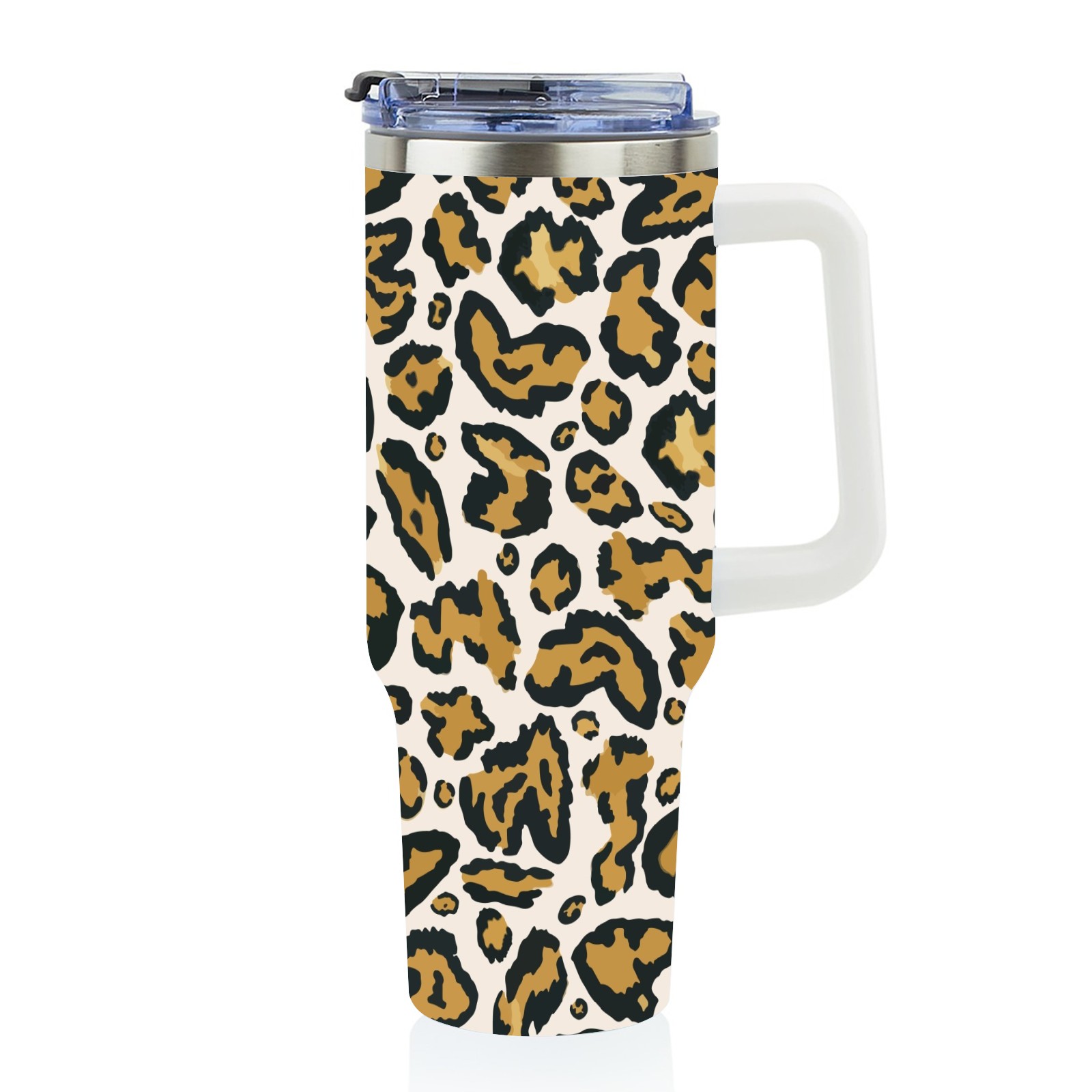 40oz Leopard Print Seamless thermos with lid and straw, leak-proof stainless steel, with handle, spill-proof bottle, convenient for travel(pink)