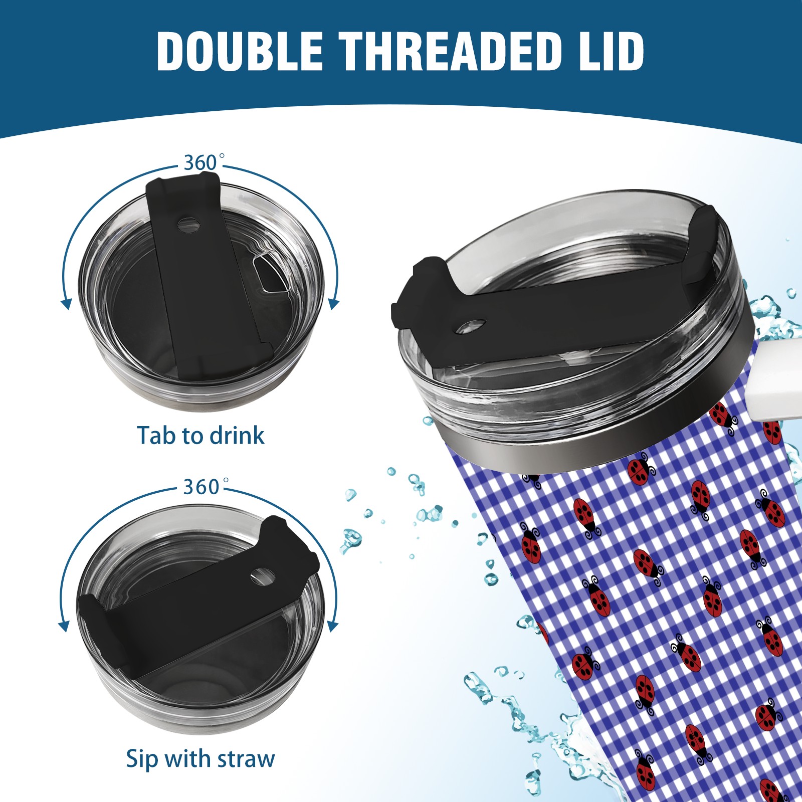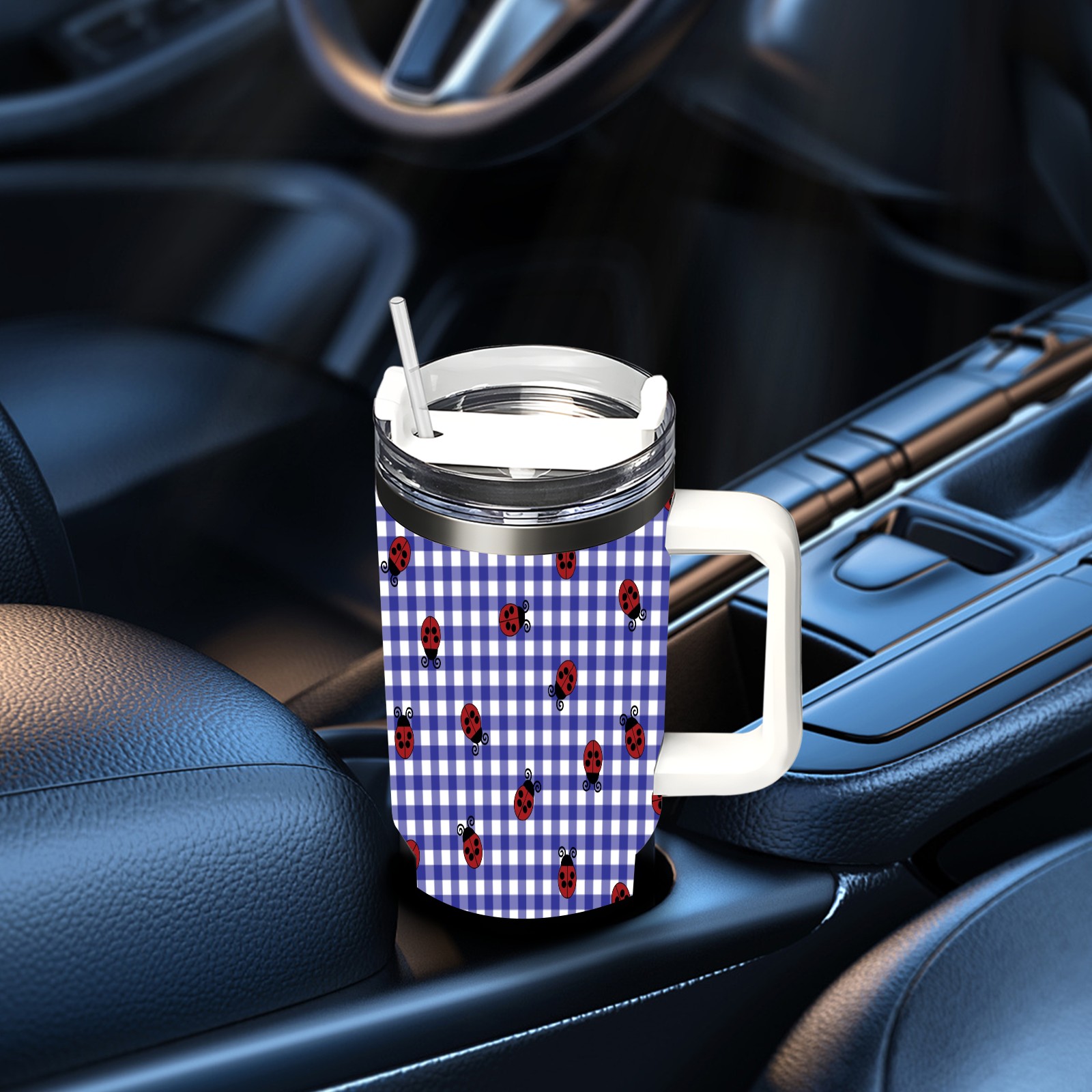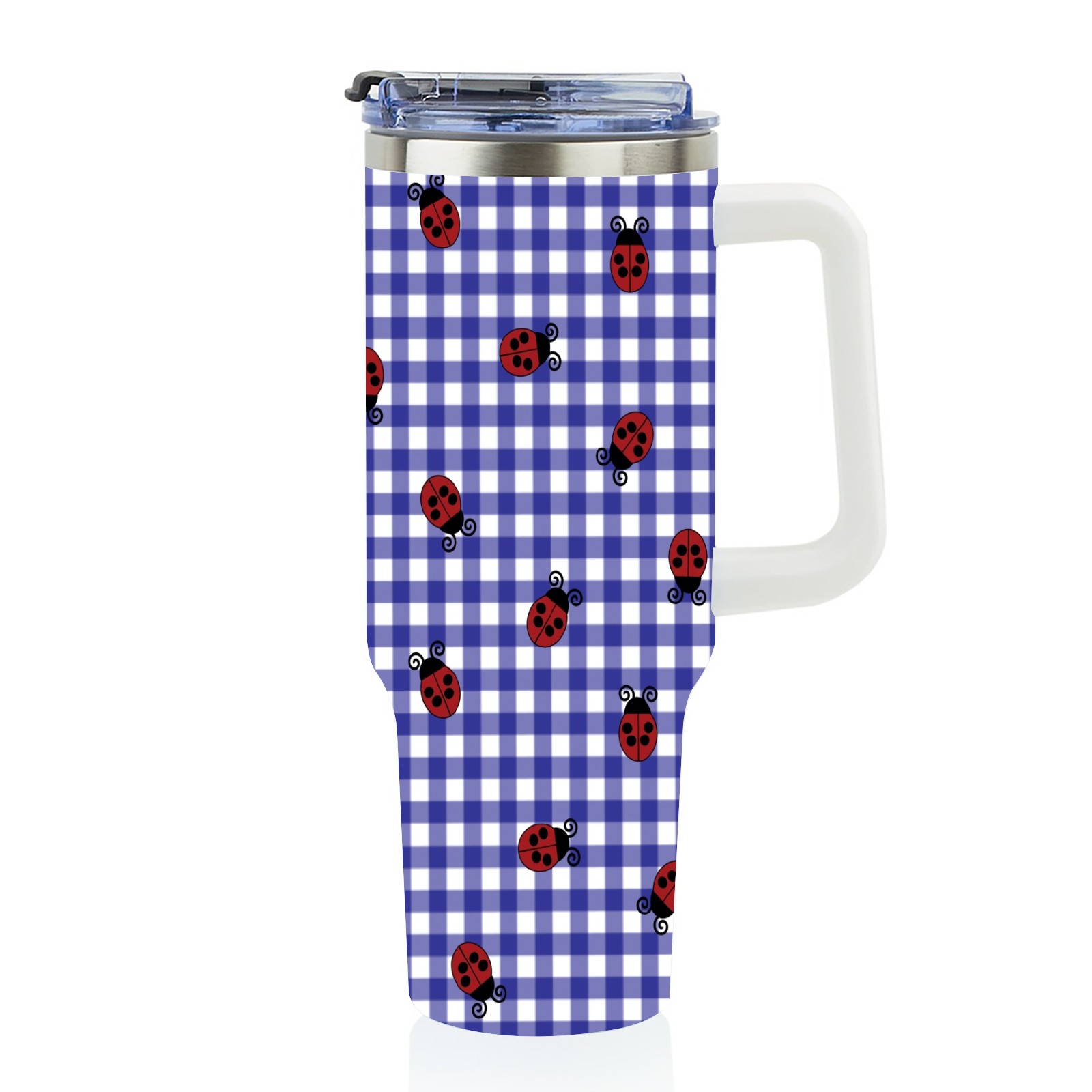 40oz Lattice Ladybug Seamless thermos with lid and straw, leak-proof stainless steel, with handle, spill-proof bottle, convenient for travel(pink)
