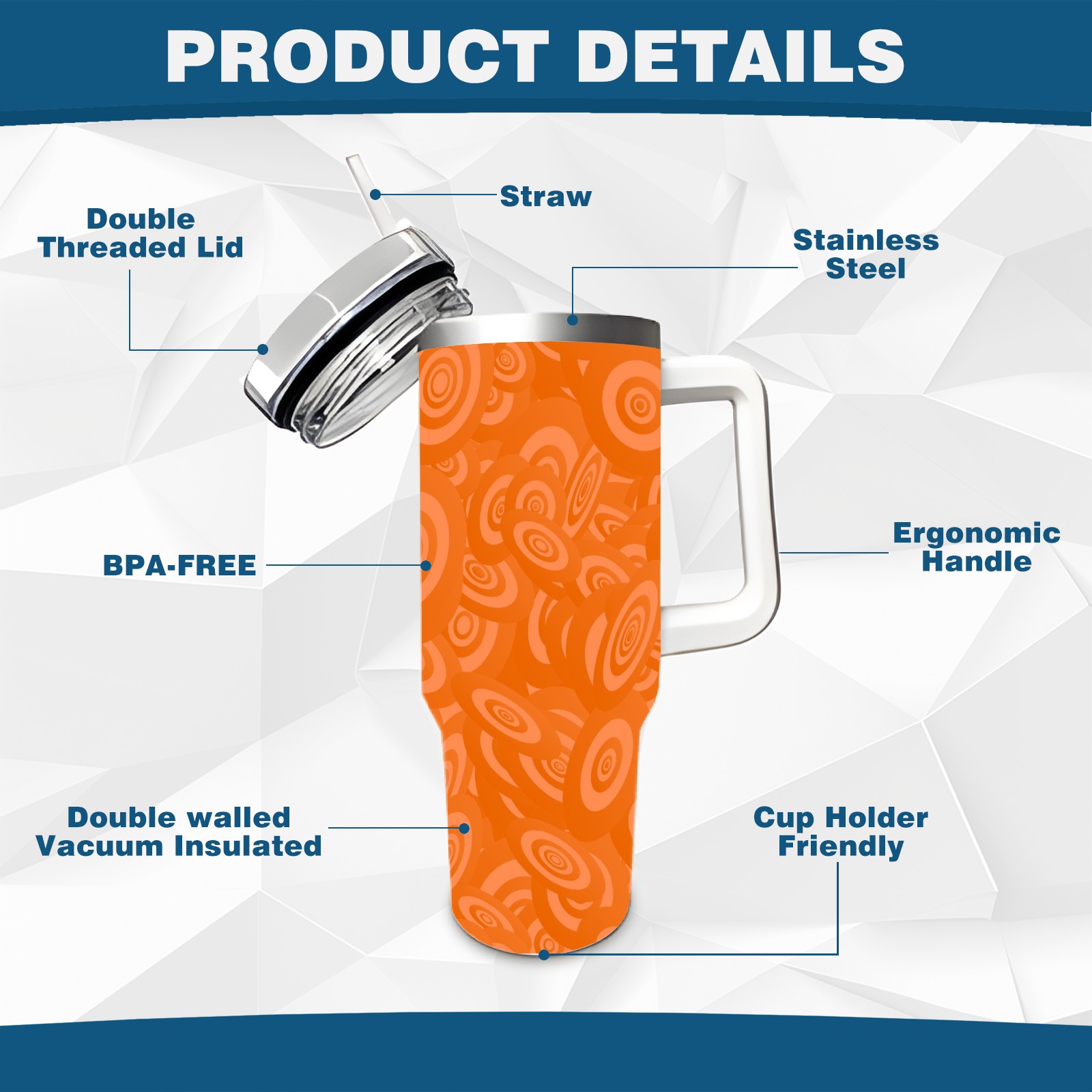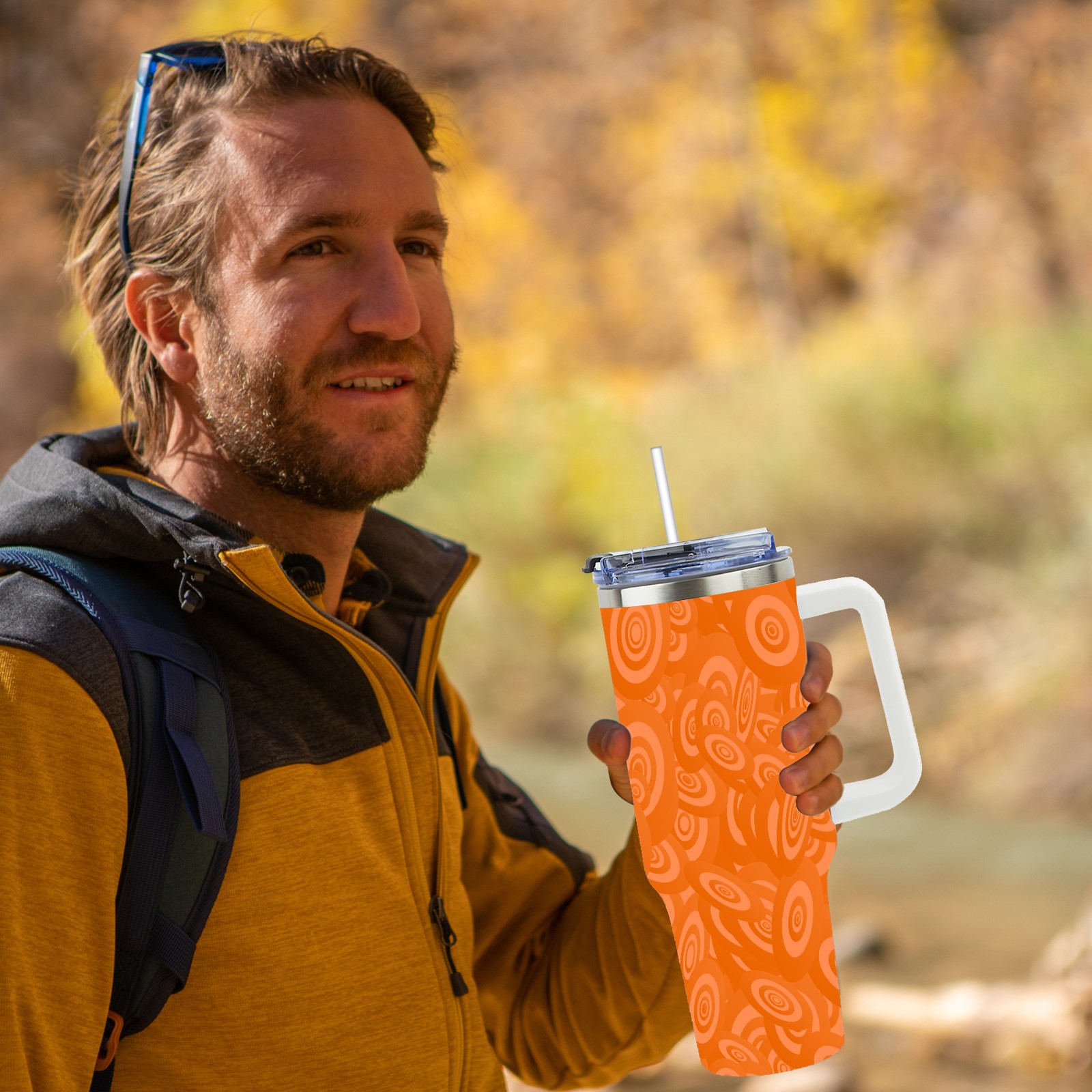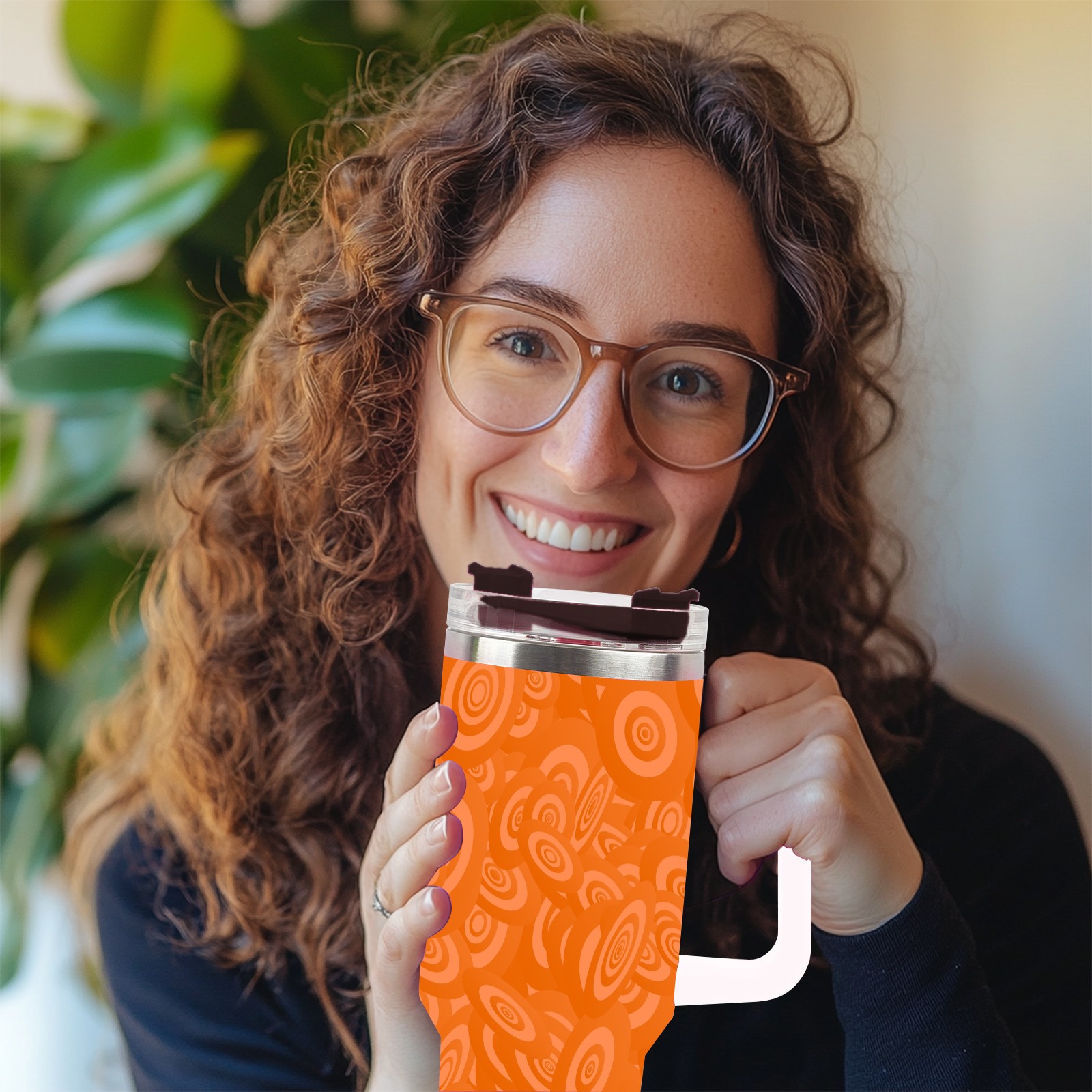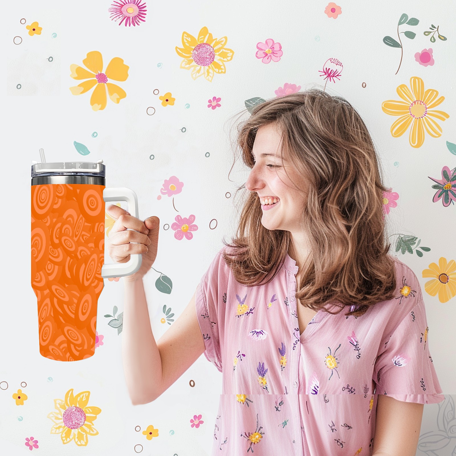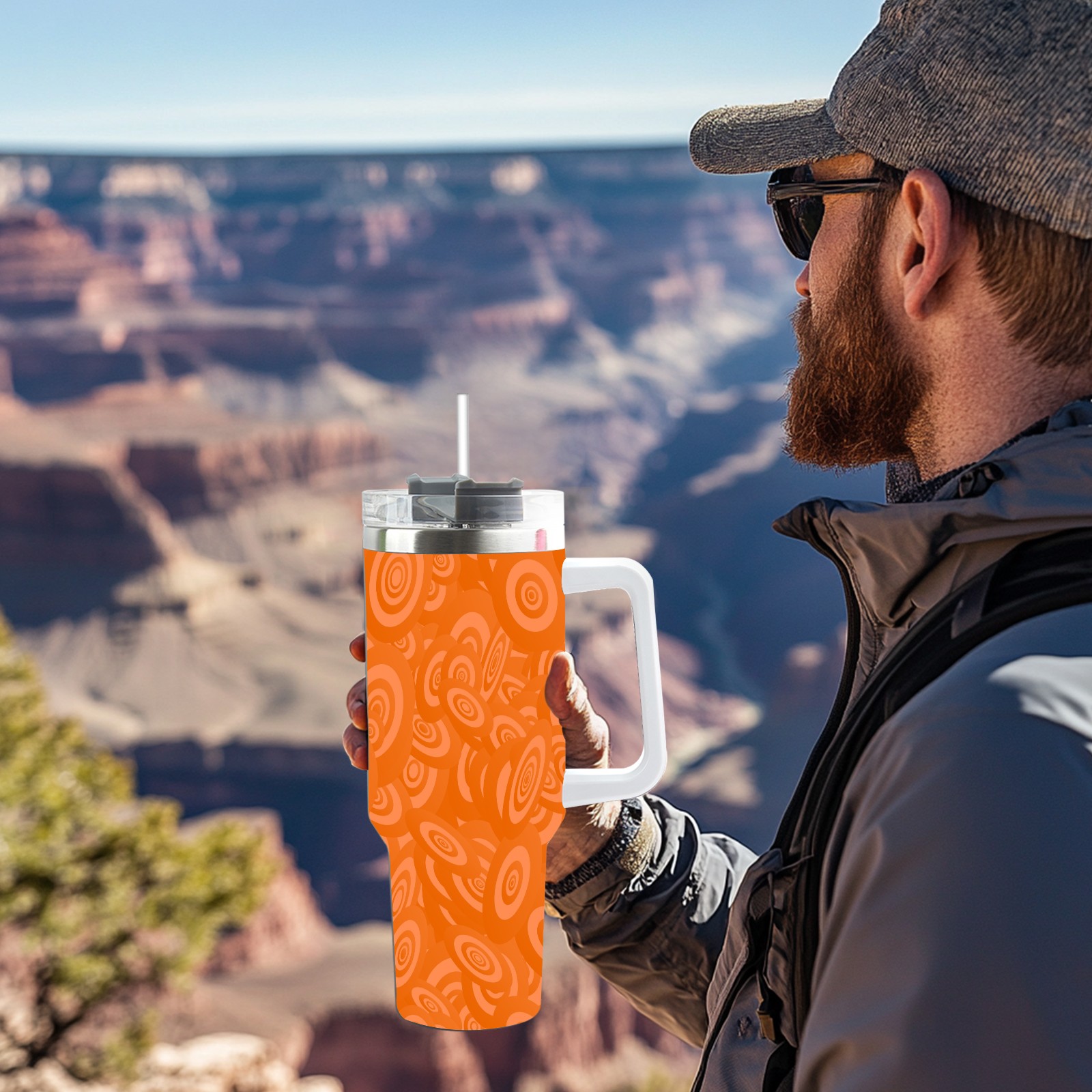 40oz Ellipse Seamless Orange thermos with lid and straw, leak-proof stainless steel, with handle, spill-proof bottle, convenient for travel(pink)