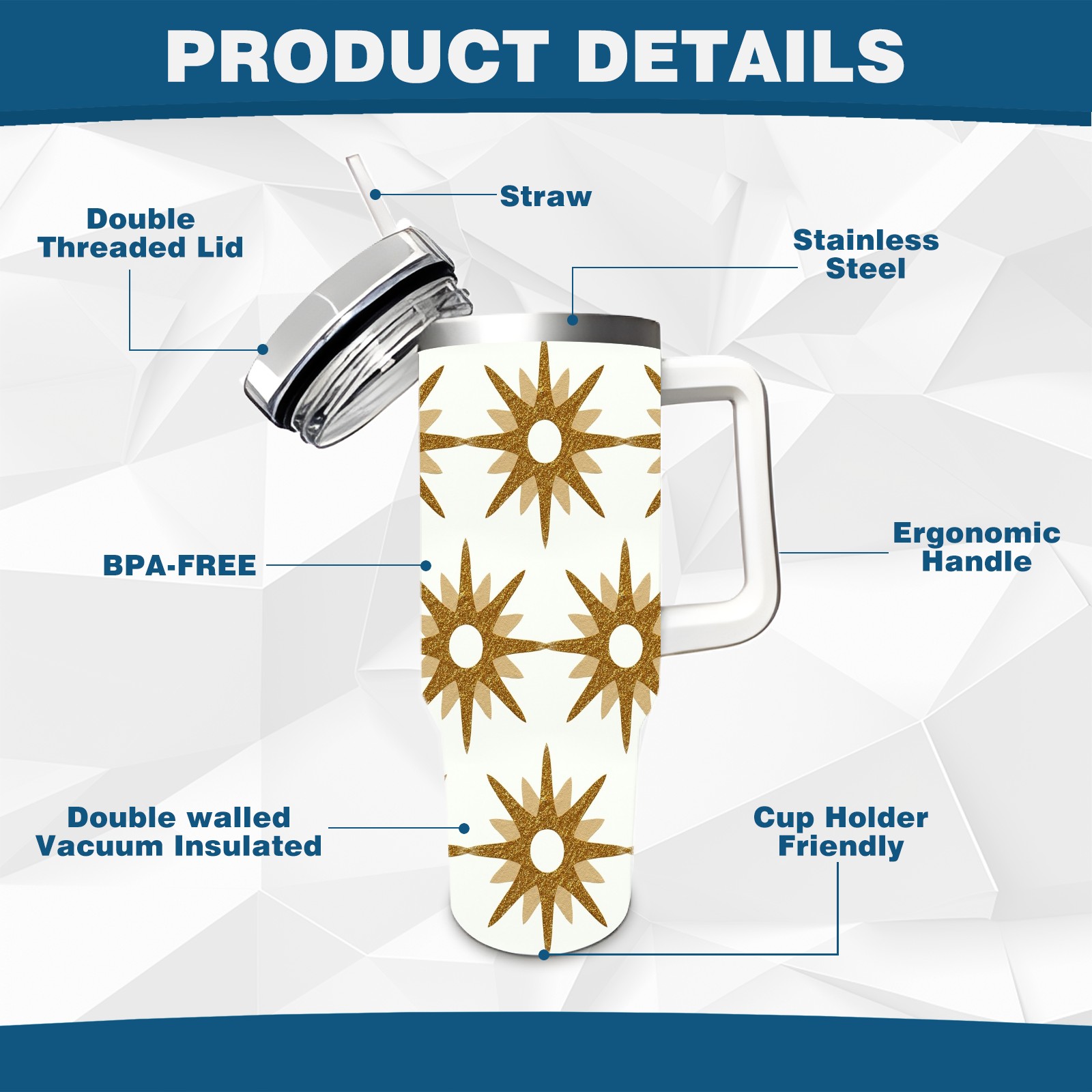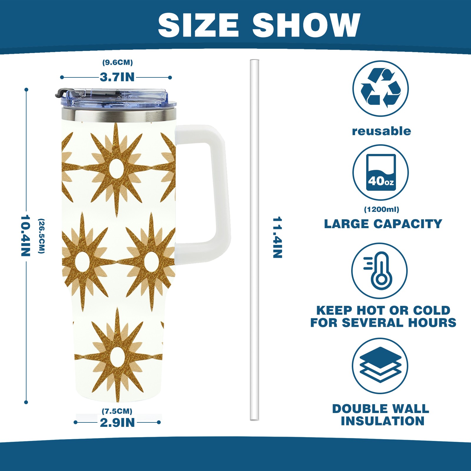 40oz Sun Seamless thermos with lid and straw, leak-proof stainless steel, with handle, spill-proof bottle, convenient for travel(pink)
