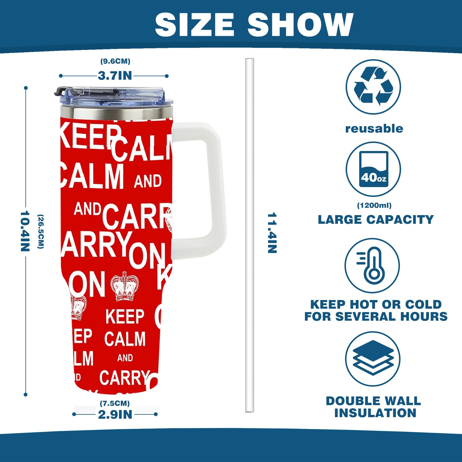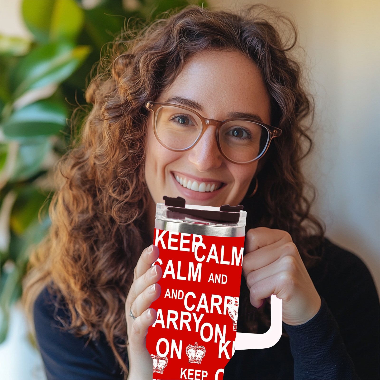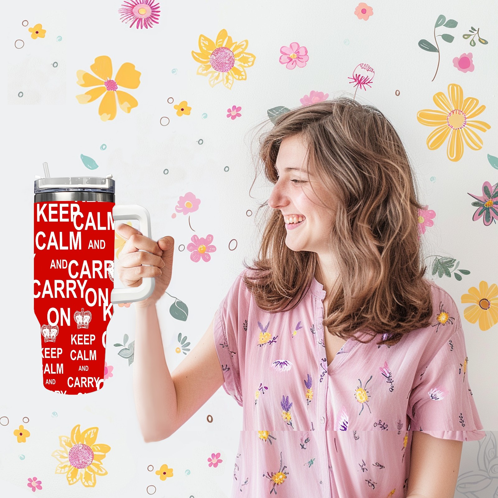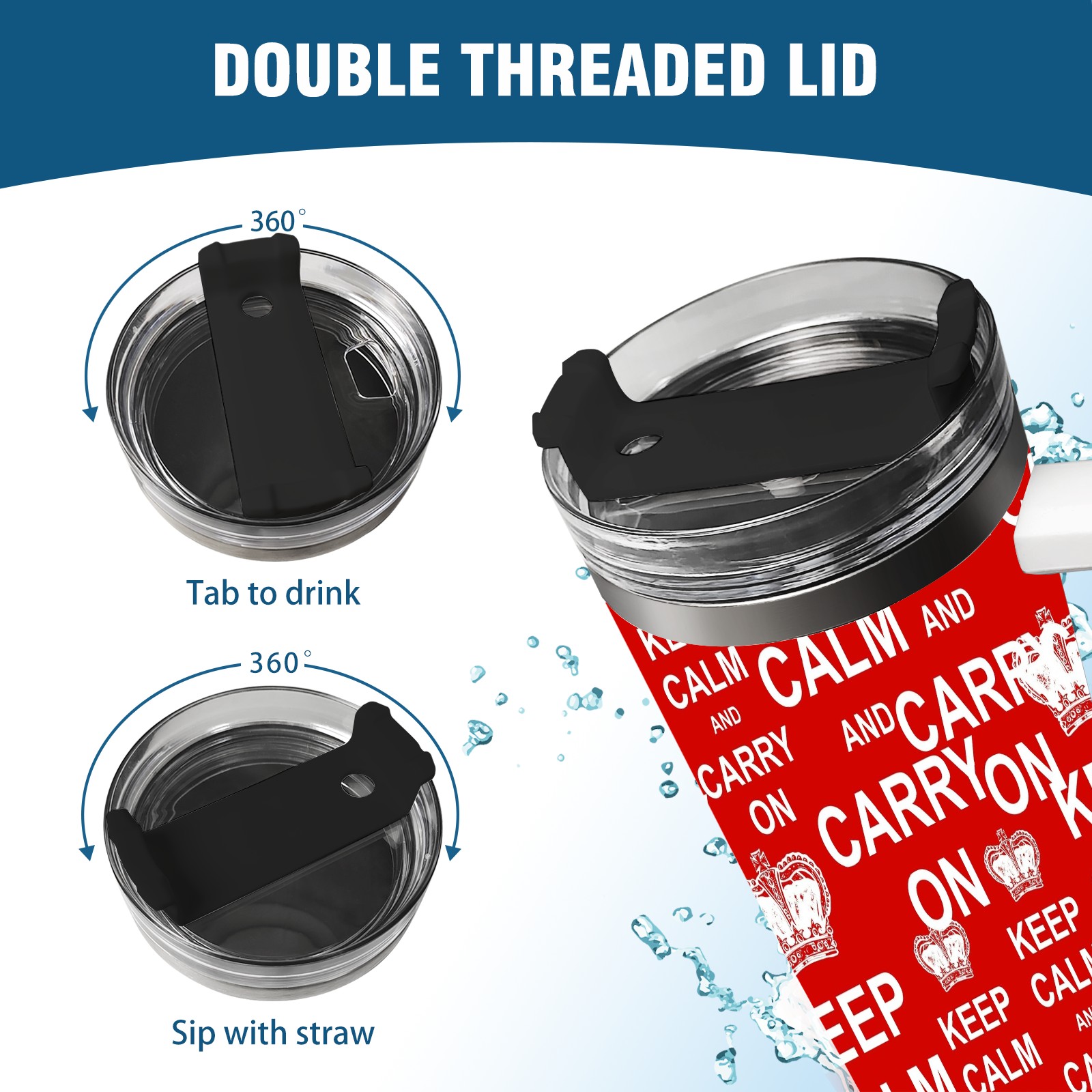 40oz Crown Words Seamless thermos with lid and straw, leak-proof stainless steel, with handle, spill-proof bottle, convenient for travel(pink)