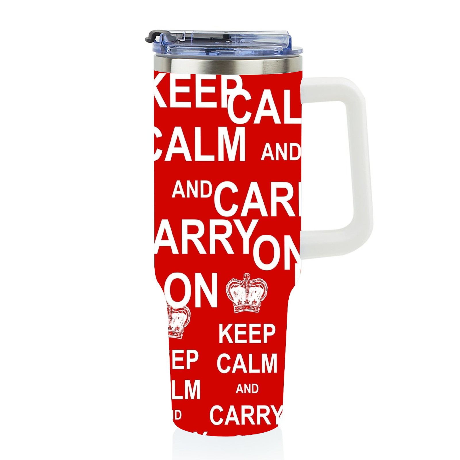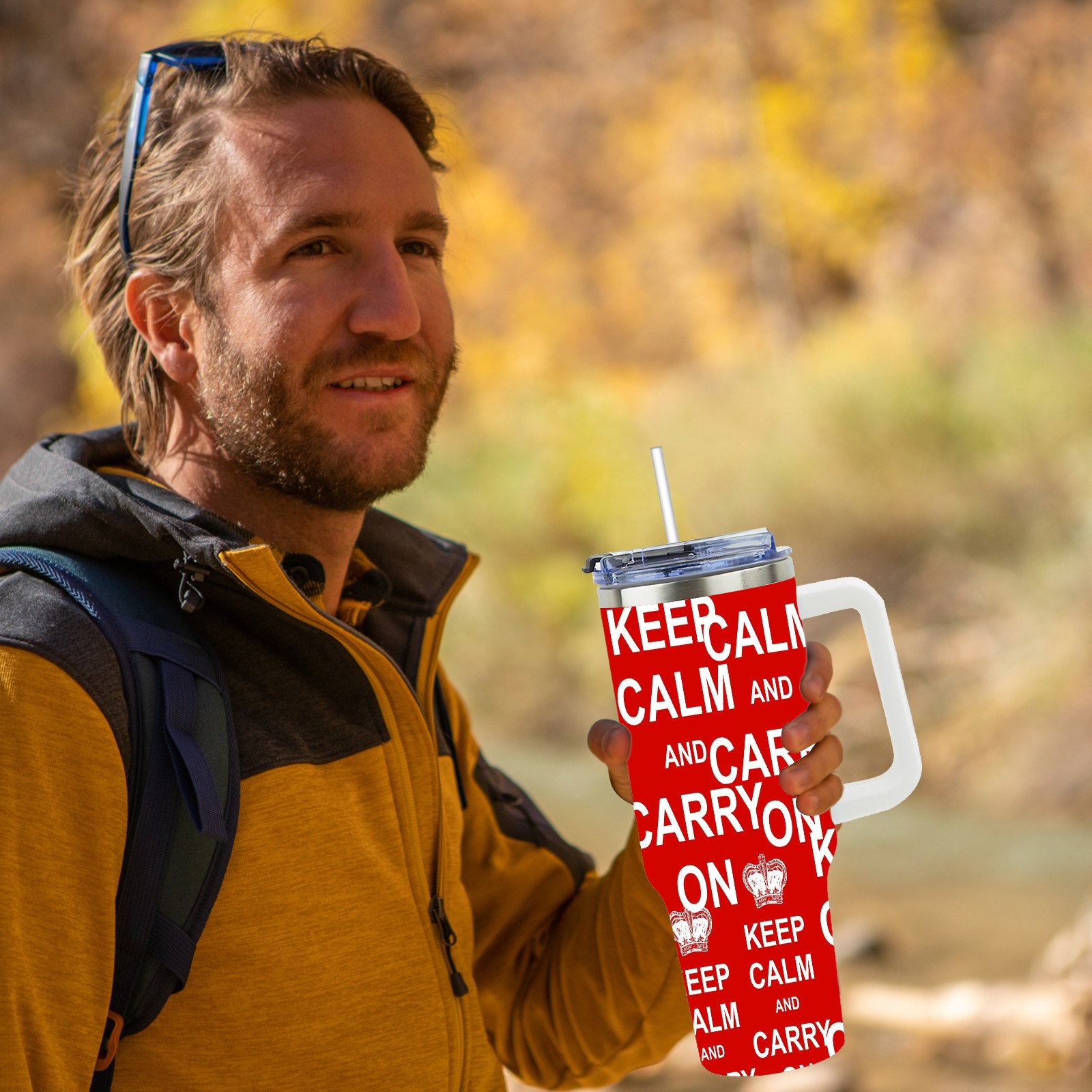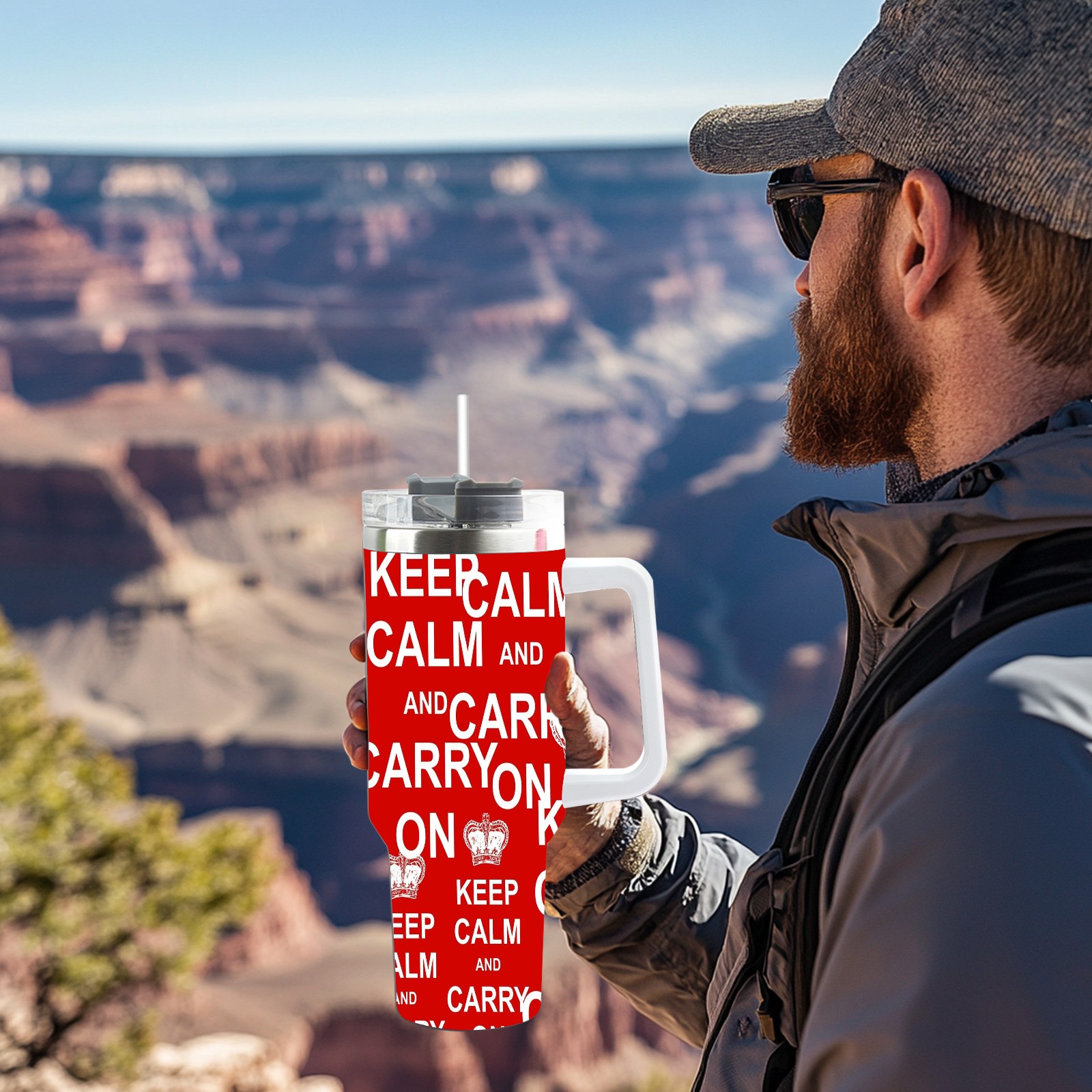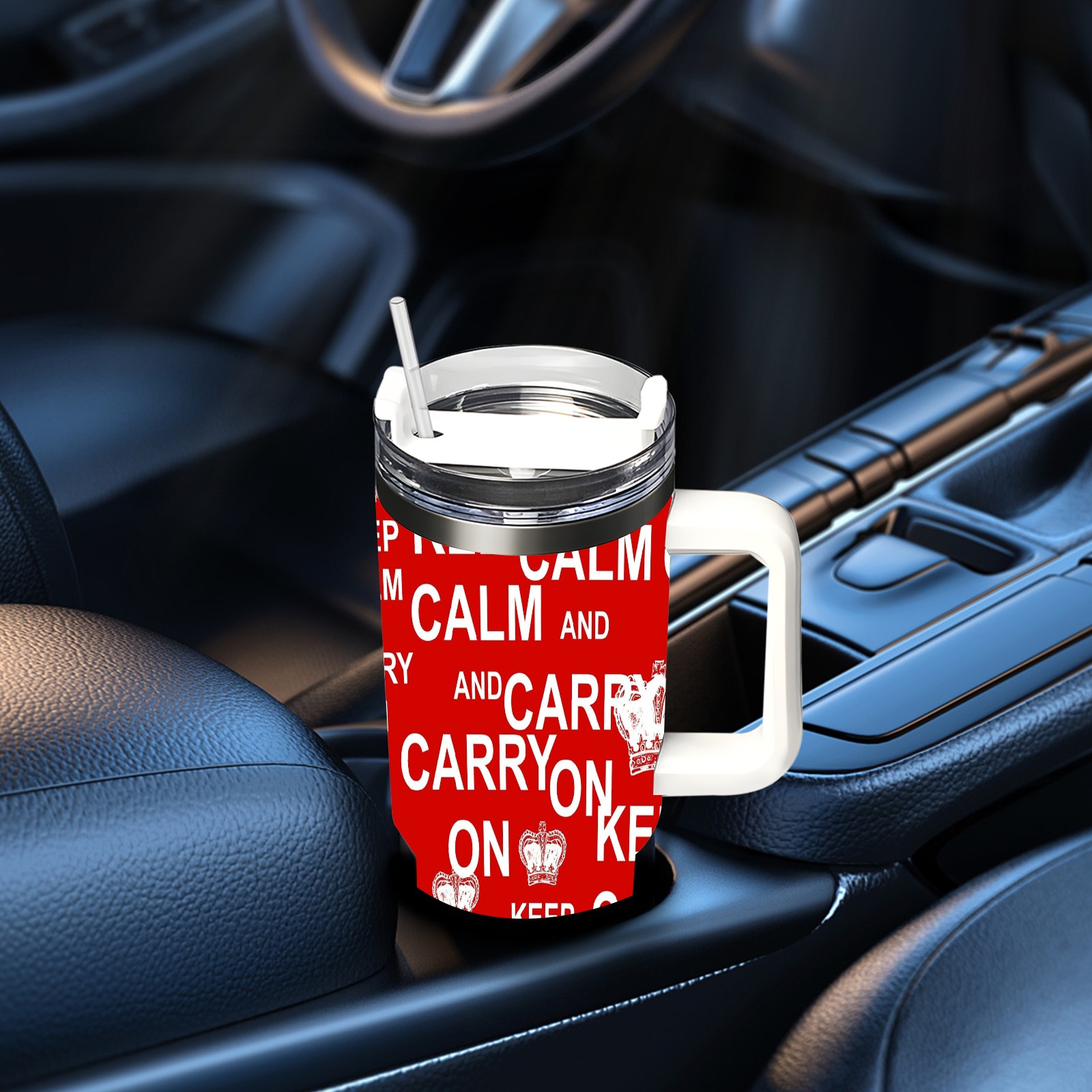 40oz Crown Words Seamless thermos with lid and straw, leak-proof stainless steel, with handle, spill-proof bottle, convenient for travel(pink)