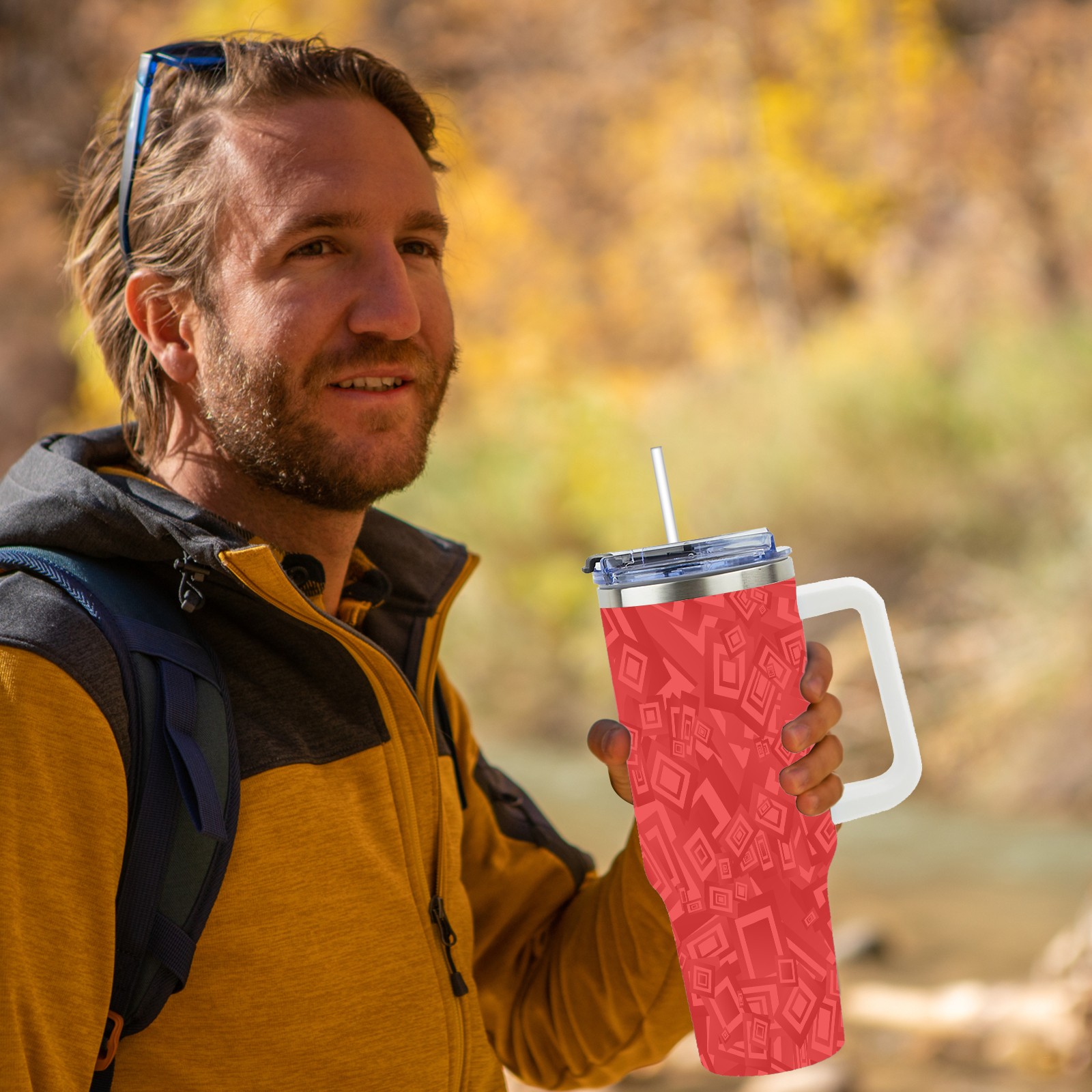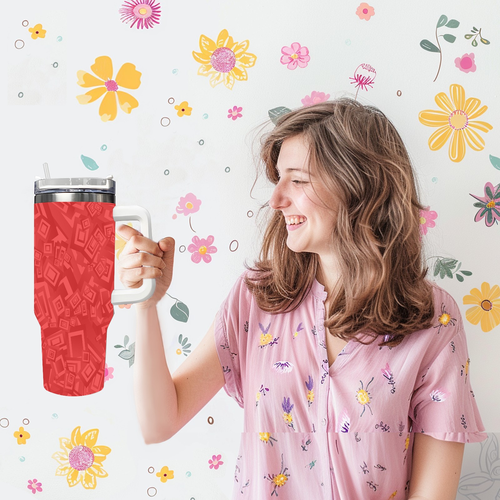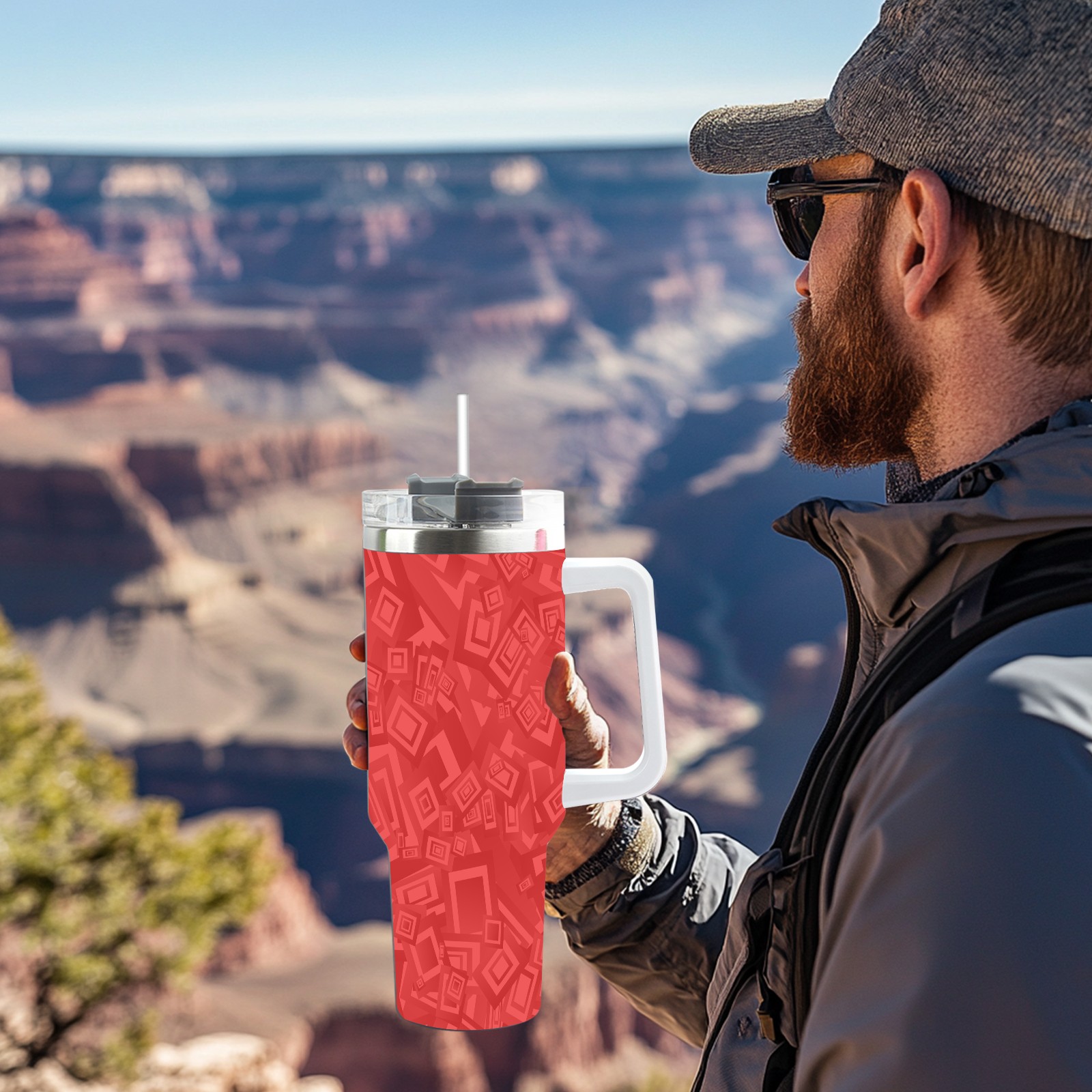 40oz Rectangle Seamless Red thermos with lid and straw, leak-proof stainless steel, with handle, spill-proof bottle, convenient for travel(pink)