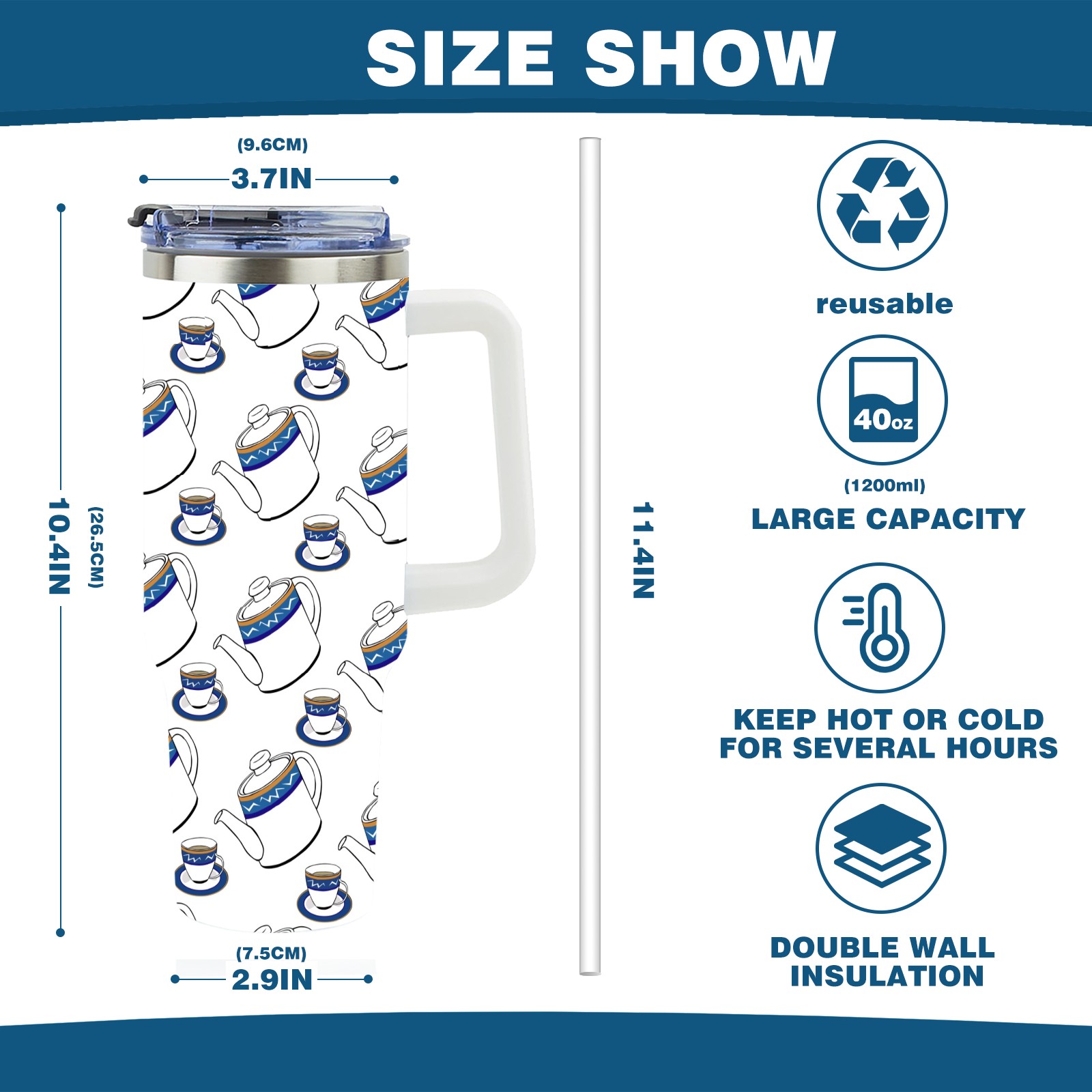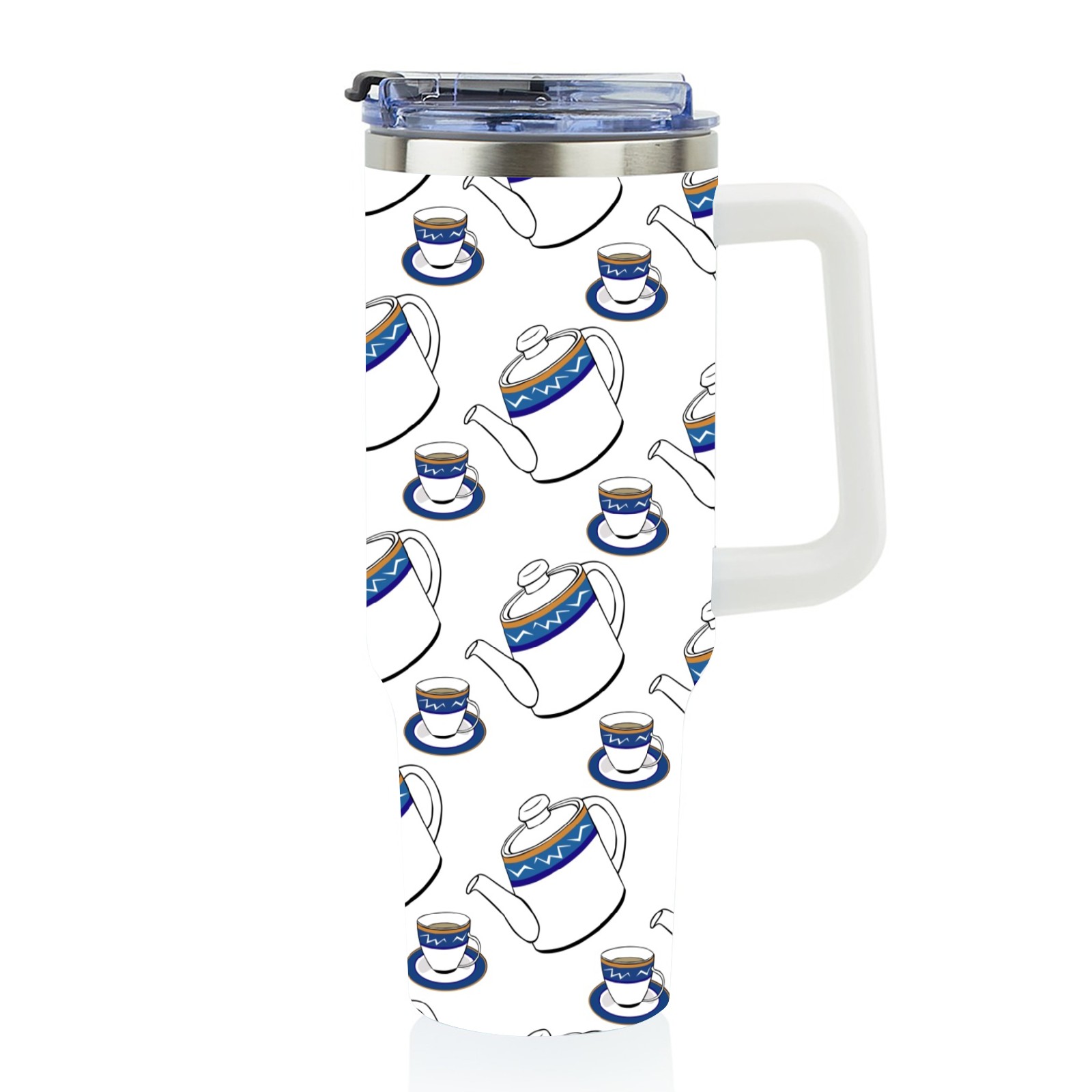 40oz Teacup Teapot Seamless thermos with lid and straw, leak-proof stainless steel, with handle, spill-proof bottle, convenient for travel(pink)