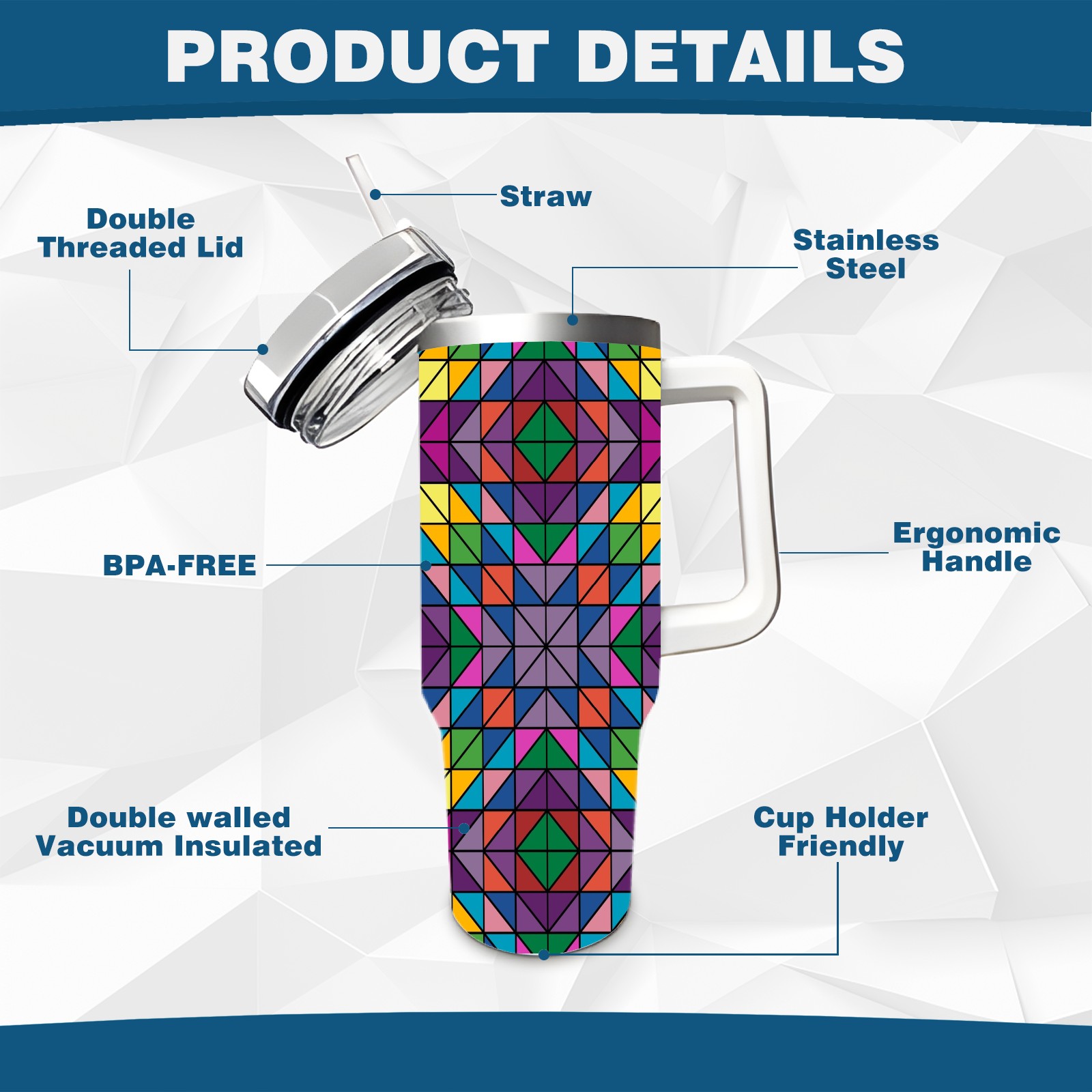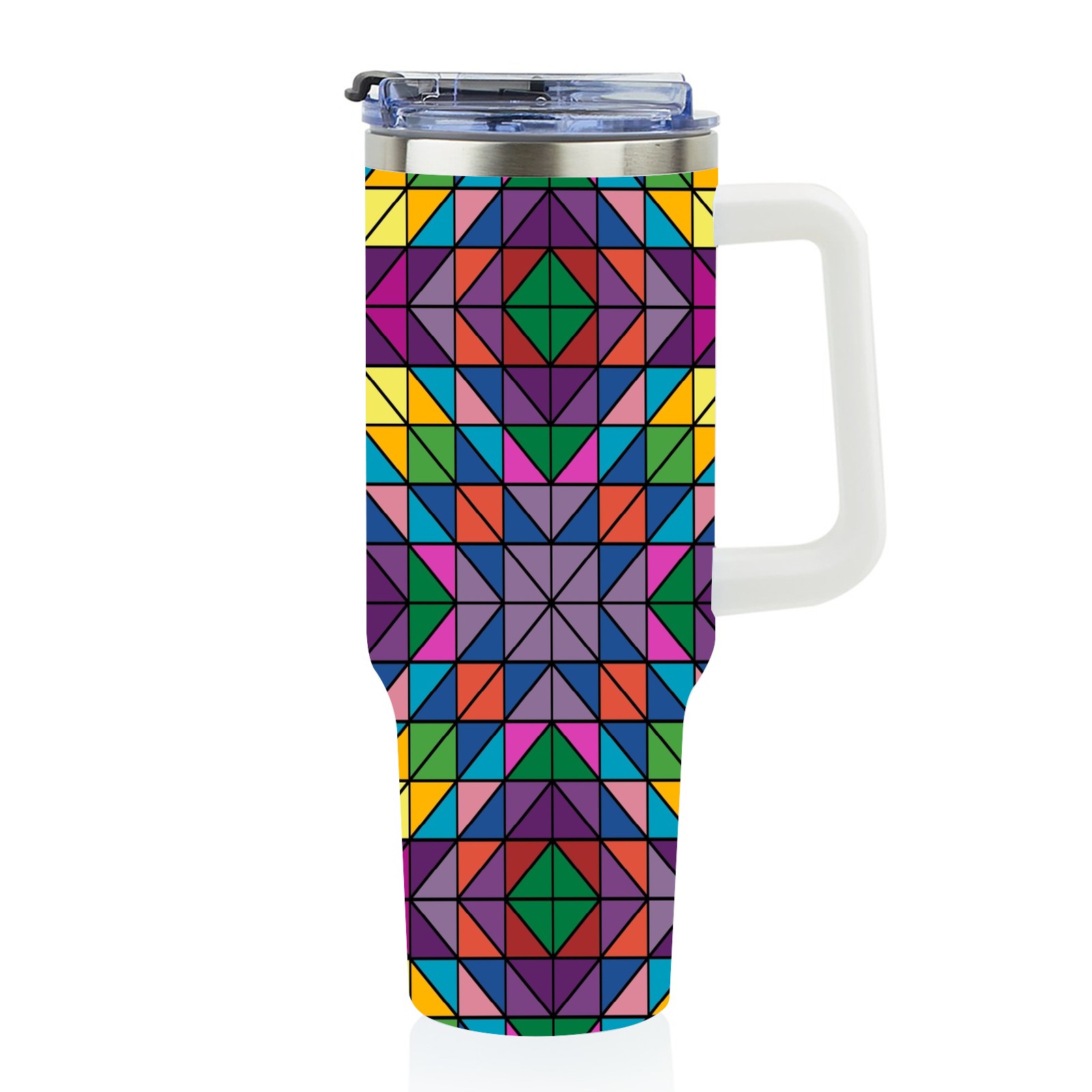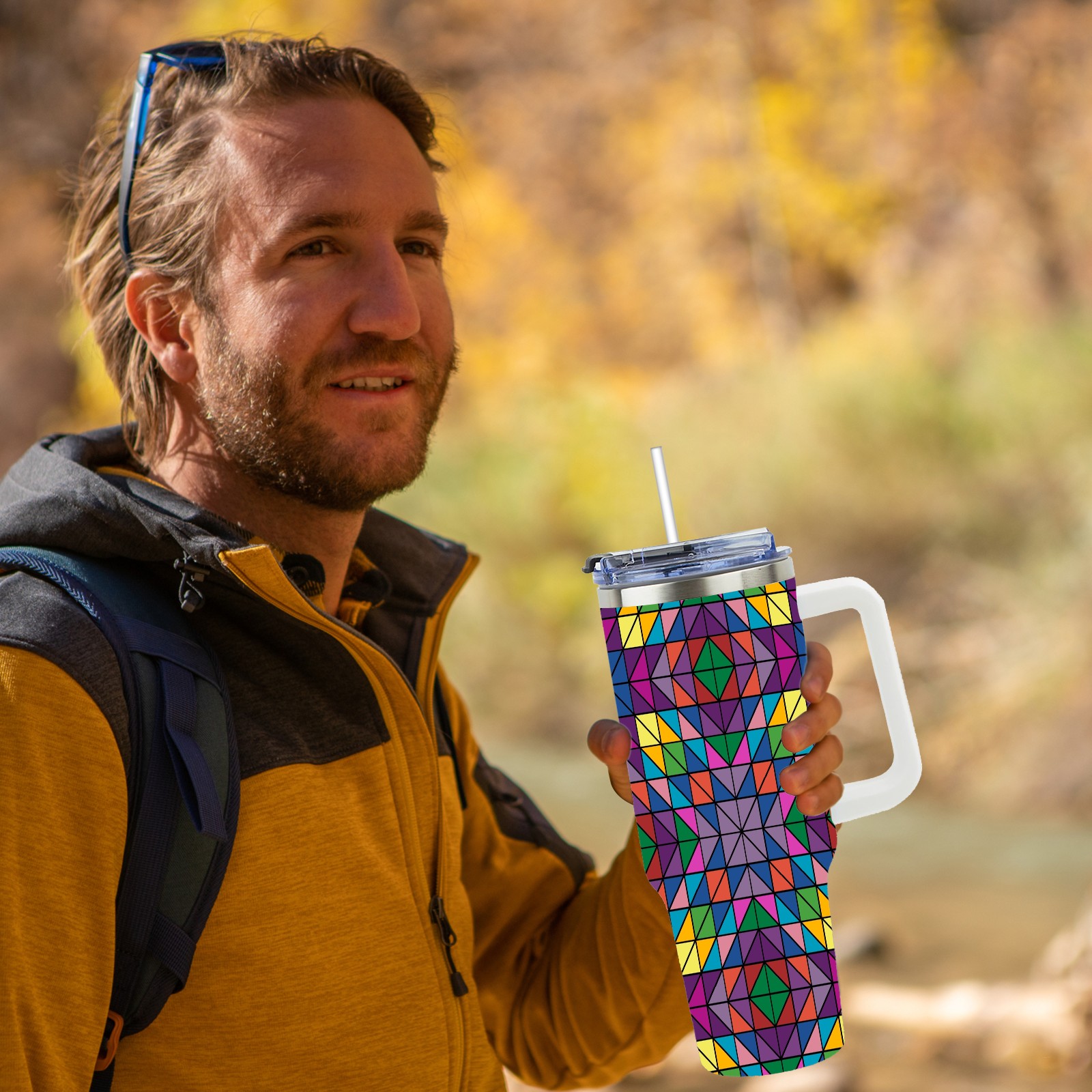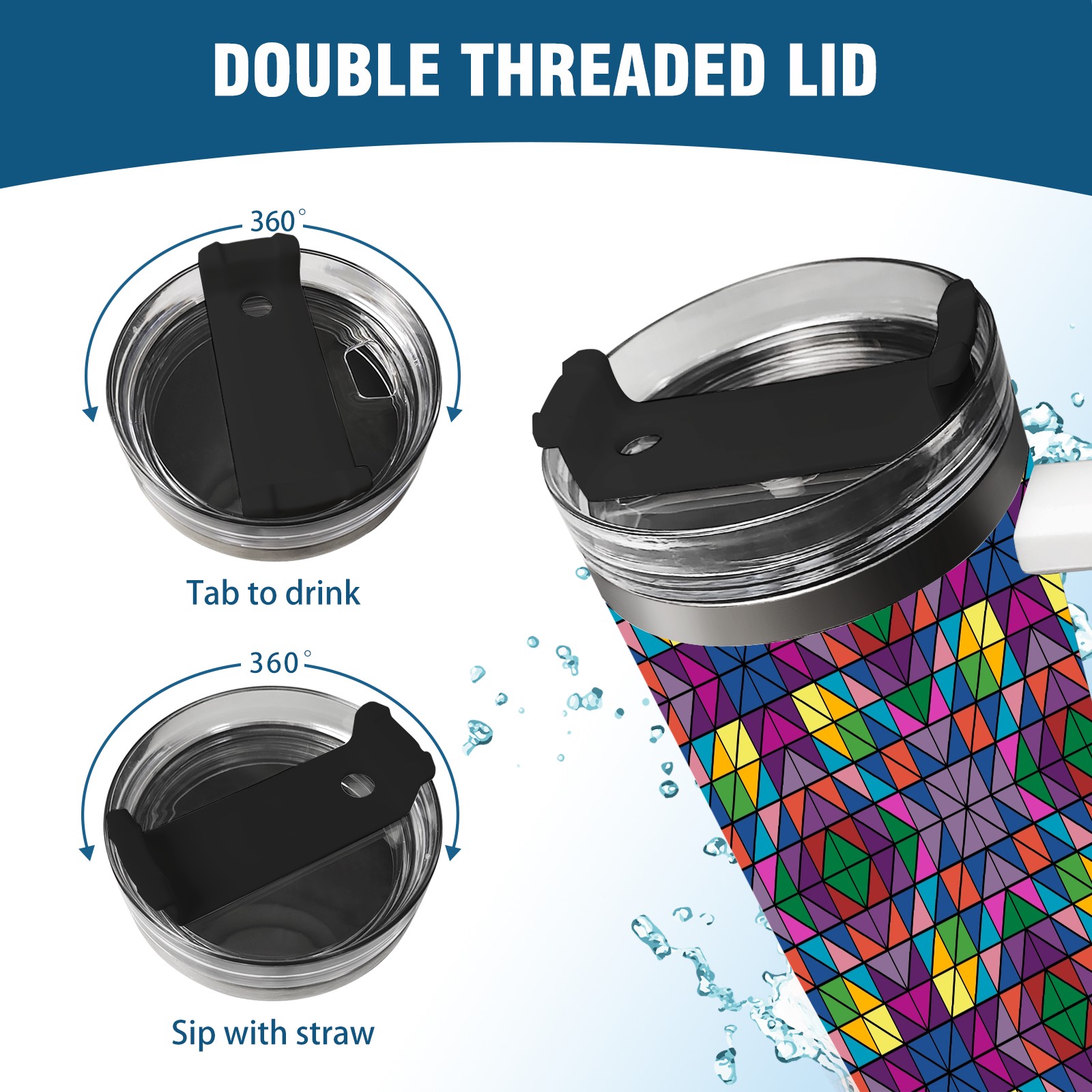 40oz Triangle Seamless Colorful thermos with lid and straw, leak-proof stainless steel, with handle, spill-proof bottle, convenient for travel(pink)