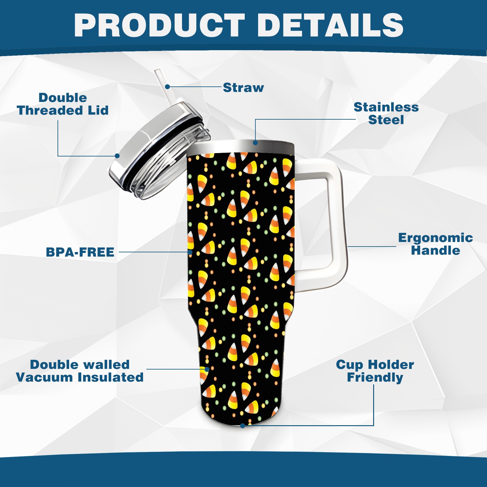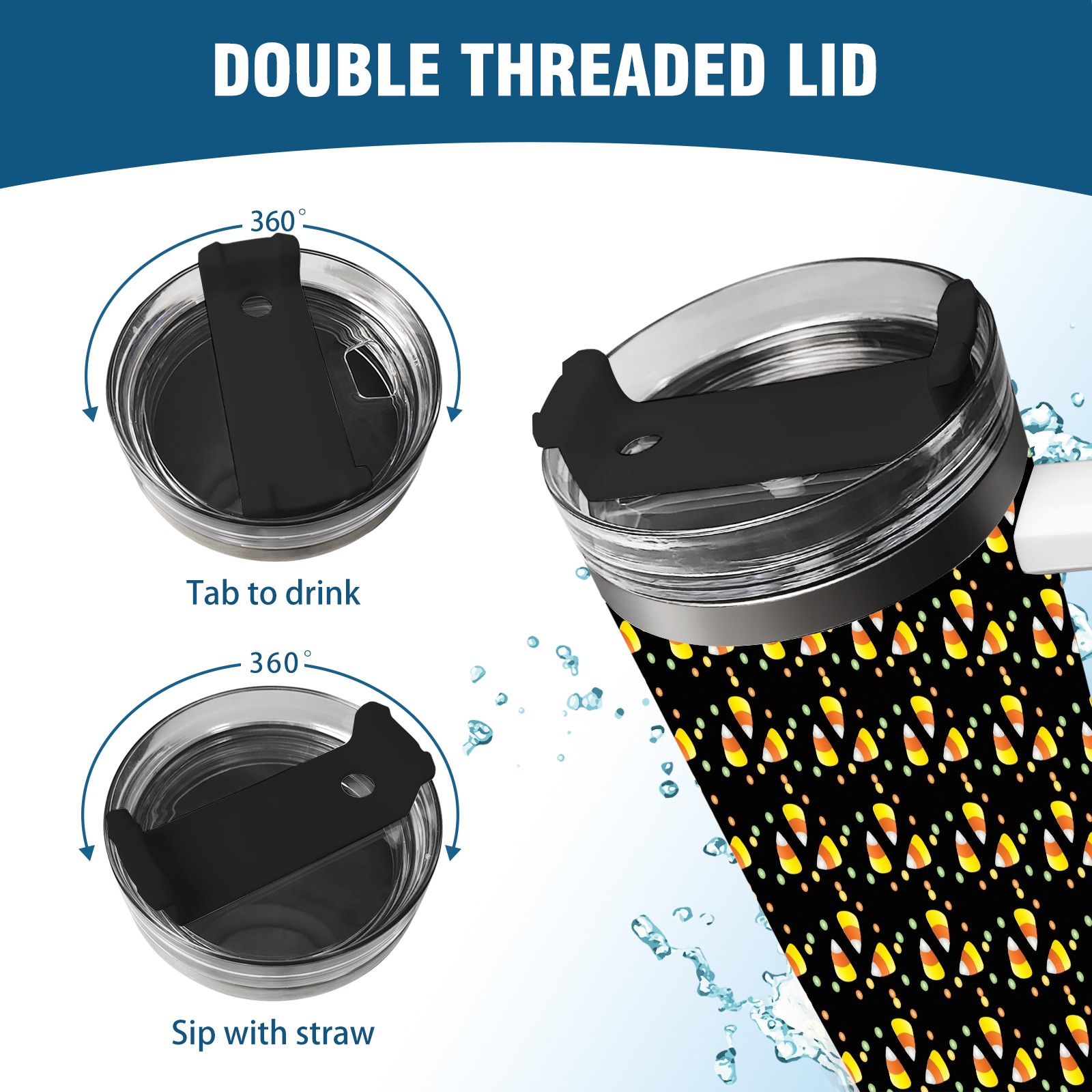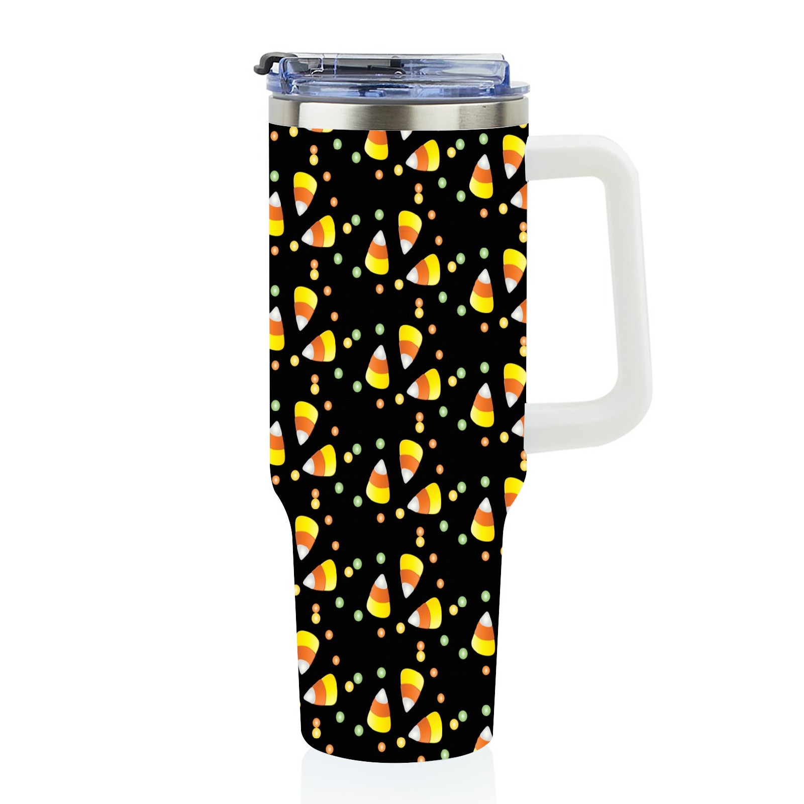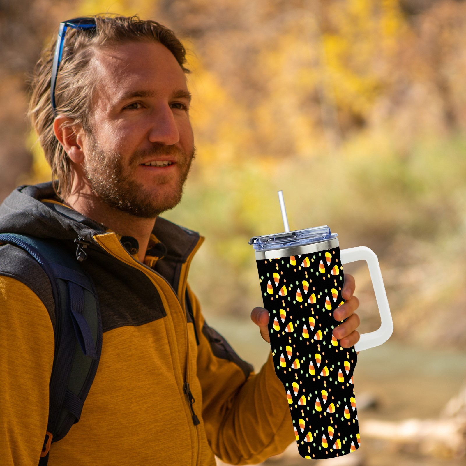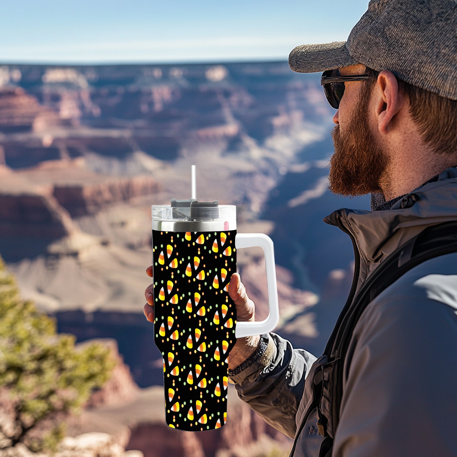 40oz Candy Corn Seamless thermos with lid and straw, leak-proof stainless steel, with handle, spill-proof bottle, convenient for travel(pink)