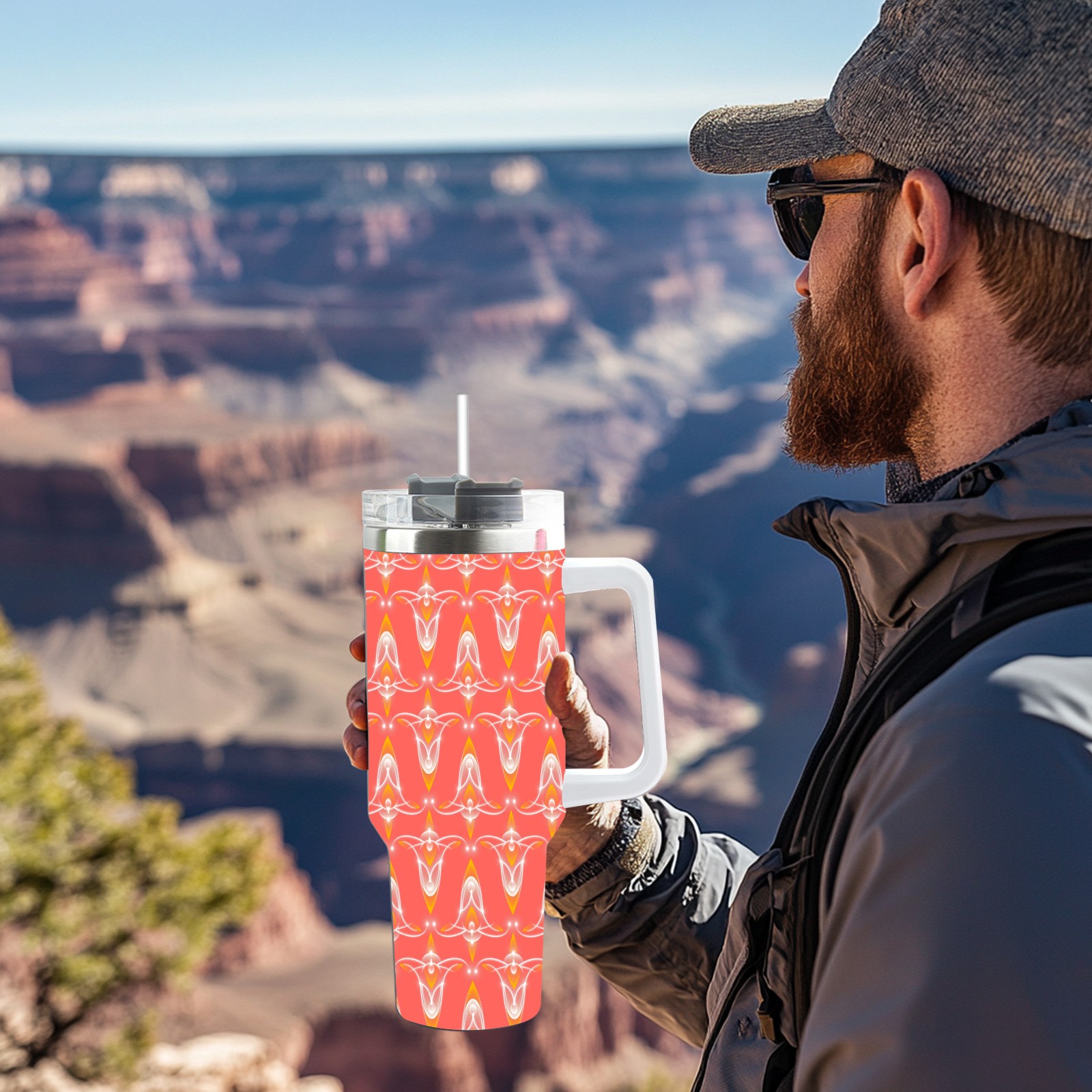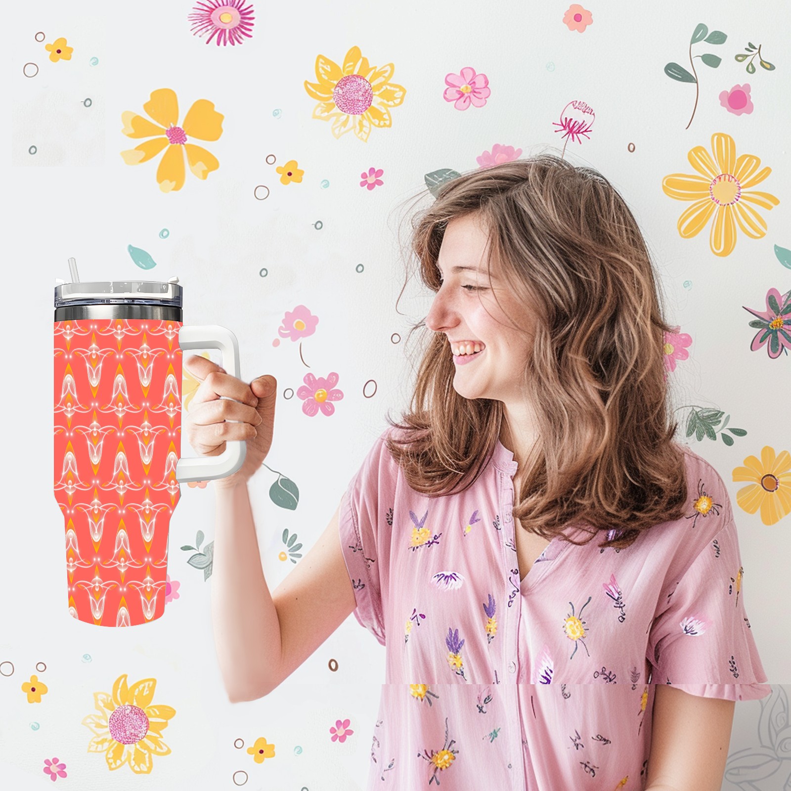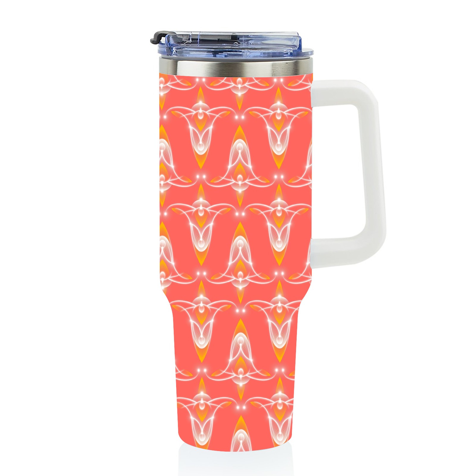 40oz Abstract Seamless Red thermos with lid and straw, leak-proof stainless steel, with handle, spill-proof bottle, convenient for travel(pink)
