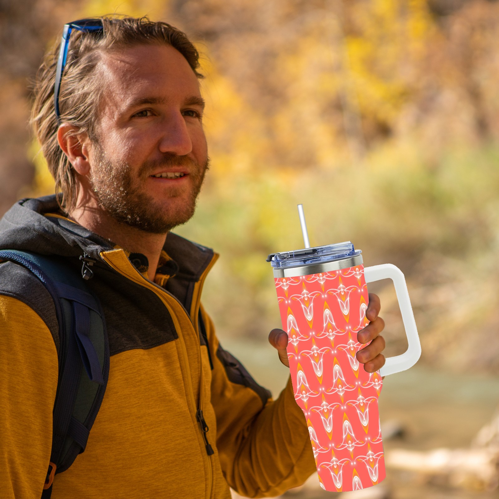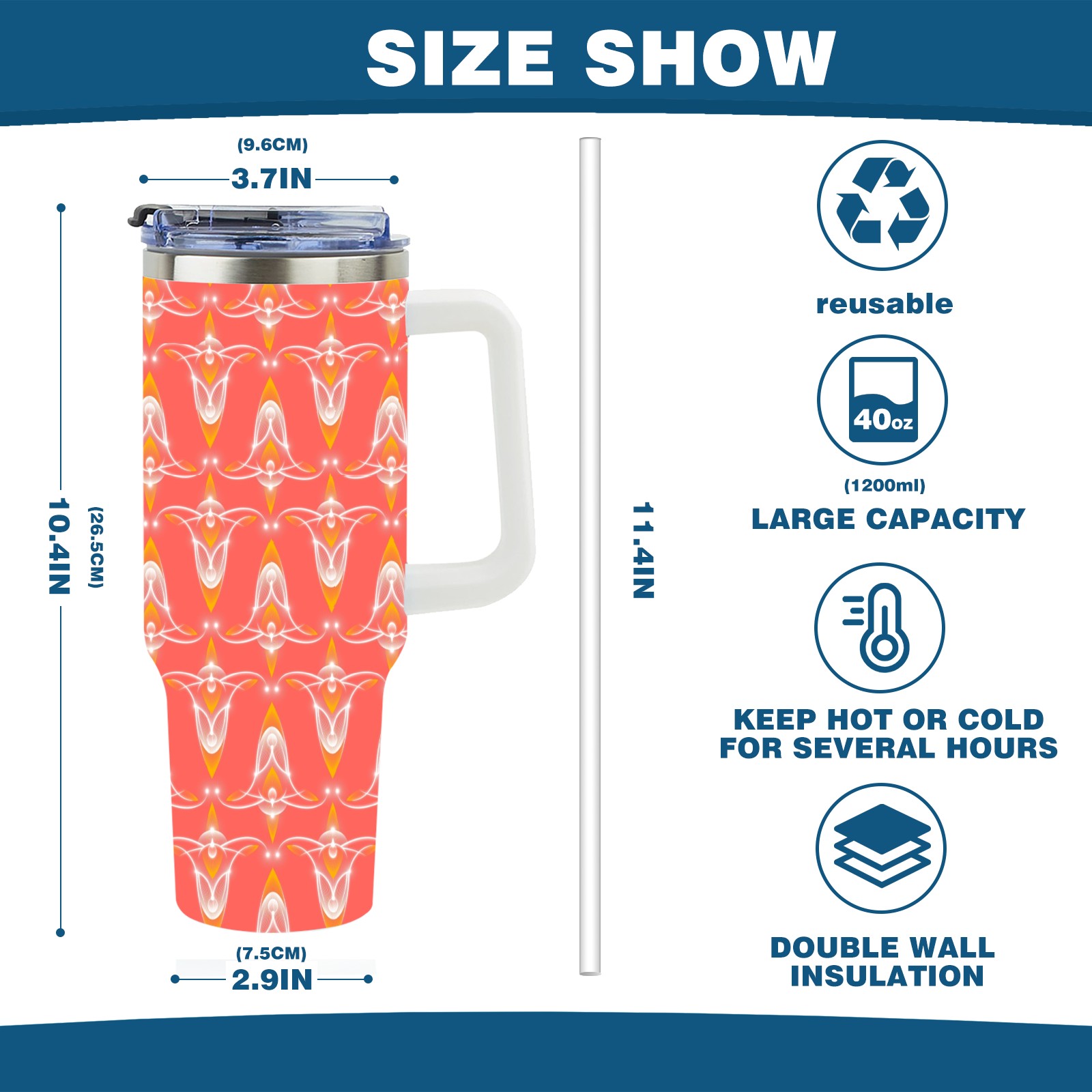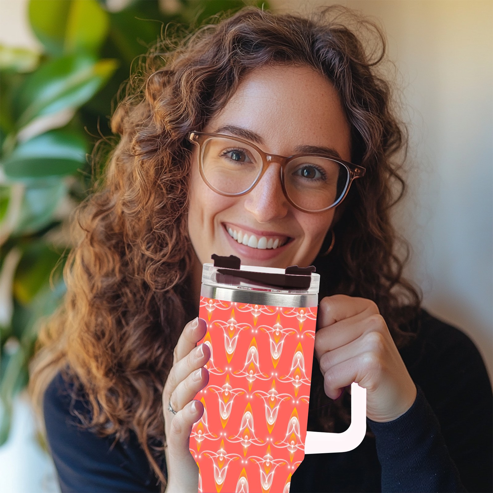 40oz Abstract Seamless Red thermos with lid and straw, leak-proof stainless steel, with handle, spill-proof bottle, convenient for travel(pink)