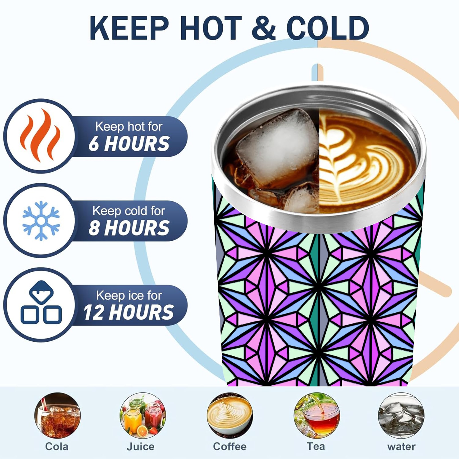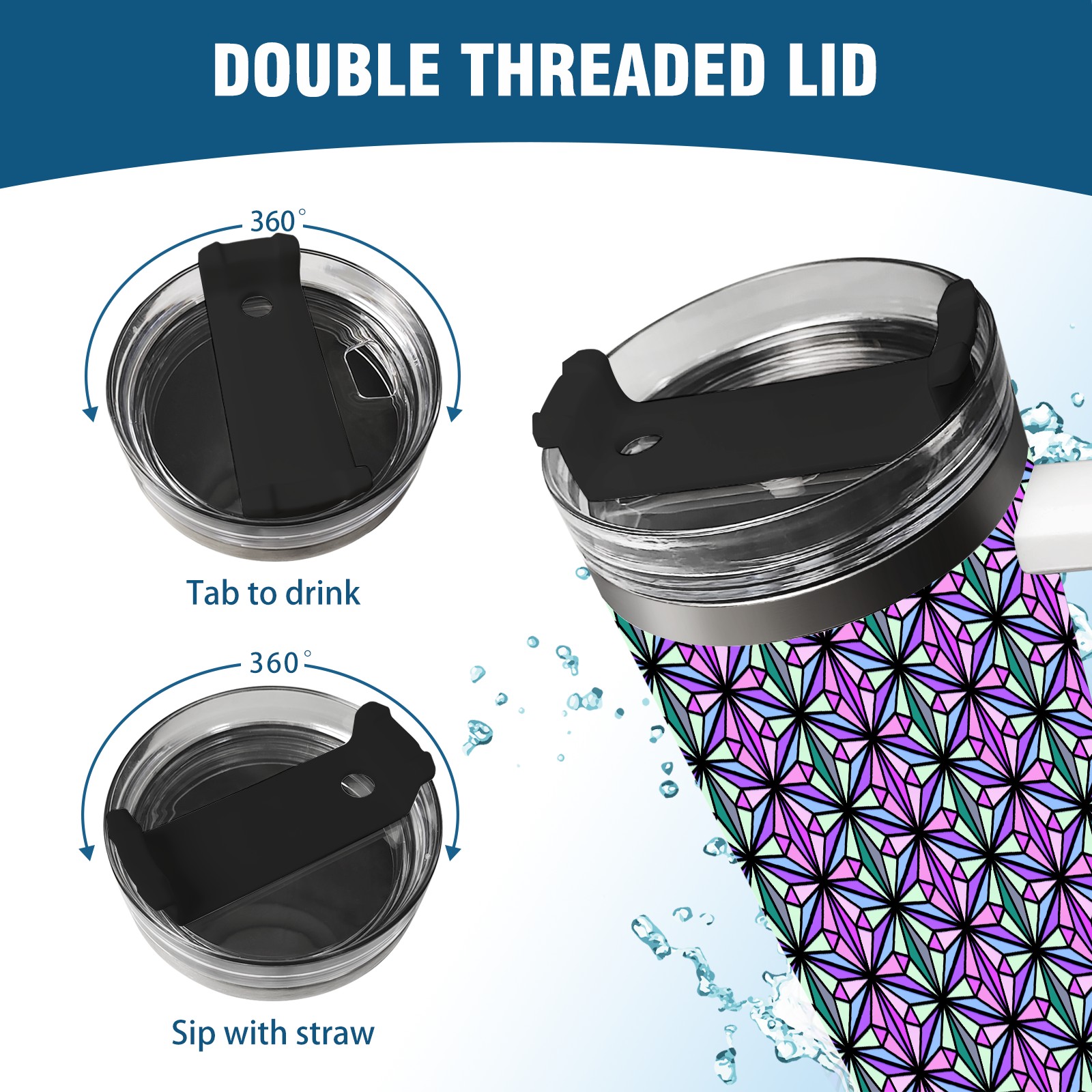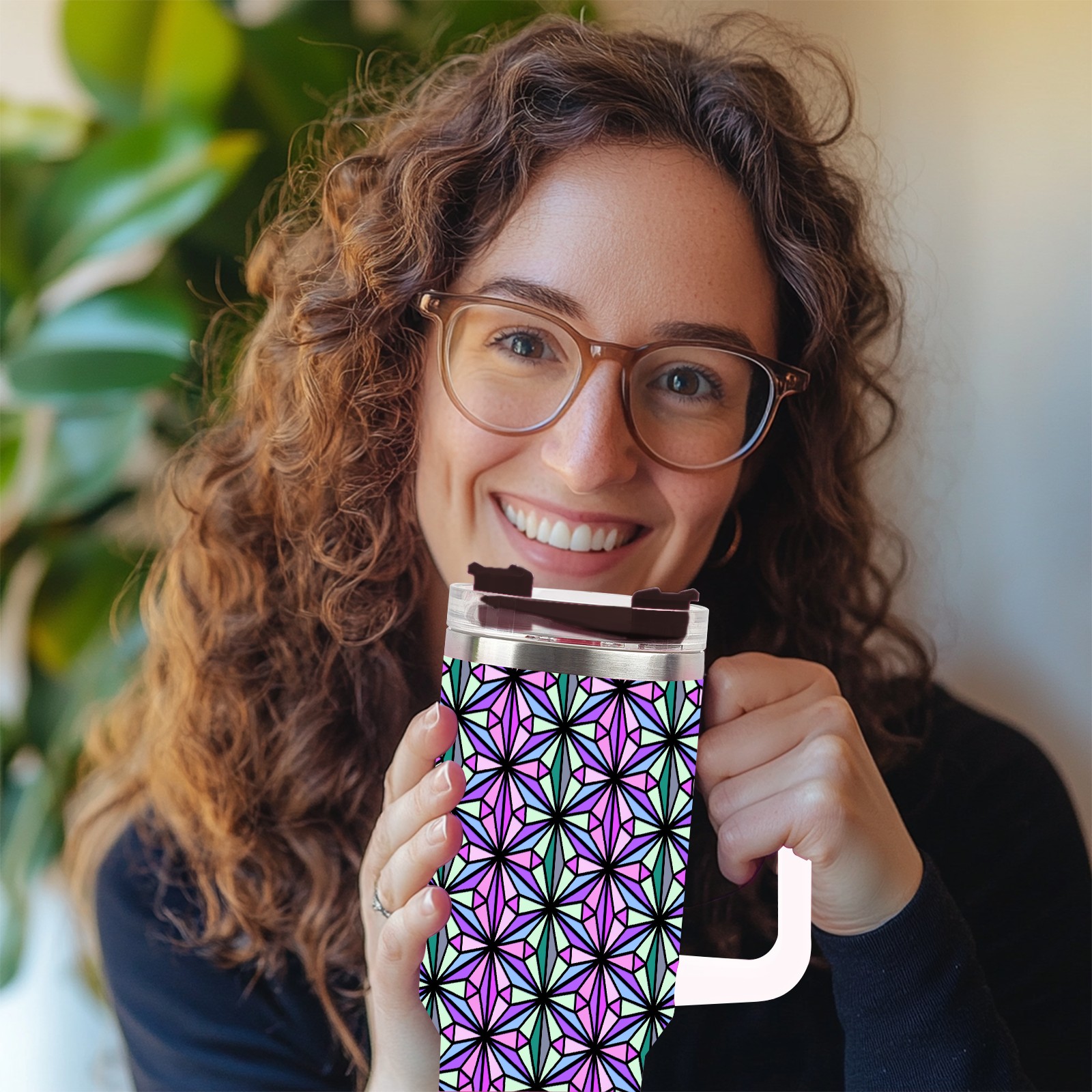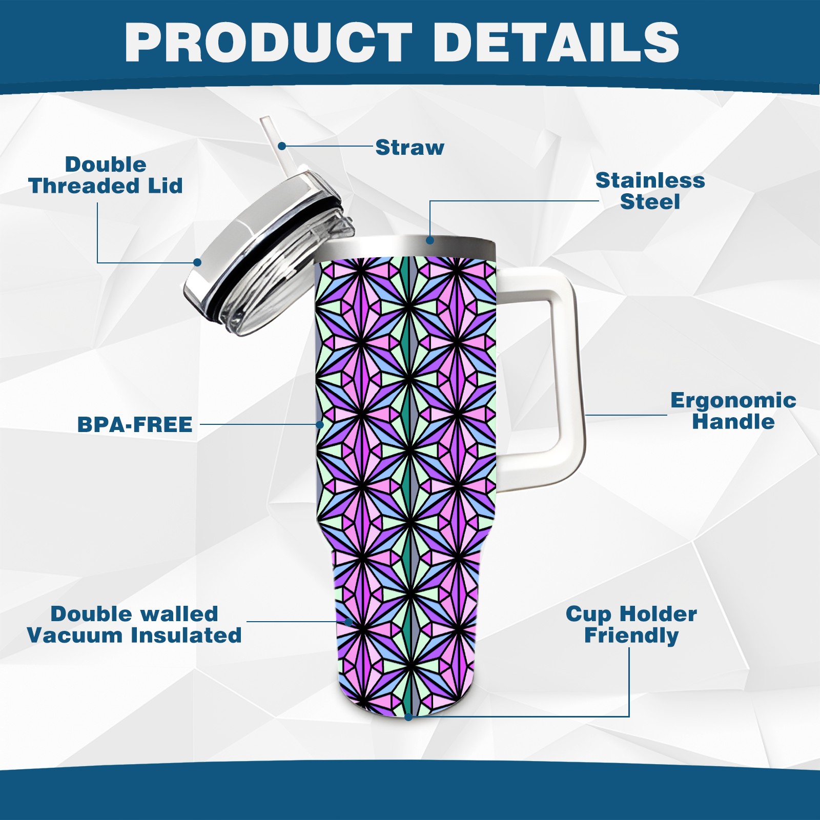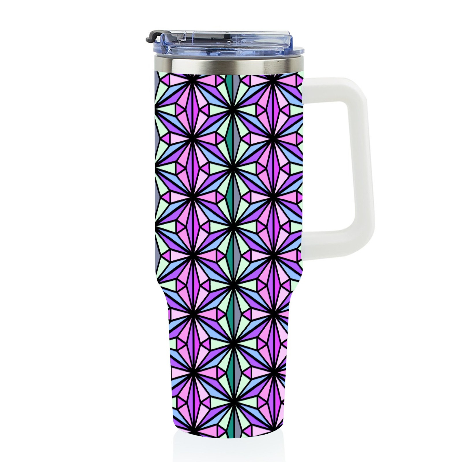 40oz Triangle Abstract Colorful thermos with lid and straw, leak-proof stainless steel, with handle, spill-proof bottle, convenient for travel(pink)