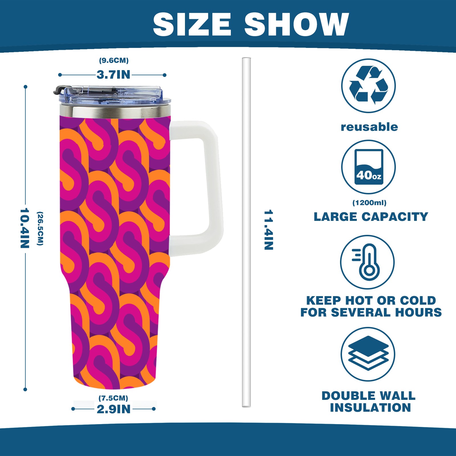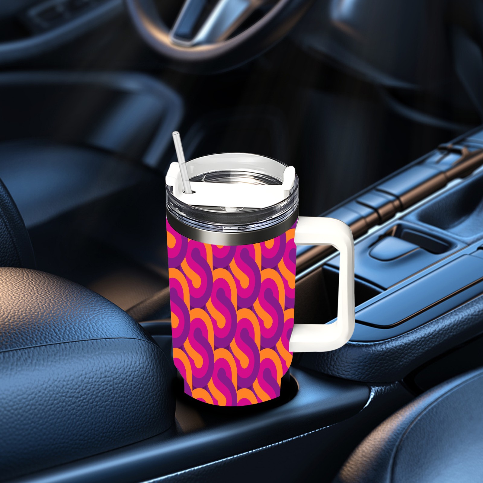 40oz Retro Seamless Colorful thermos with lid and straw, leak-proof stainless steel, with handle, spill-proof bottle, convenient for travel(pink)