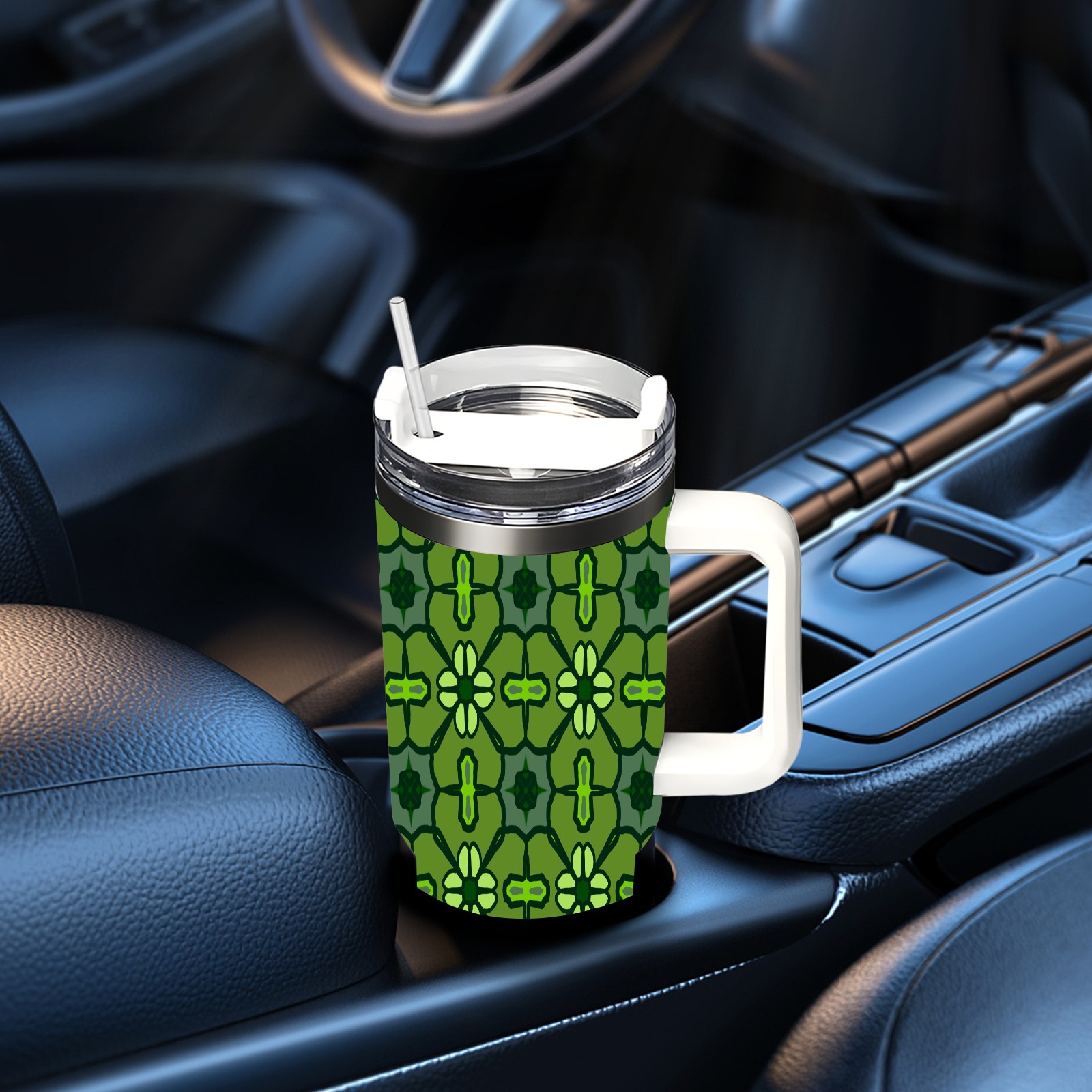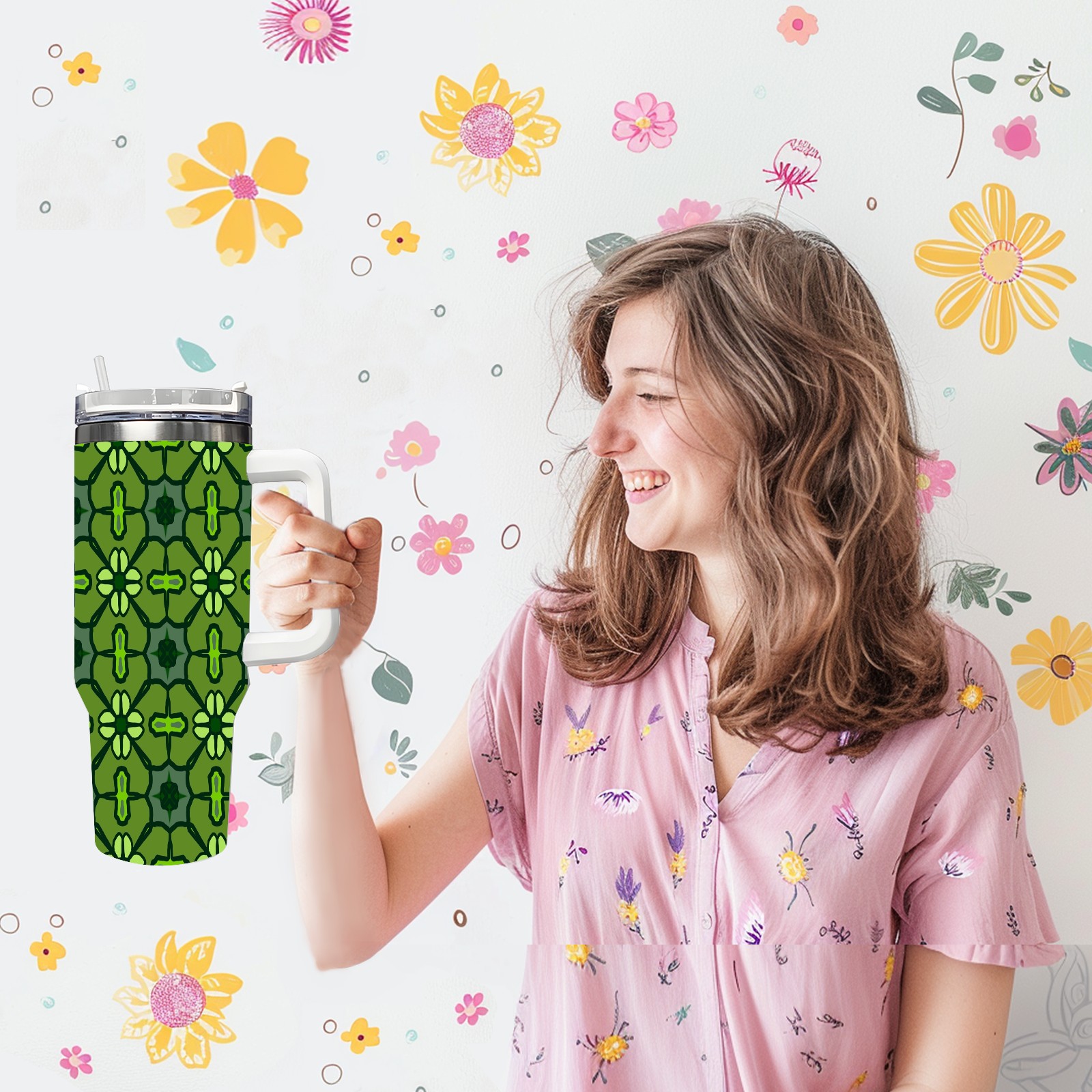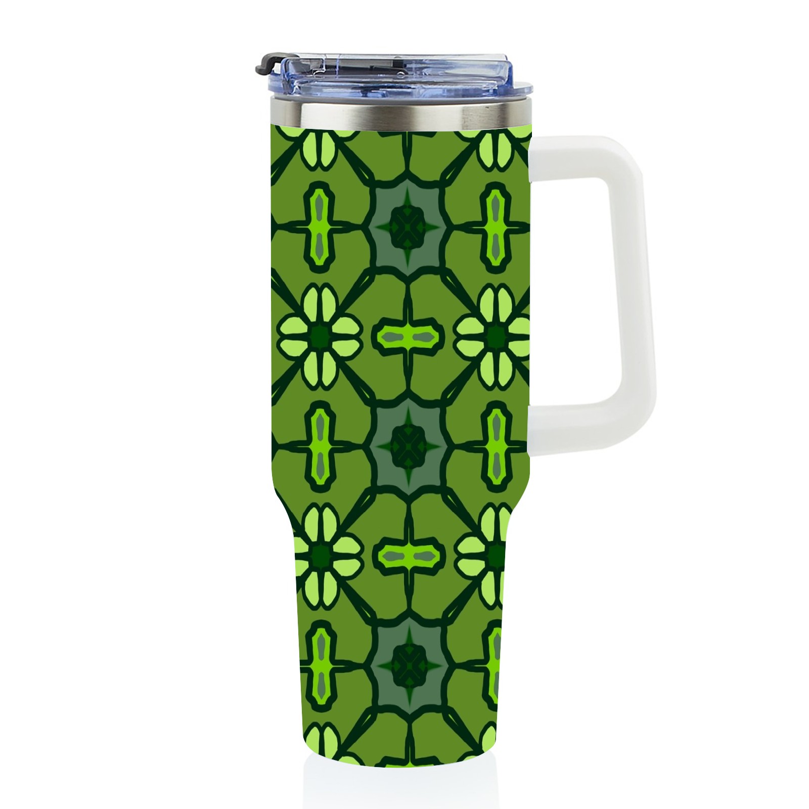 40oz Abstract Seamless Green thermos with lid and straw, leak-proof stainless steel, with handle, spill-proof bottle, convenient for travel(pink)