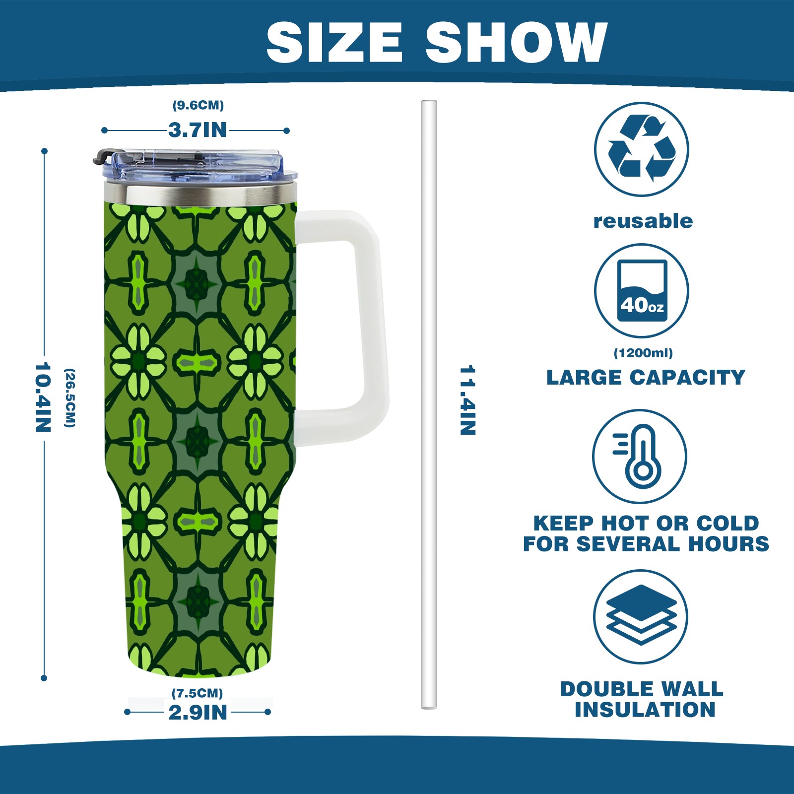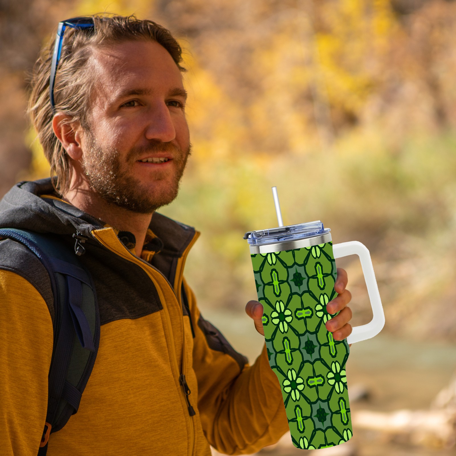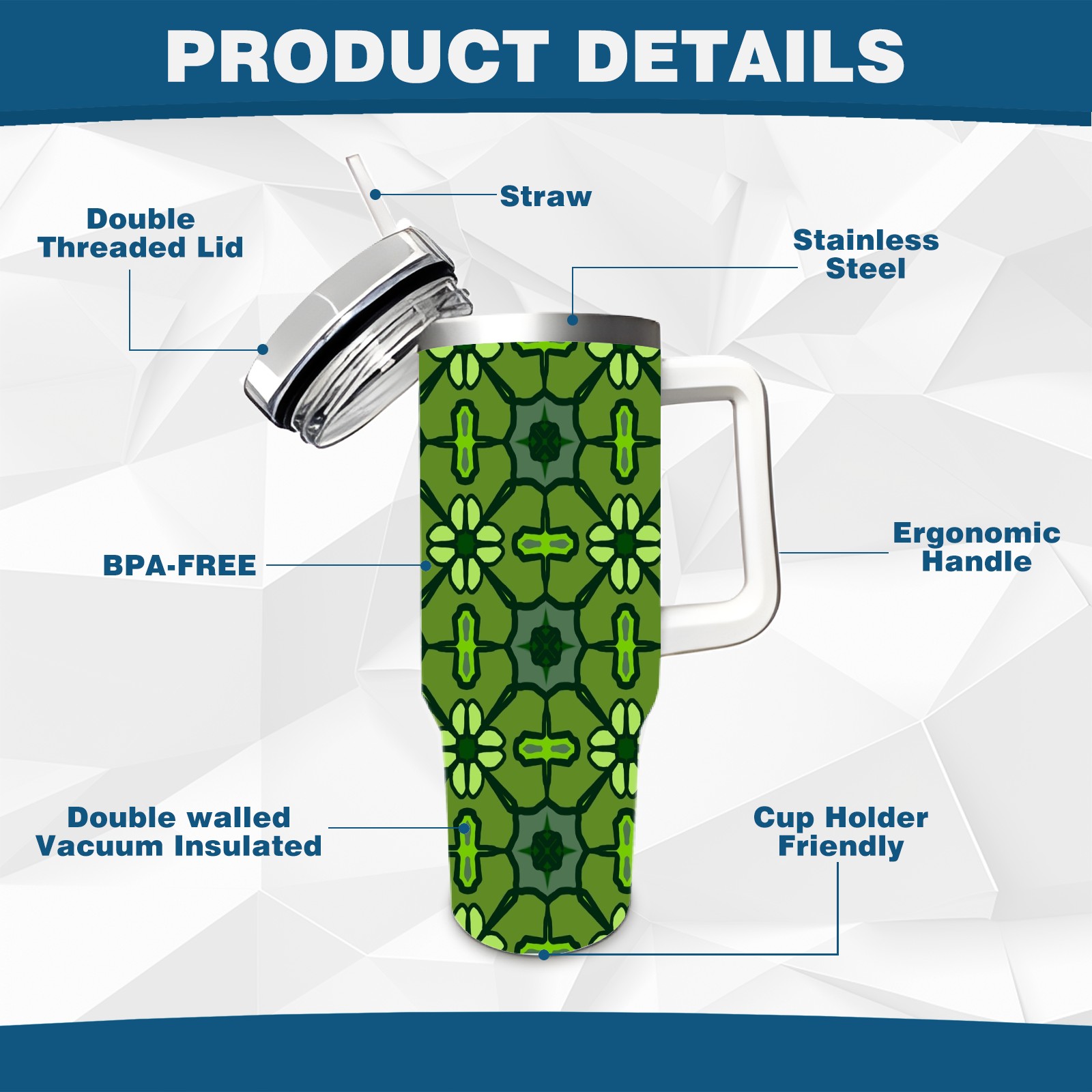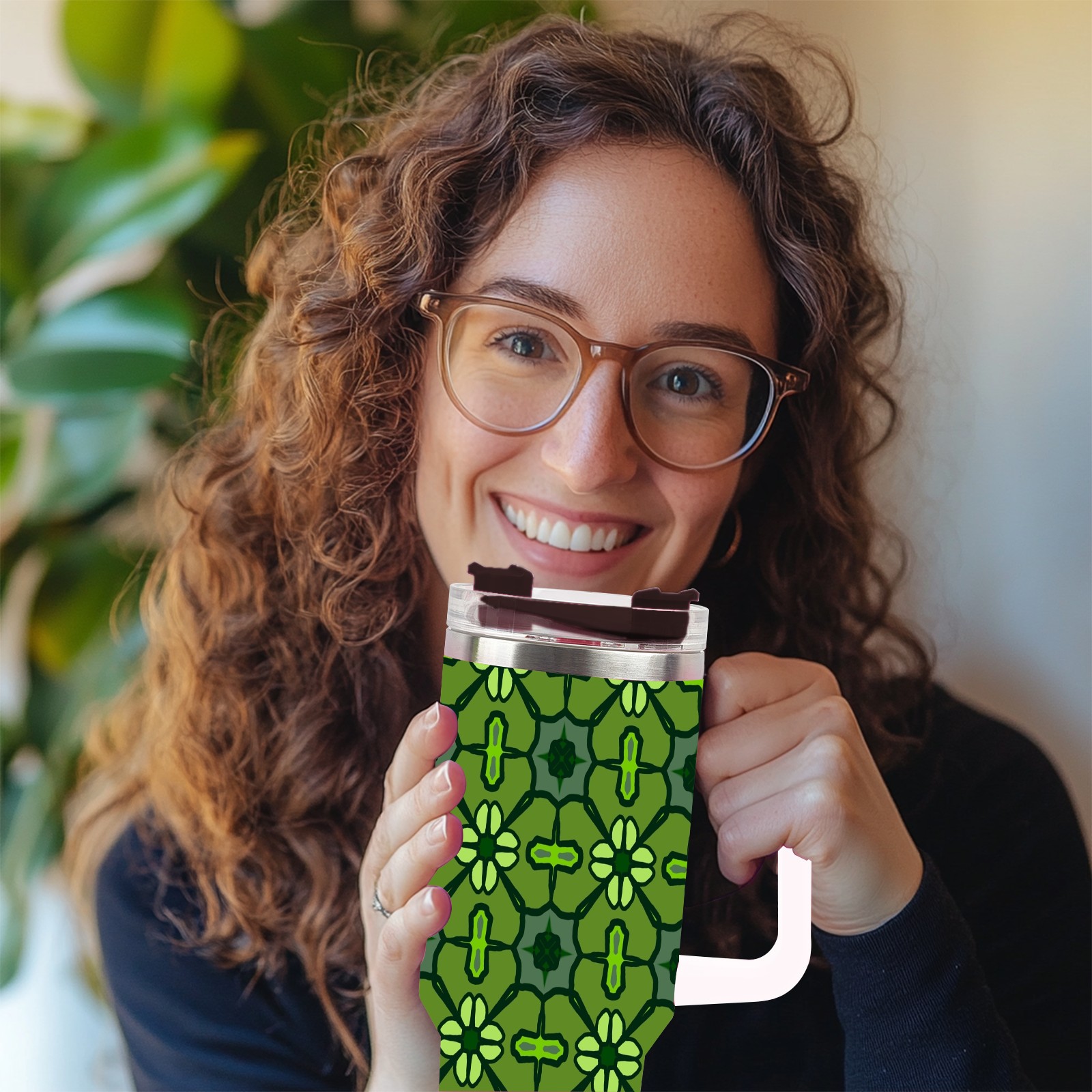 40oz Abstract Seamless Green thermos with lid and straw, leak-proof stainless steel, with handle, spill-proof bottle, convenient for travel(pink)