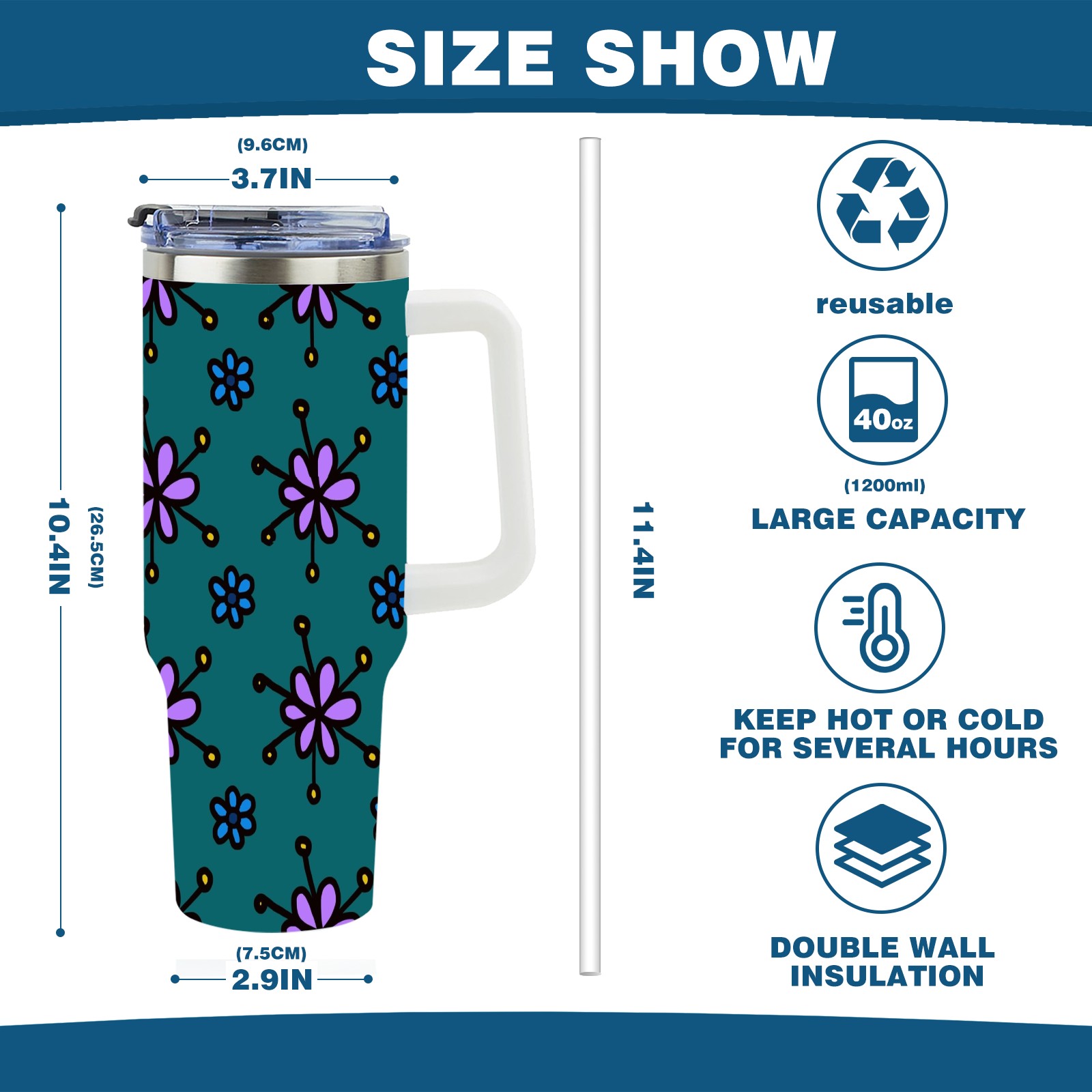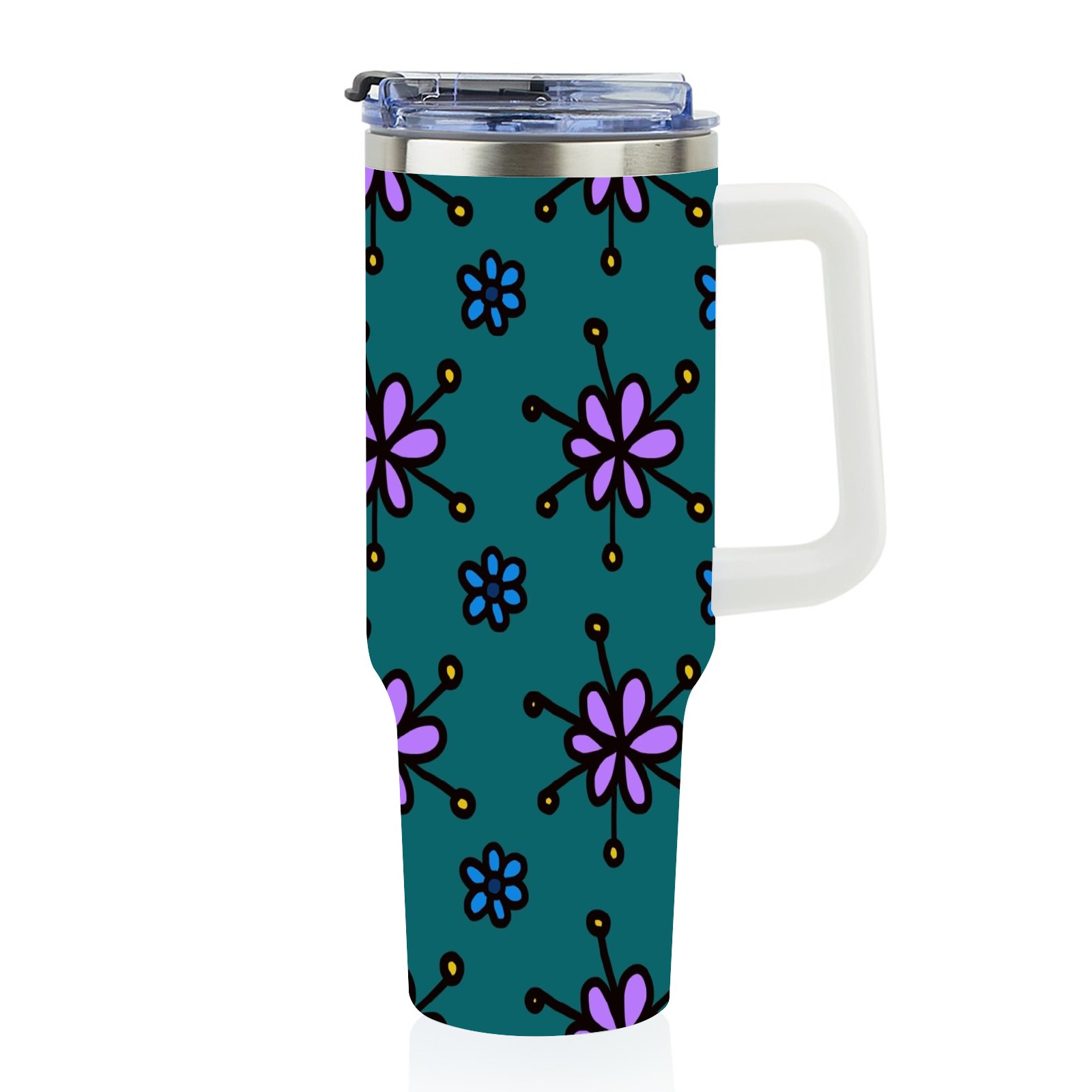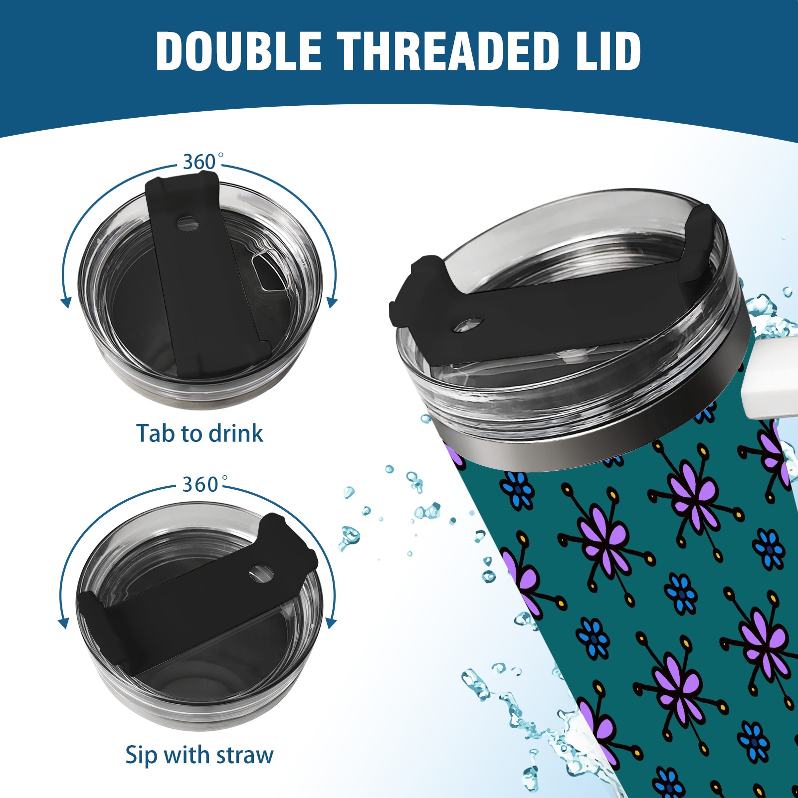 40oz Flower Seamless Colorful thermos with lid and straw, leak-proof stainless steel, with handle, spill-proof bottle, convenient for travel(pink)