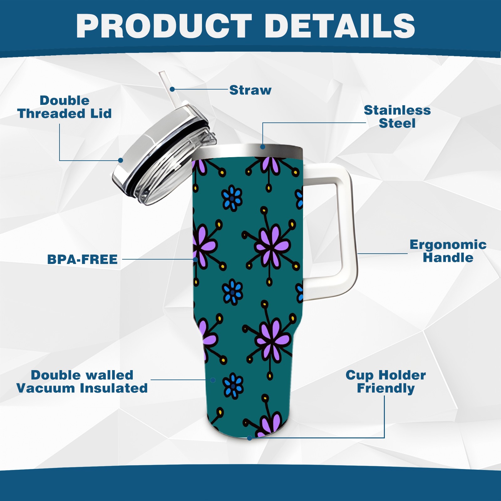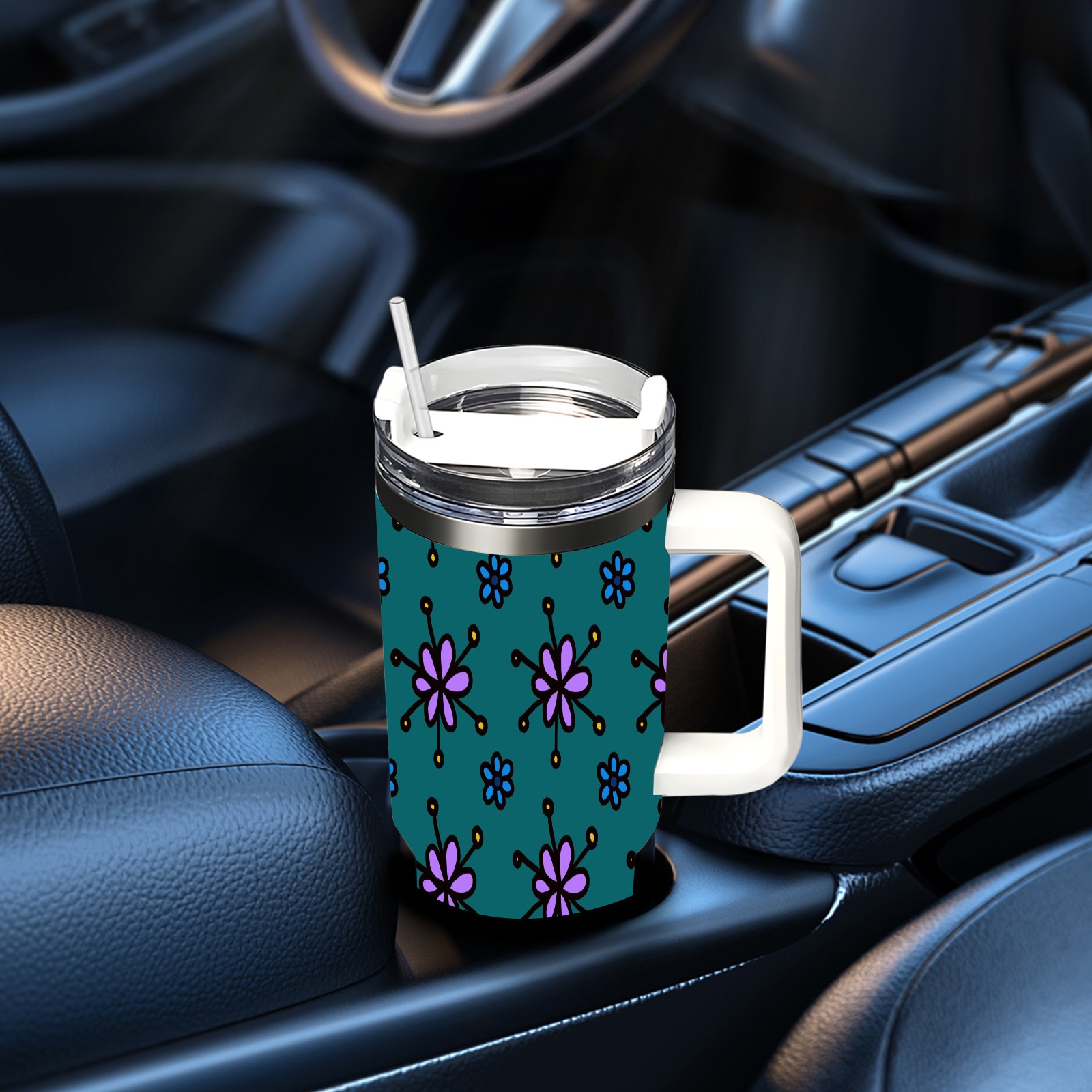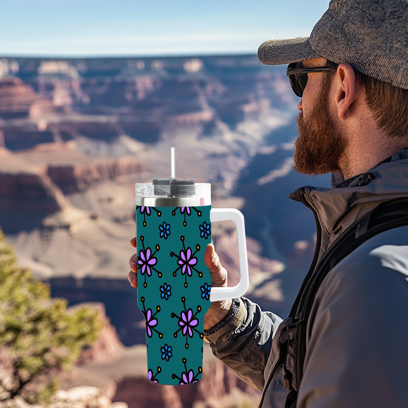 40oz Flower Seamless Colorful thermos with lid and straw, leak-proof stainless steel, with handle, spill-proof bottle, convenient for travel(pink)