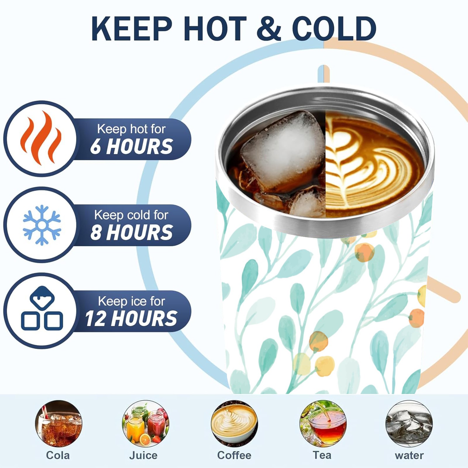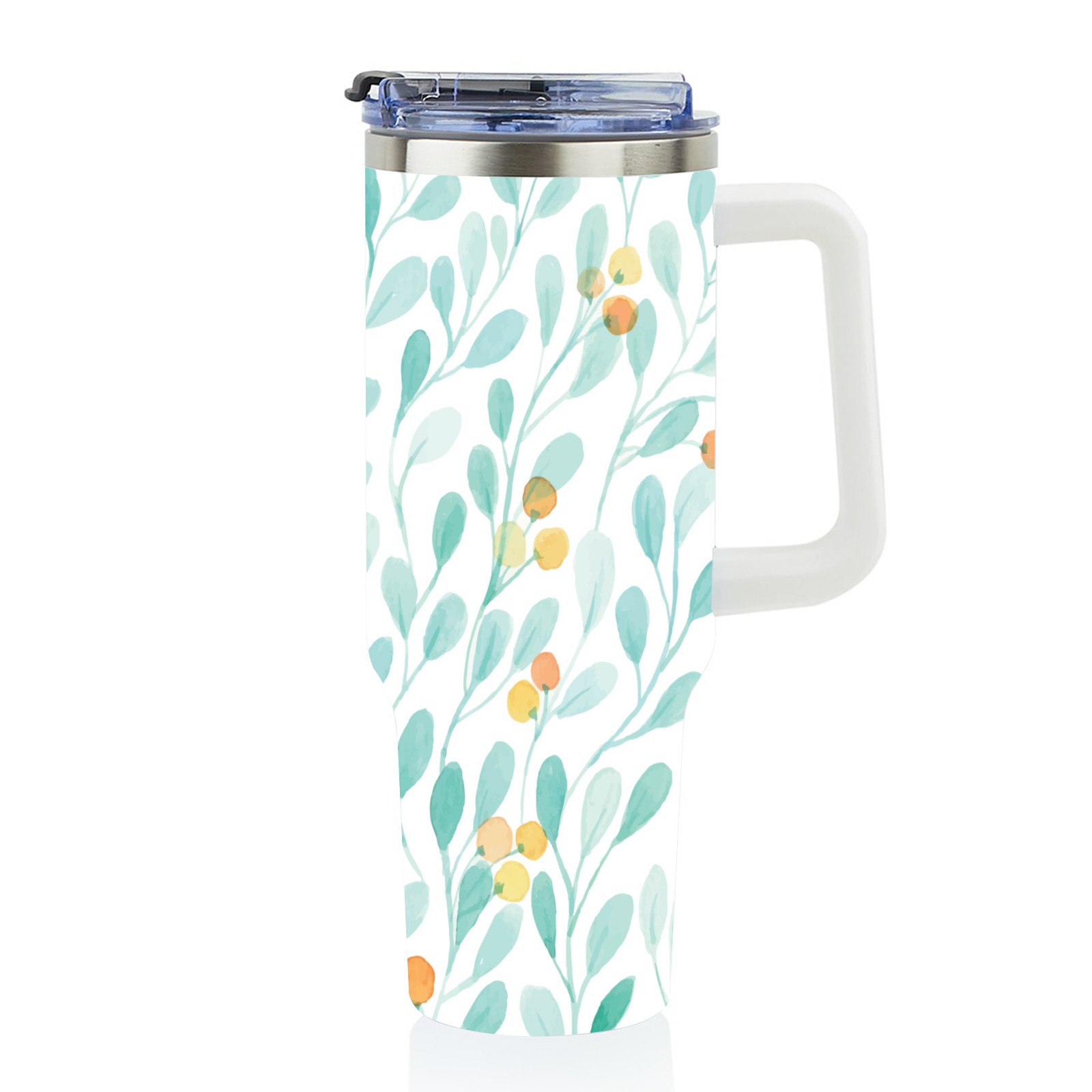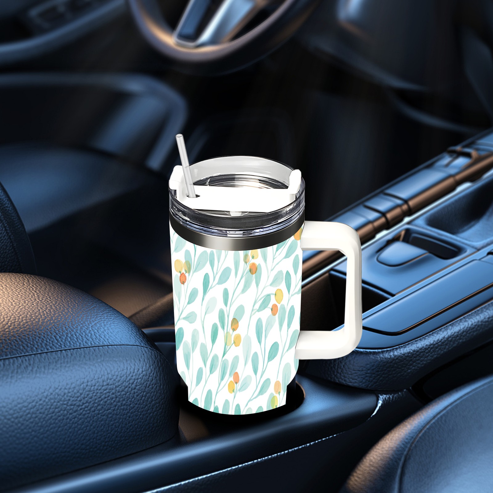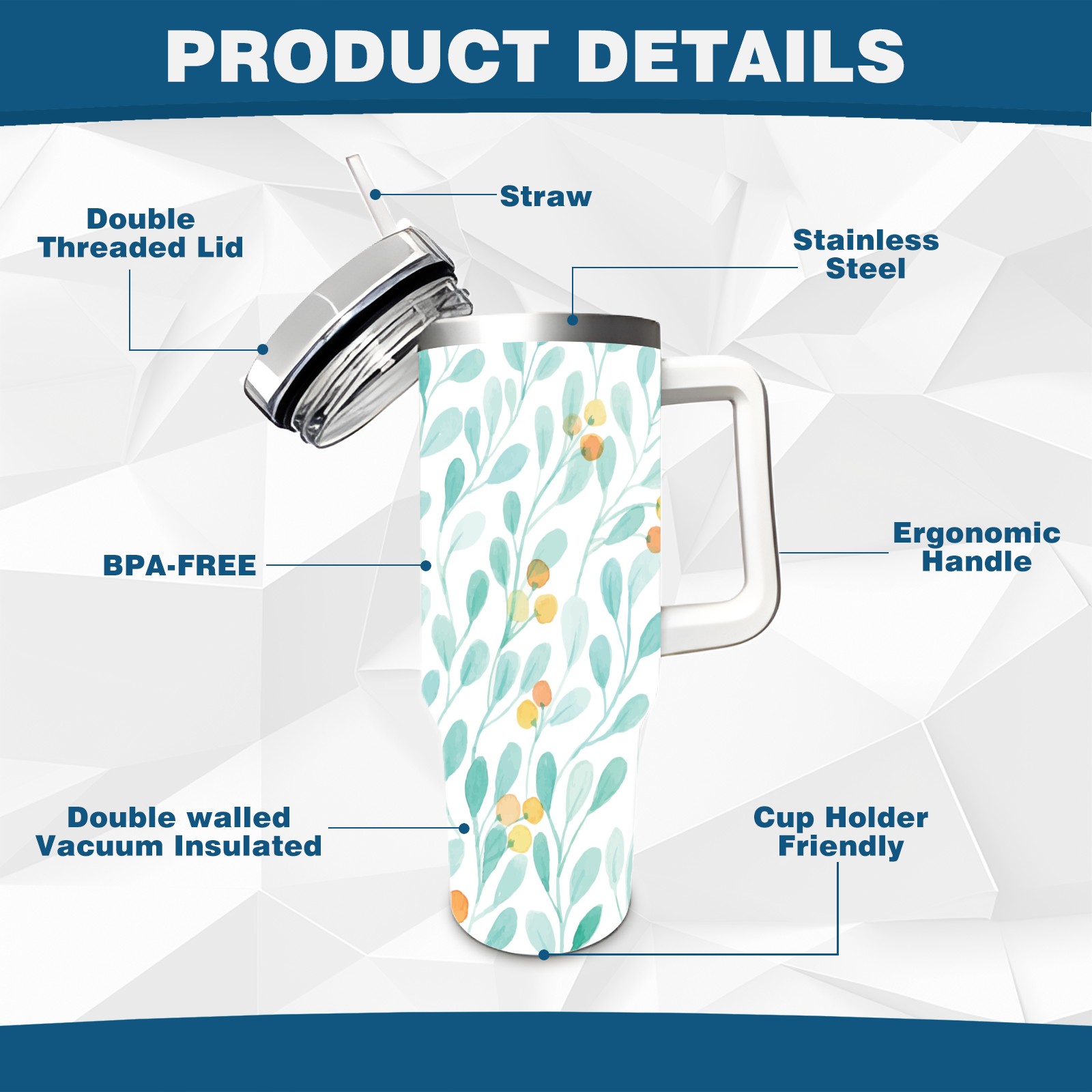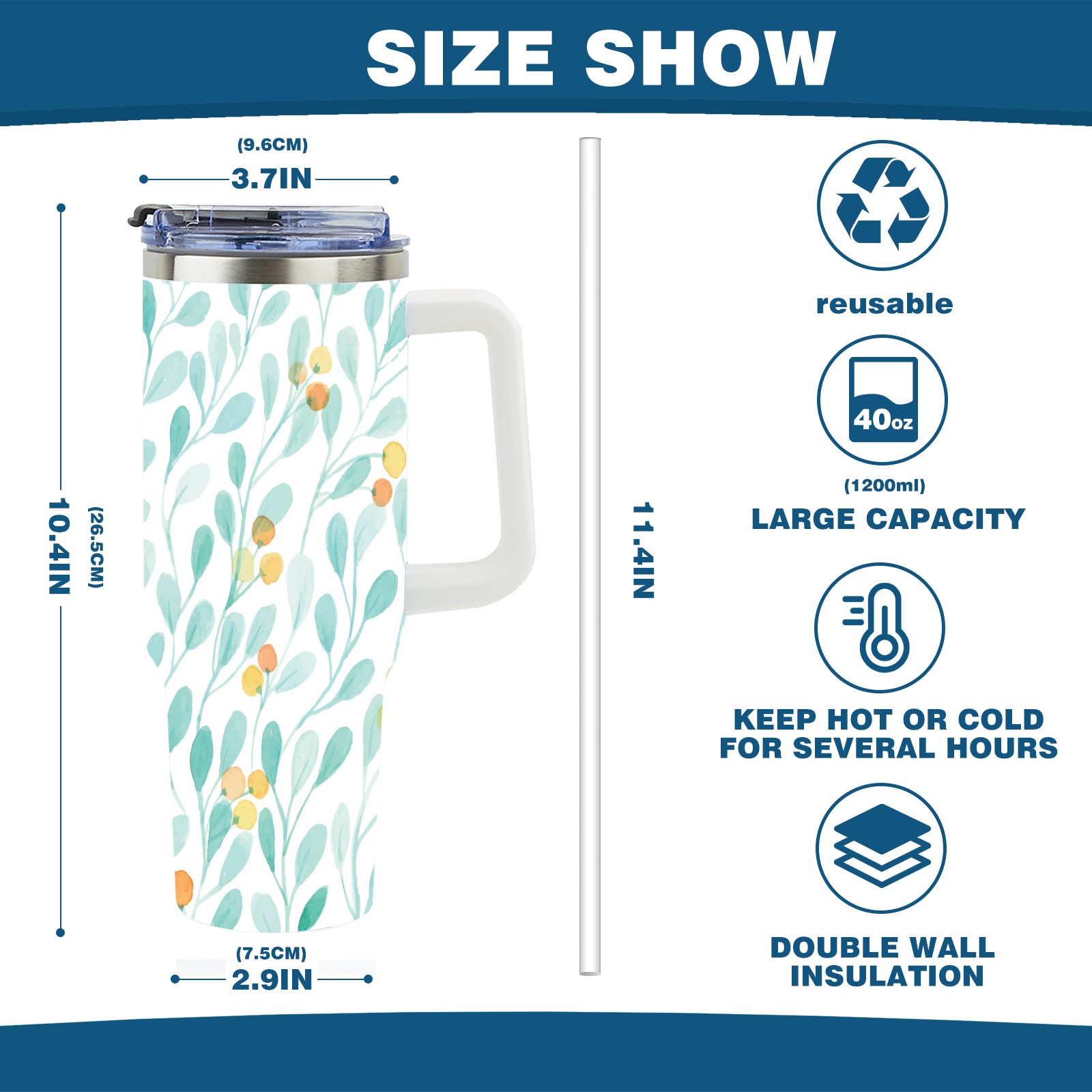 40oz Leaves Seamless Watercolor thermos with lid and straw, leak-proof stainless steel, with handle, spill-proof bottle, convenient for travel(pink)