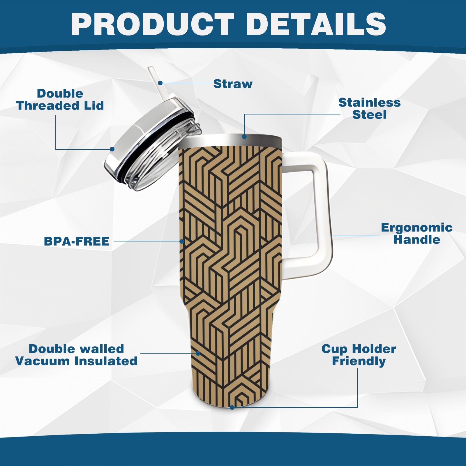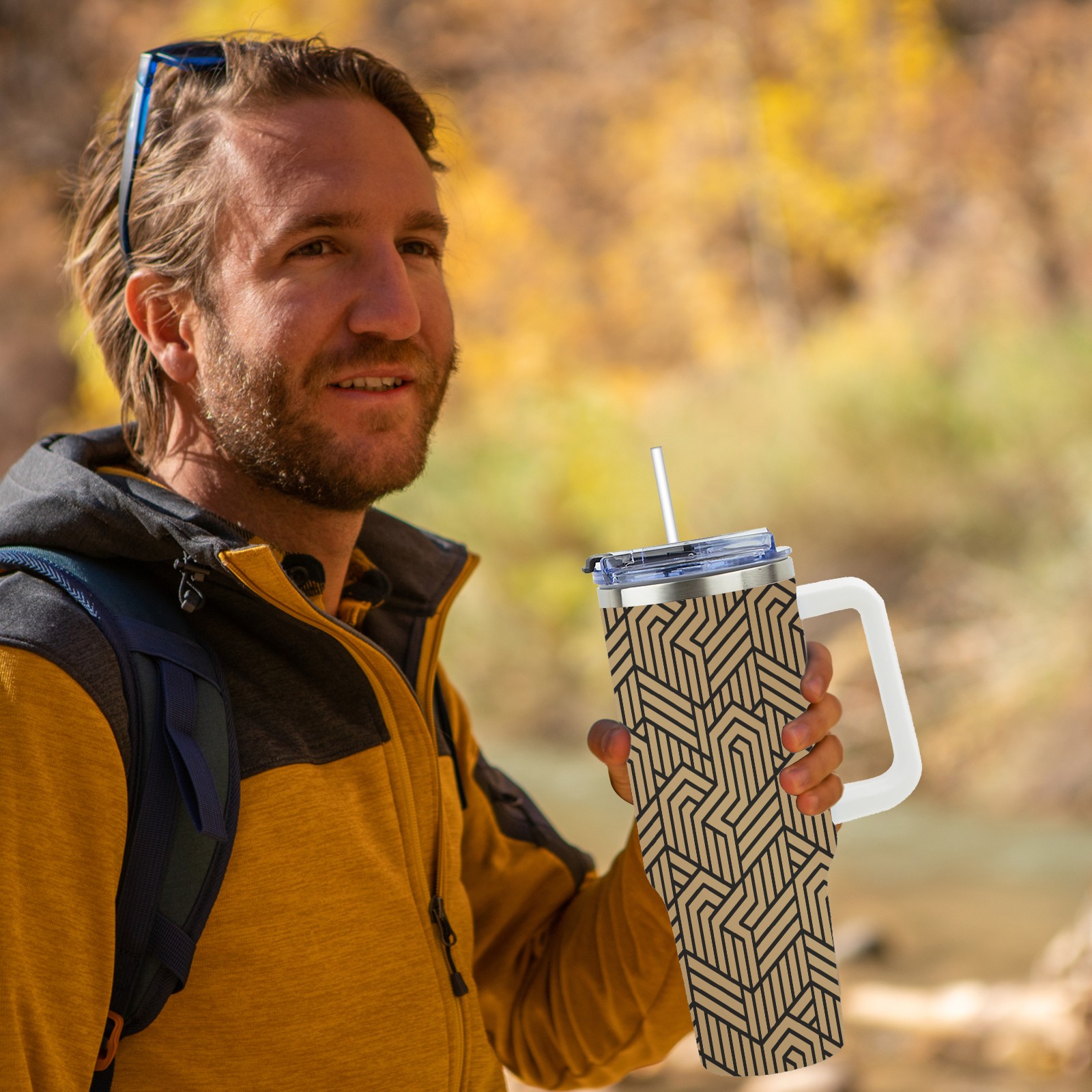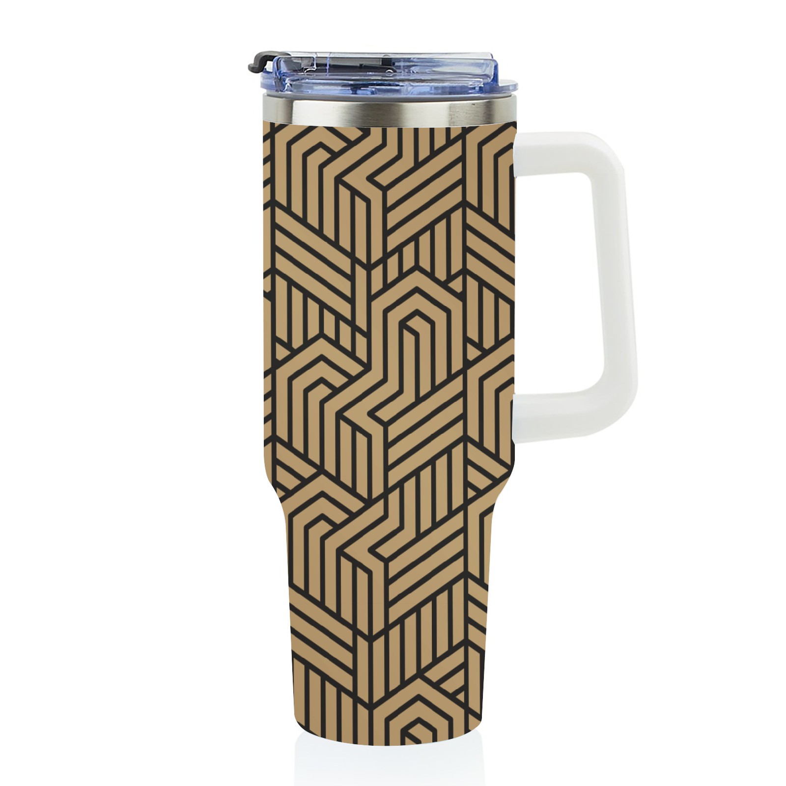 40oz Abstract Frame Seamless thermos with lid and straw, leak-proof stainless steel, with handle, spill-proof bottle, convenient for travel(pink)