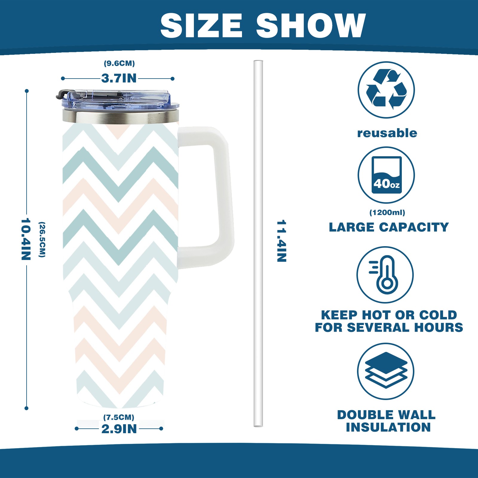 40oz Wavy Line Seamless Colorful thermos with lid and straw, leak-proof stainless steel, with handle, spill-proof bottle, convenient for travel(pink)