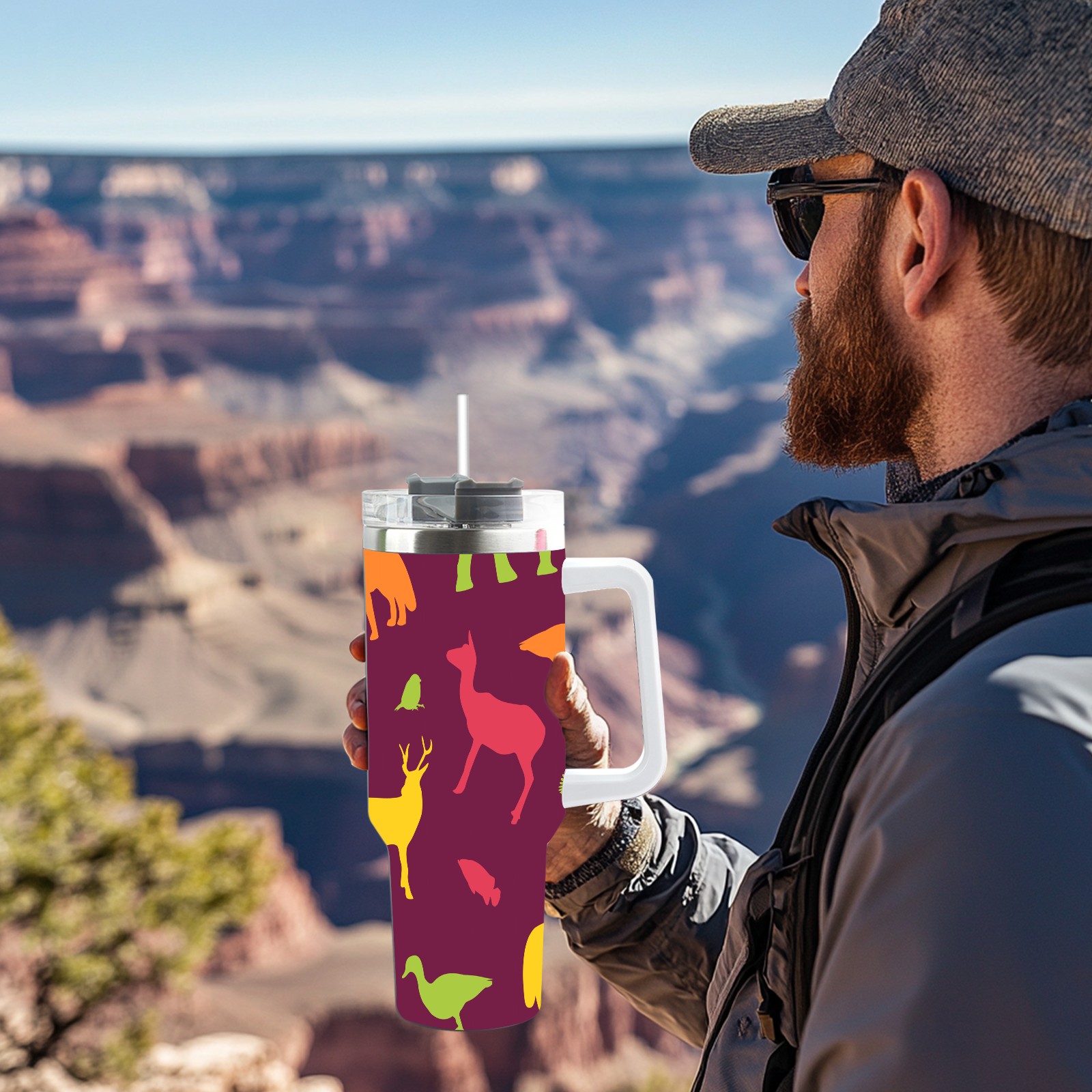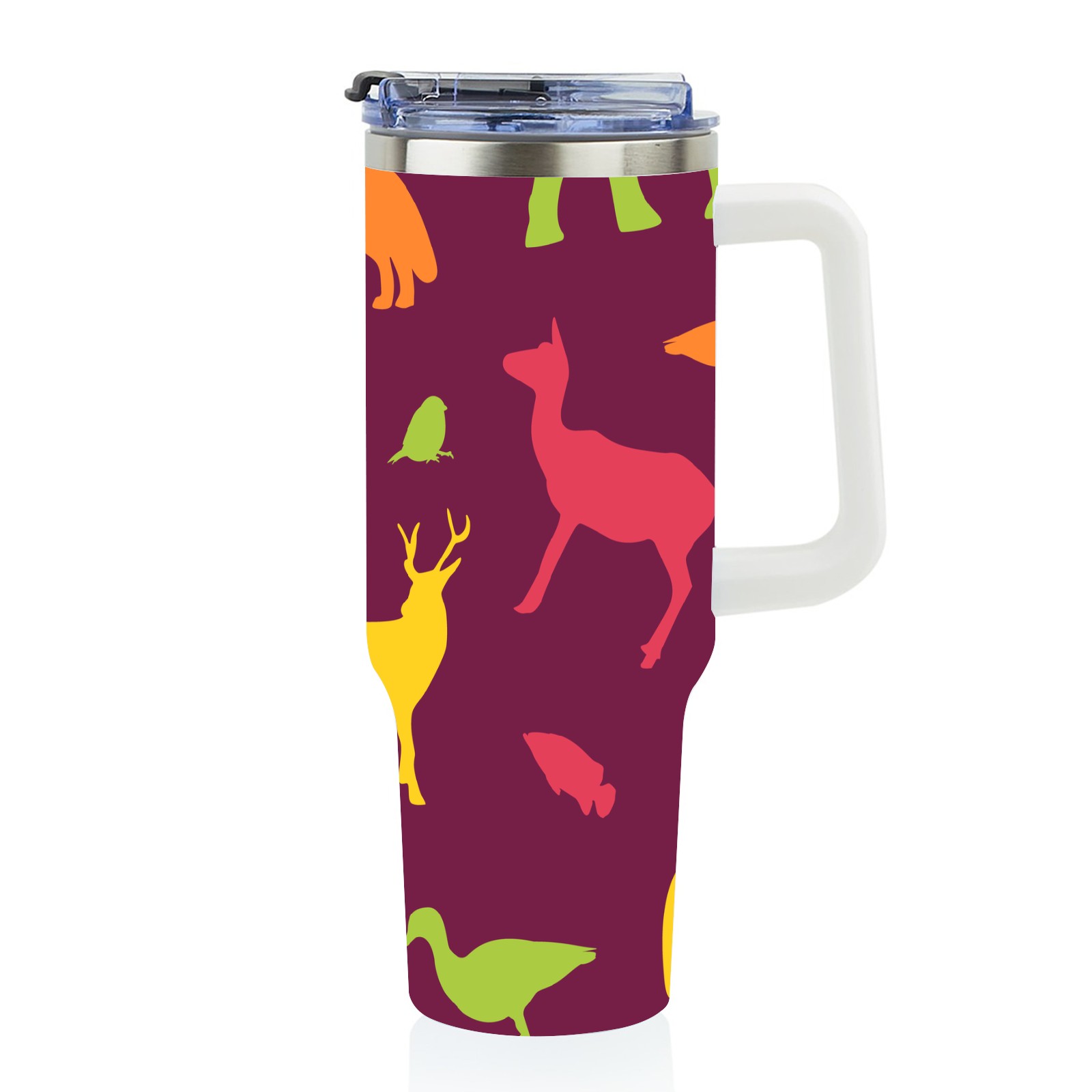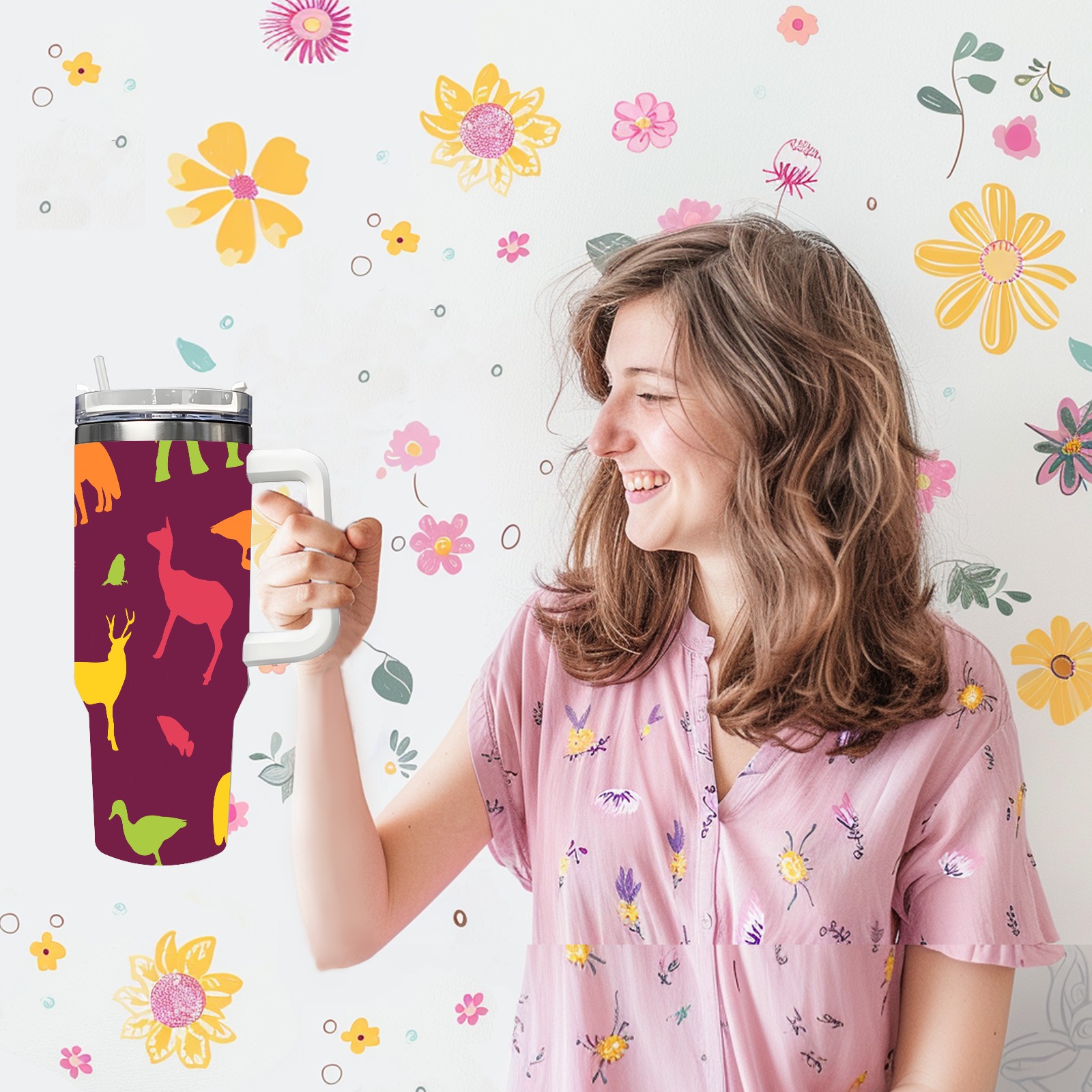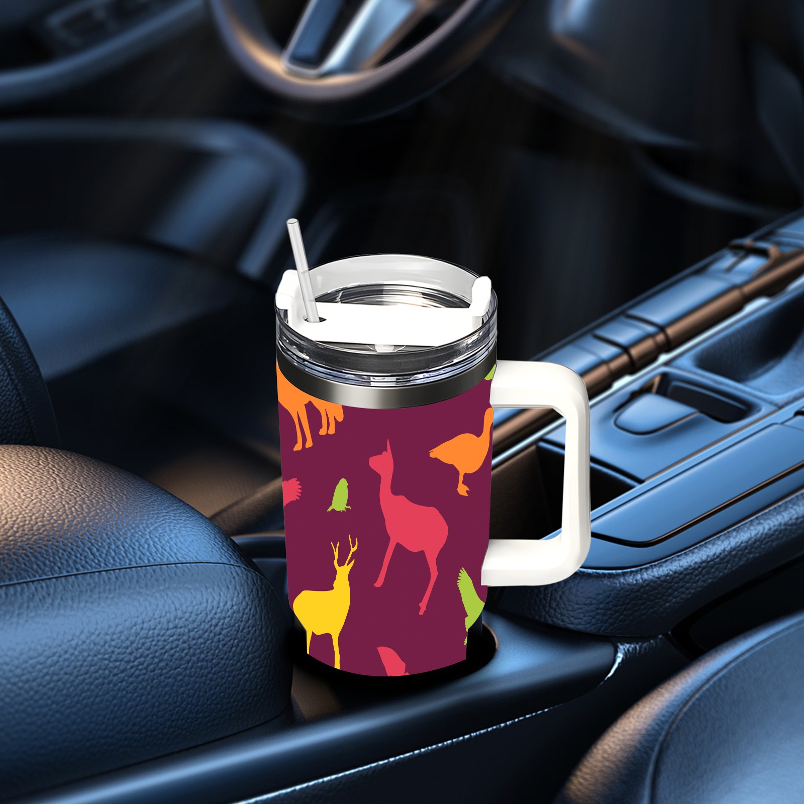 40oz Animals Seamless Colorful thermos with lid and straw, leak-proof stainless steel, with handle, spill-proof bottle, convenient for travel(pink)