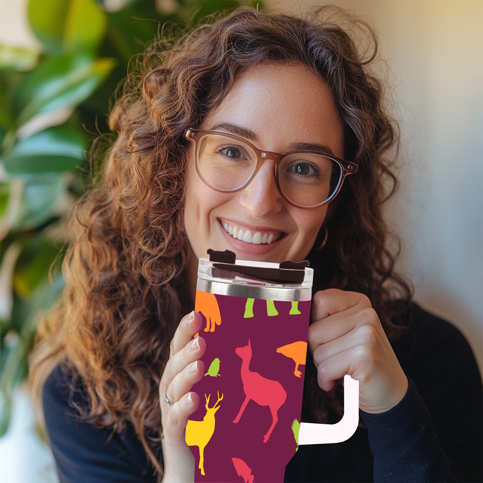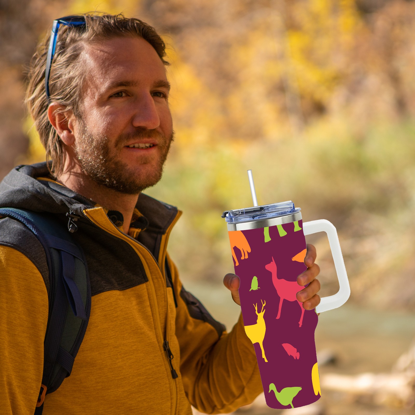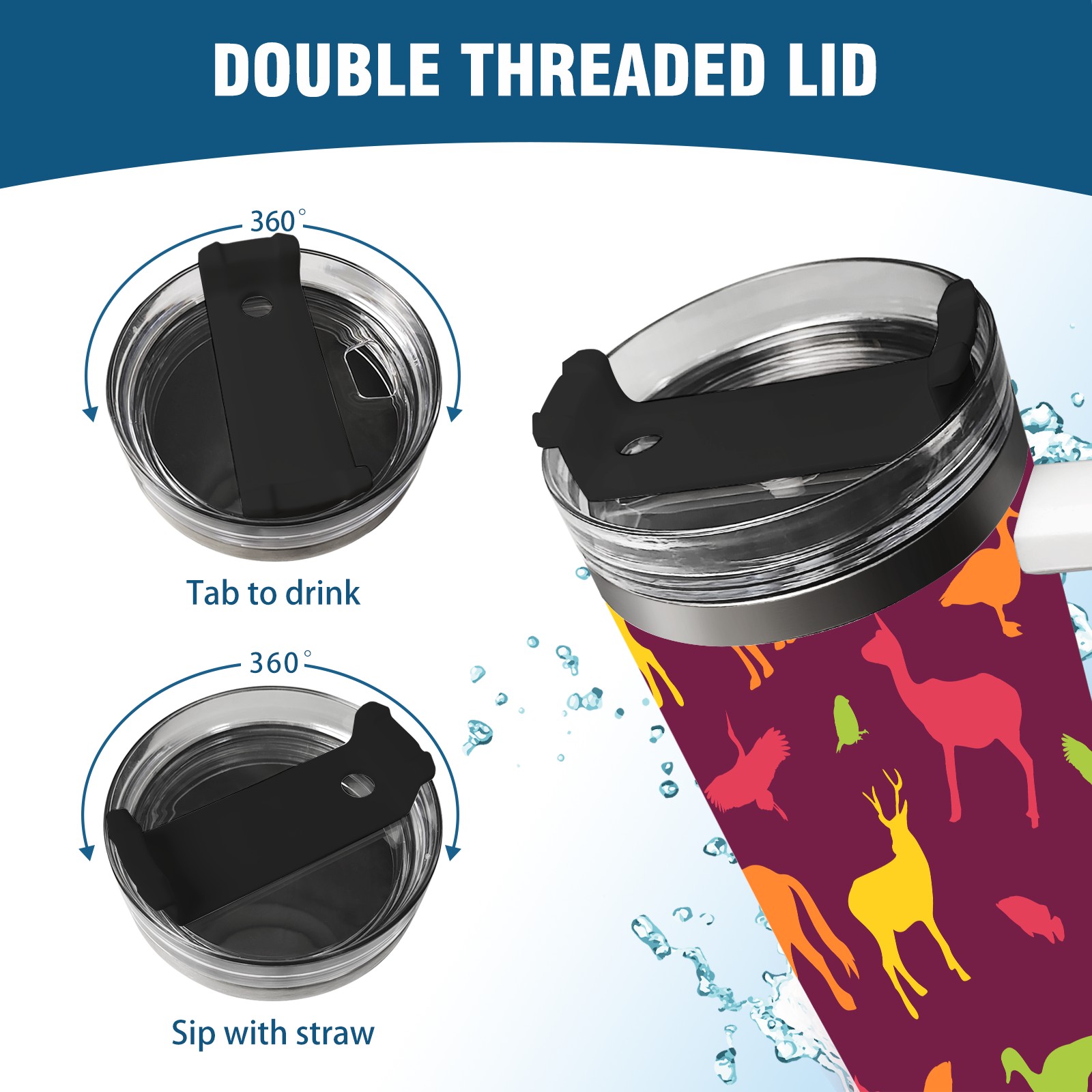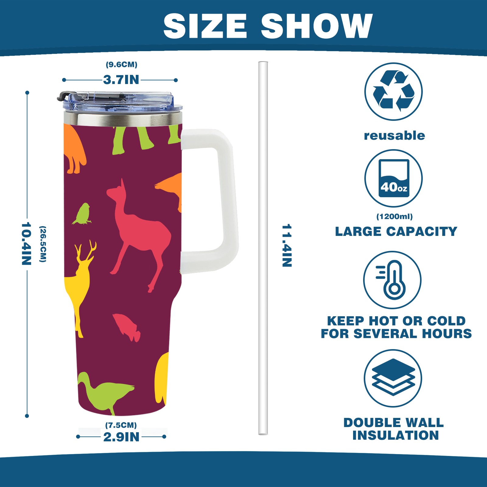 40oz Animals Seamless Colorful thermos with lid and straw, leak-proof stainless steel, with handle, spill-proof bottle, convenient for travel(pink)