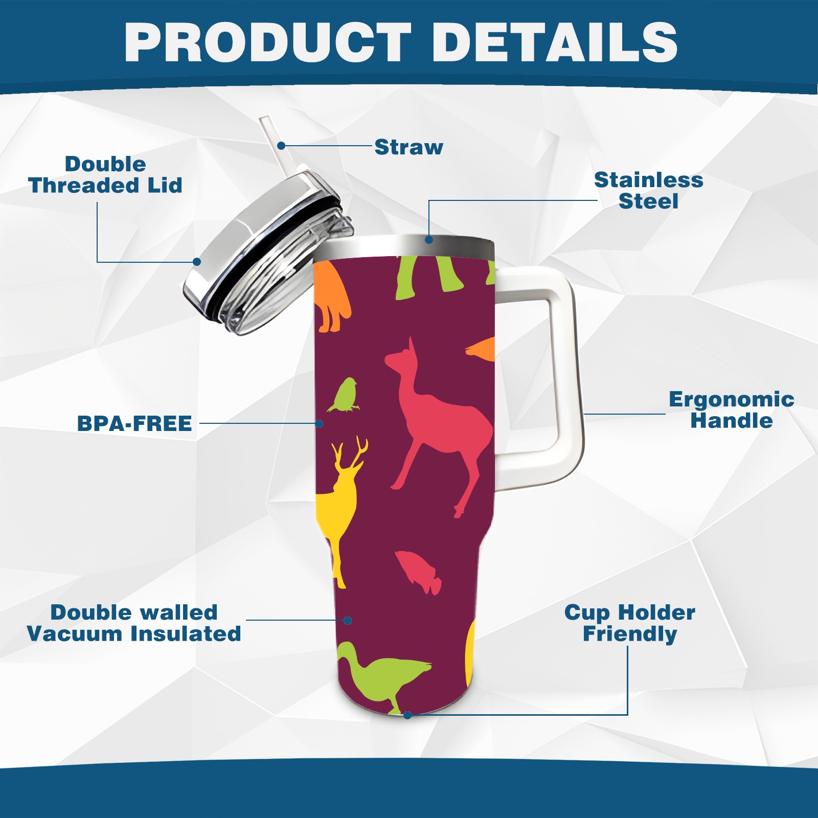 • <p>This multi-functional insulated water bottle features a simple and practical design, suitable for various daily scenarios. The ergonomic handle allows for easy one-handed drinking, and the detachable handle can be adjusted or removed as needed, making it convenient for commuting, exercising, or carrying to meetings. Made of high-quality stainless steel, it is BPA-free and features double-walled vacuum insulation technology that keeps drinks cold for 8 hours and hot for 6 hours, ensuring you can enjoy your beverage at the perfect temperature anytime, anywhere. The 40-ounce Christmas edition comes with a sliding lid, silicone straw, and a non-slip design. Accessories are dishwasher safe, and the narrow bottom and wide mouth design perfectly fits car cup holders. The exclusive flip-top straw lid is environmentally friendly and durable, with a one-touch leak-proof closure and two drinking modes: sip and gulp. A dust cover provides effective protection. This bottle is suitable for travel, office work, sports, camping, and other occasions, making it a thoughtful gift for friends and family.</p>