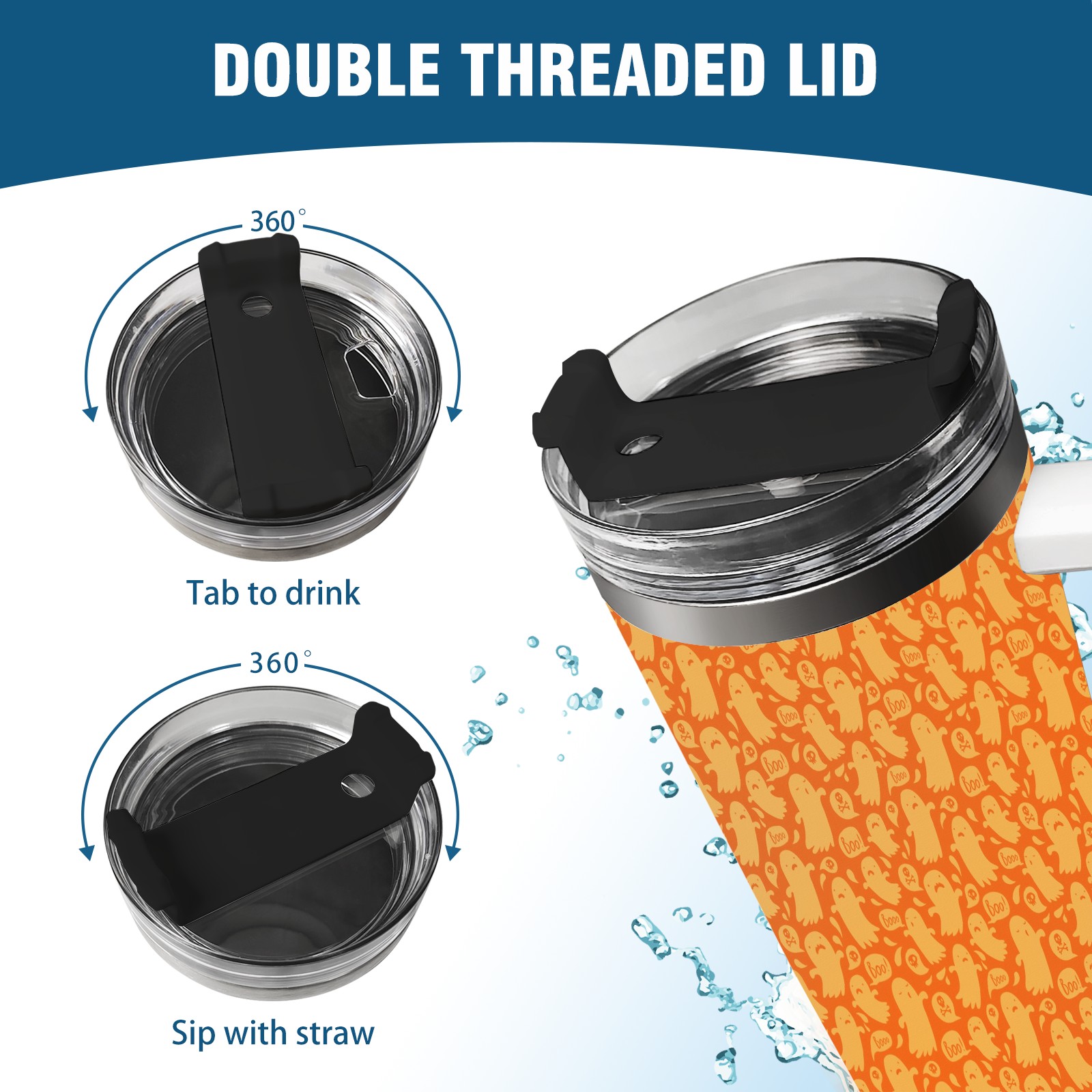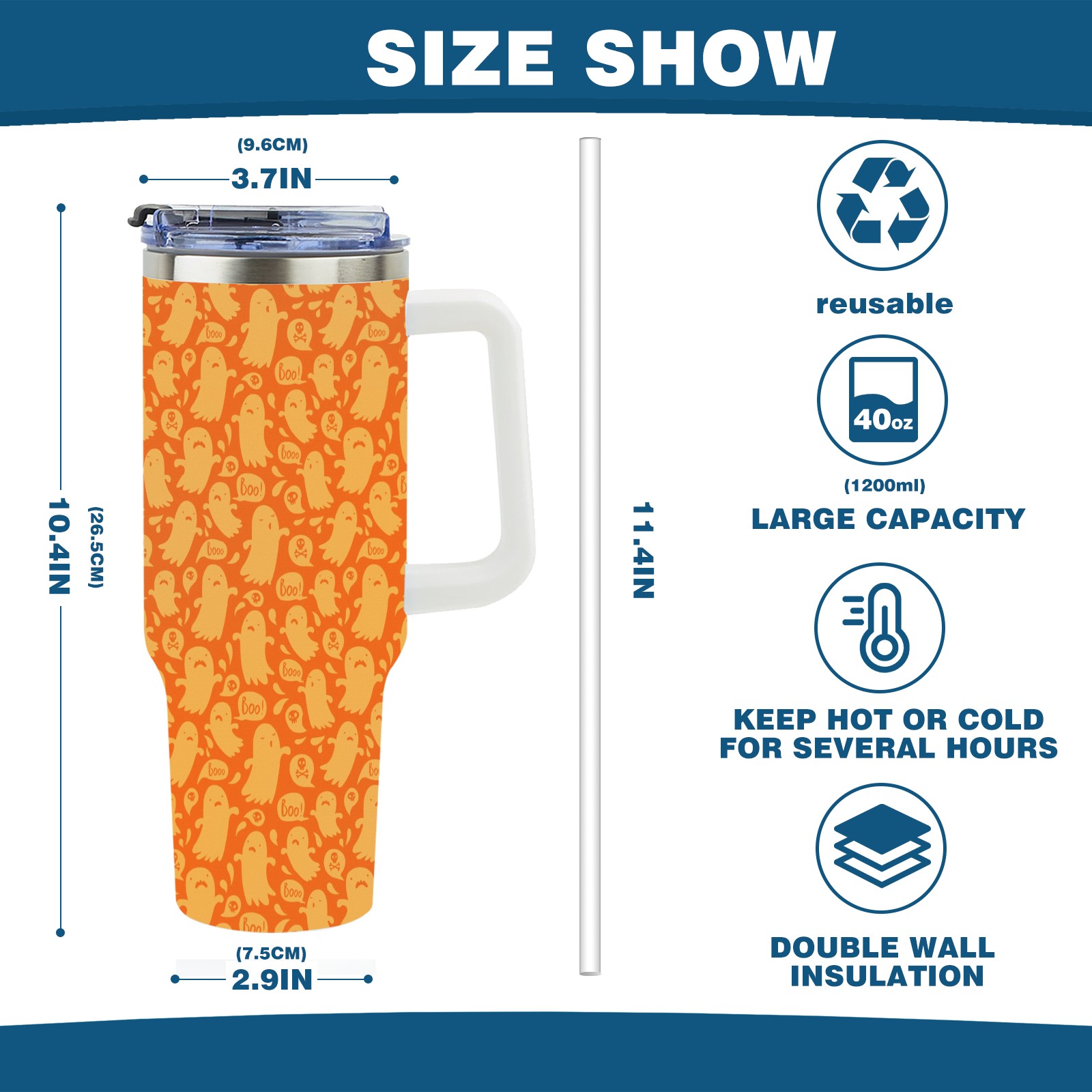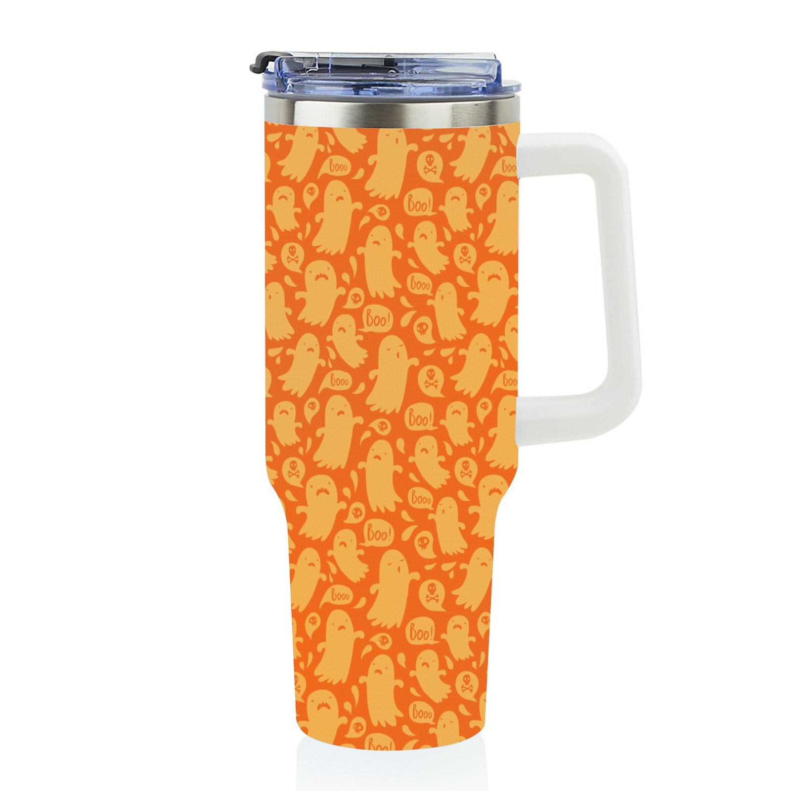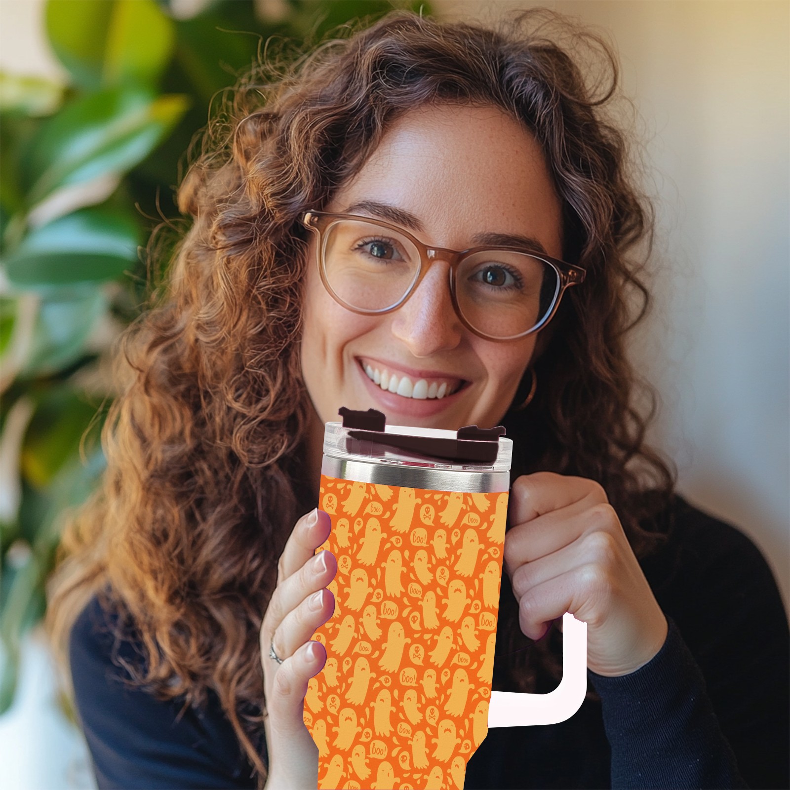 40oz Halloween Ghosts Seamless thermos with lid and straw, leak-proof stainless steel, with handle, spill-proof bottle, convenient for travel(pink)