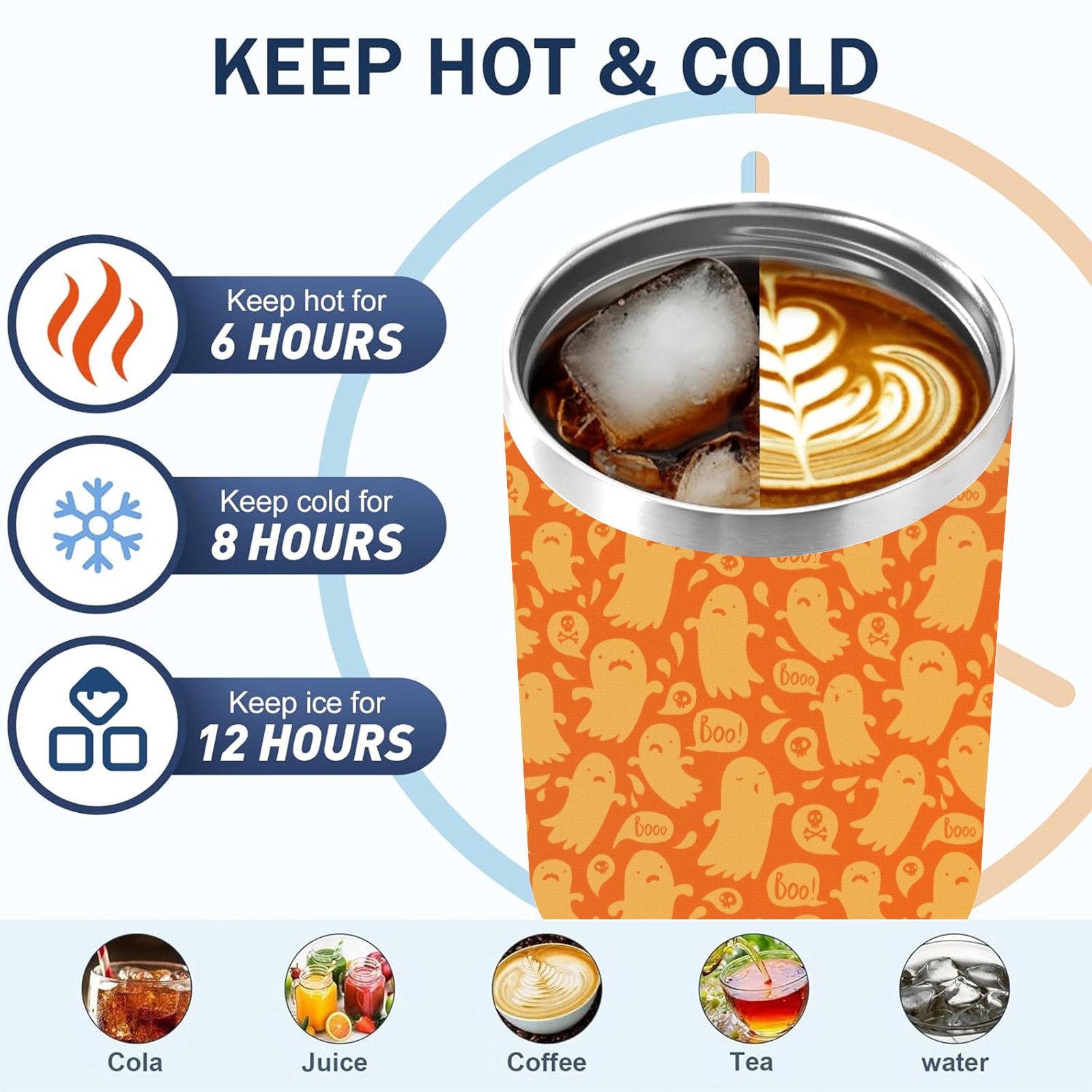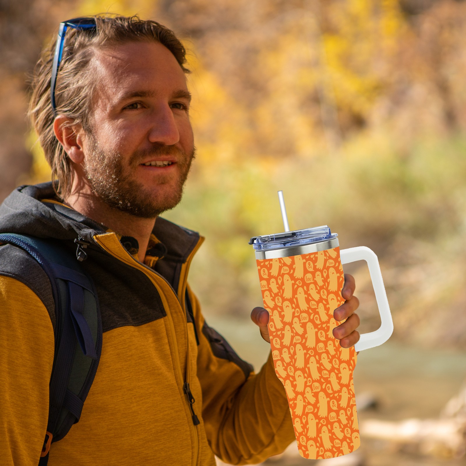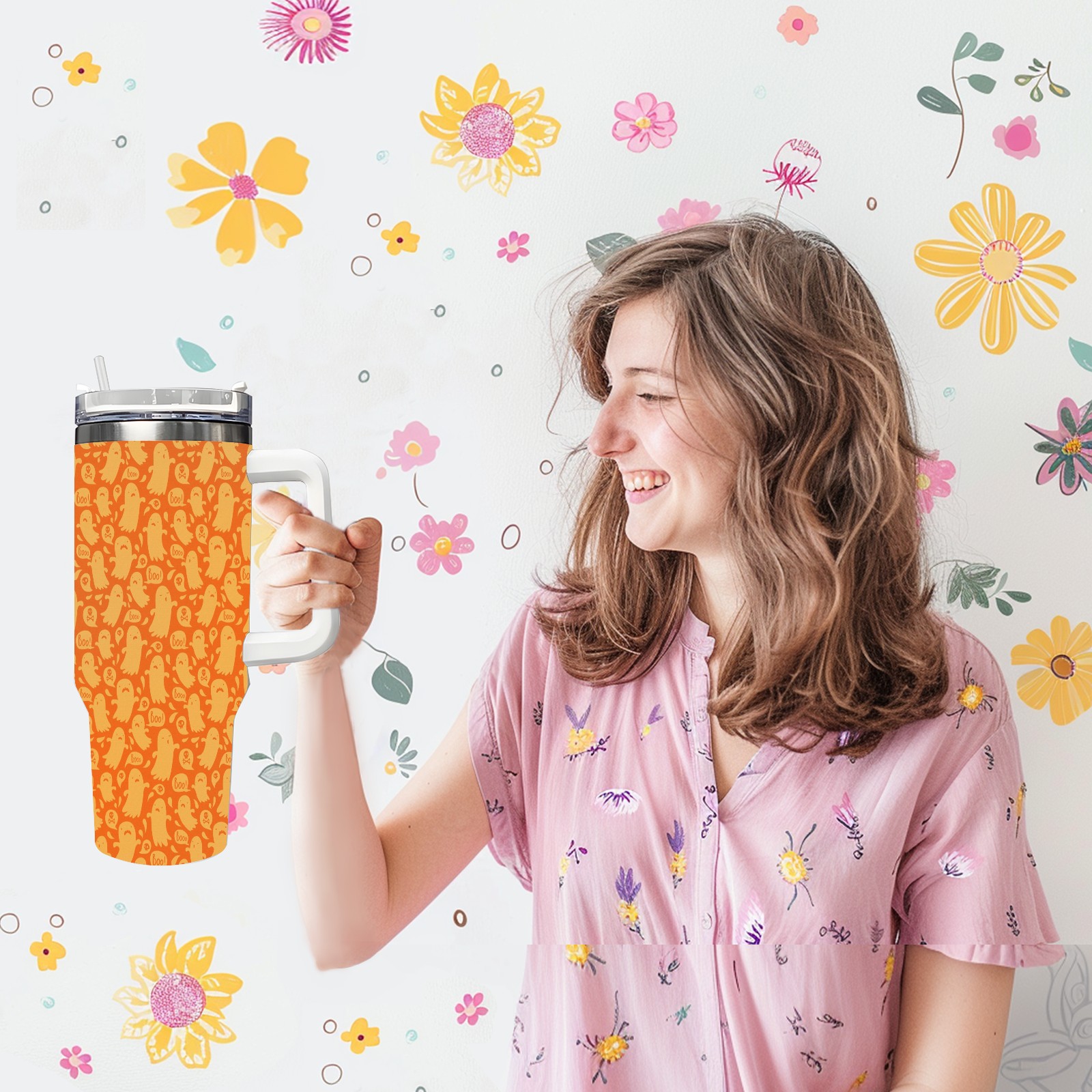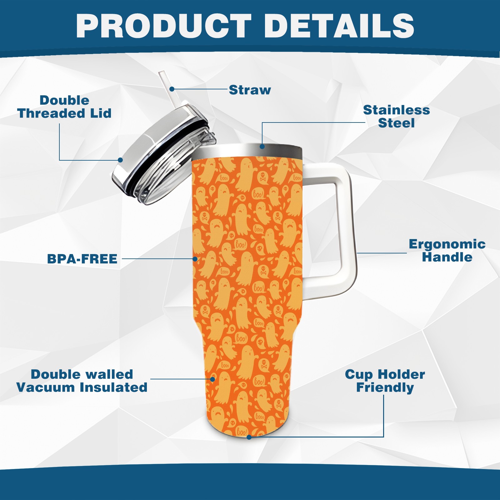 40oz Halloween Ghosts Seamless thermos with lid and straw, leak-proof stainless steel, with handle, spill-proof bottle, convenient for travel(pink)