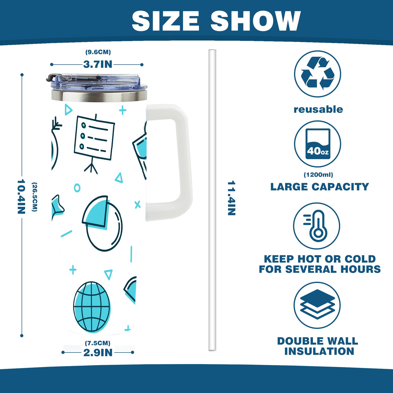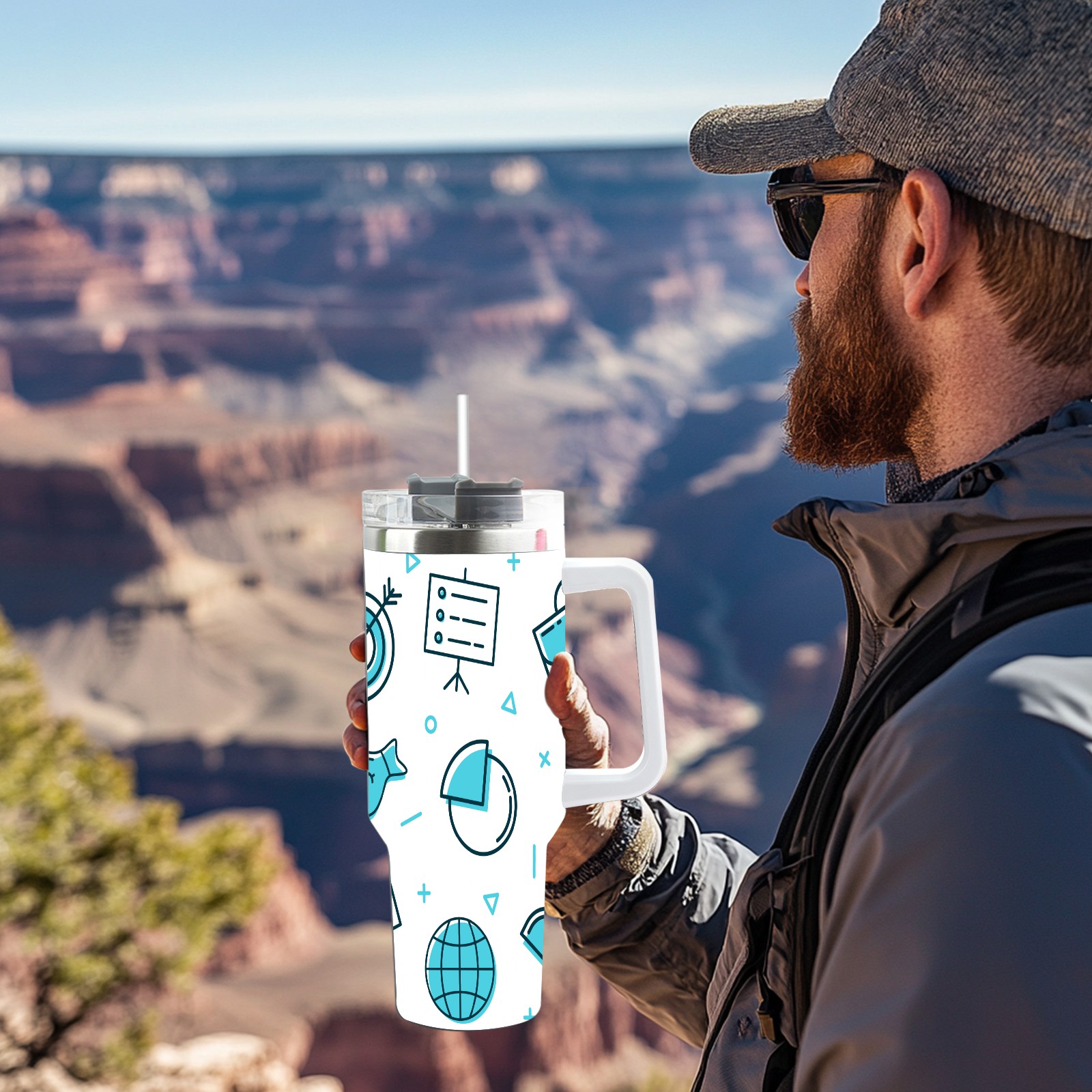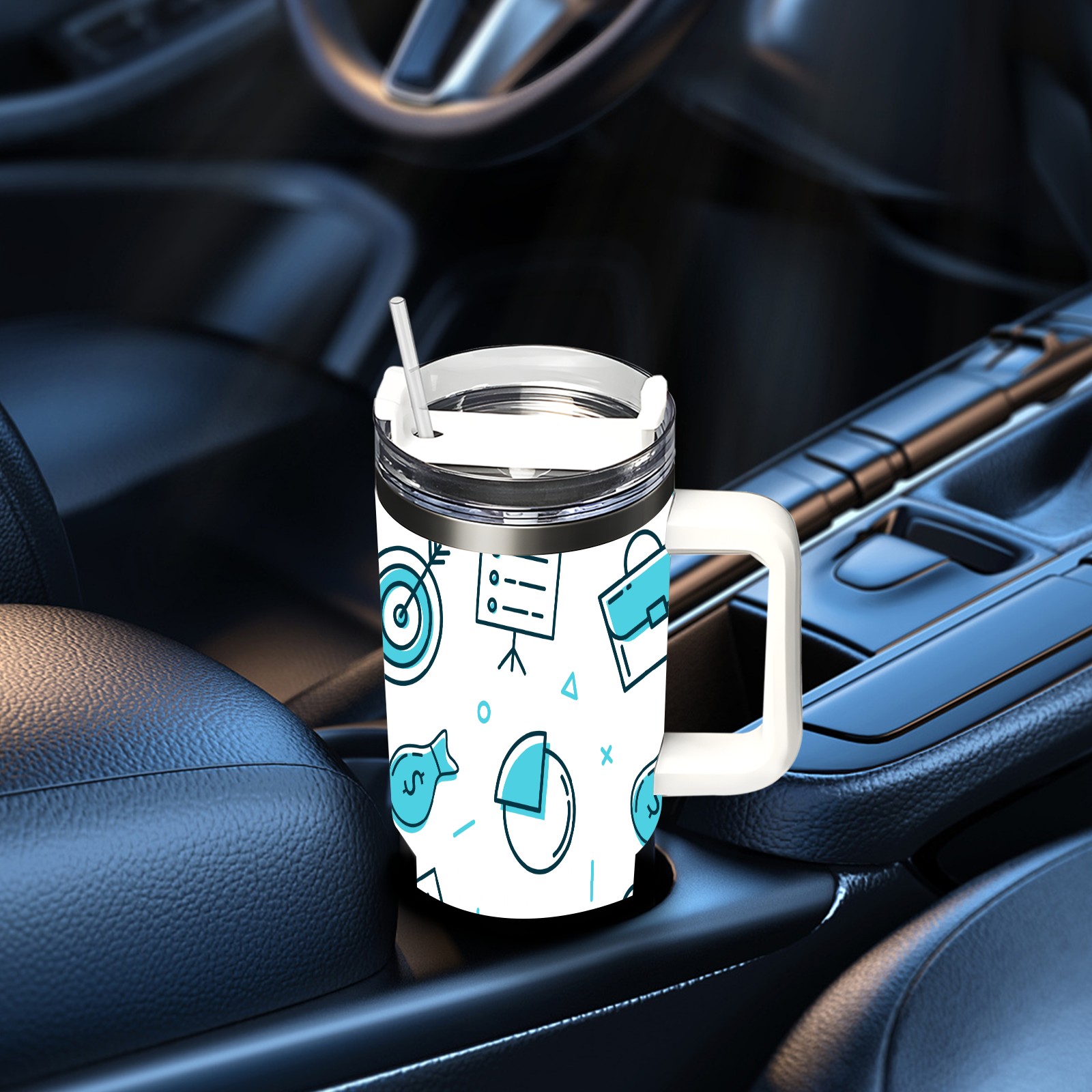 40oz Business Graphics Seamless thermos with lid and straw, leak-proof stainless steel, with handle, spill-proof bottle, convenient for travel(pink)