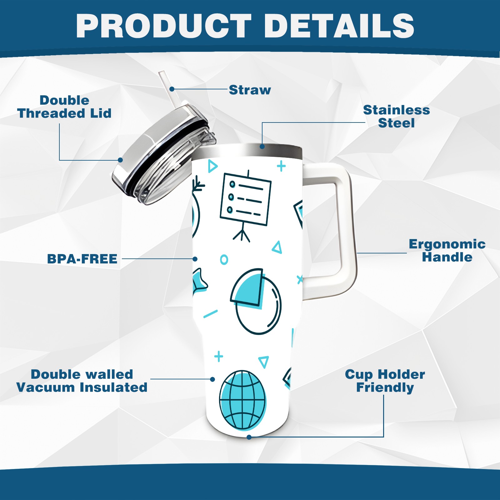• <p>This multi-functional insulated water bottle features a simple and practical design, suitable for various daily scenarios. The ergonomic handle allows for easy one-handed drinking, and the detachable handle can be adjusted or removed as needed, making it convenient for commuting, exercising, or carrying to meetings. Made of high-quality stainless steel, it is BPA-free and features double-walled vacuum insulation technology that keeps drinks cold for 8 hours and hot for 6 hours, ensuring you can enjoy your beverage at the perfect temperature anytime, anywhere. The 40-ounce Christmas edition comes with a sliding lid, silicone straw, and a non-slip design. Accessories are dishwasher safe, and the narrow bottom and wide mouth design perfectly fits car cup holders. The exclusive flip-top straw lid is environmentally friendly and durable, with a one-touch leak-proof closure and two drinking modes: sip and gulp. A dust cover provides effective protection. This bottle is suitable for travel, office work, sports, camping, and other occasions, making it a thoughtful gift for friends and family.</p>
