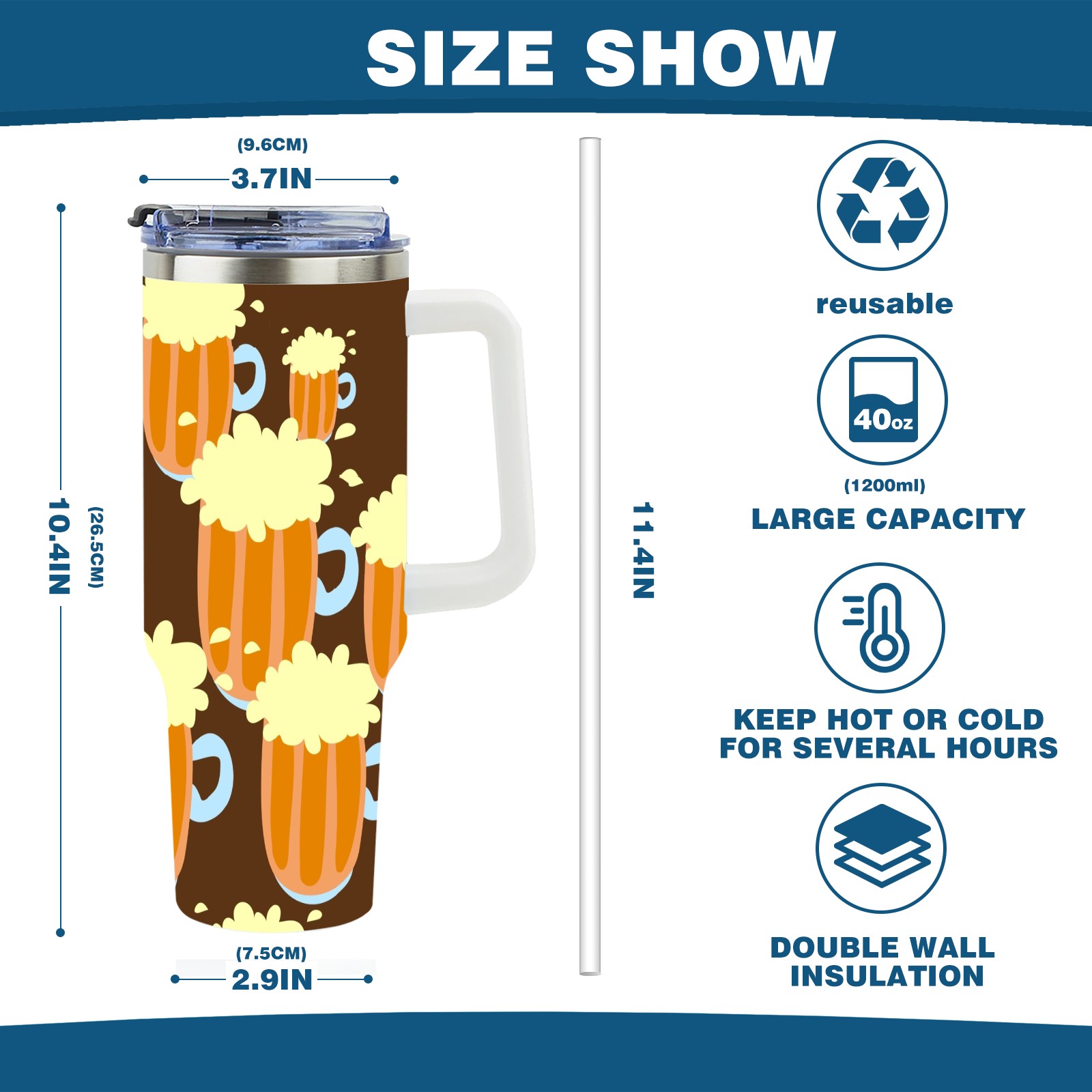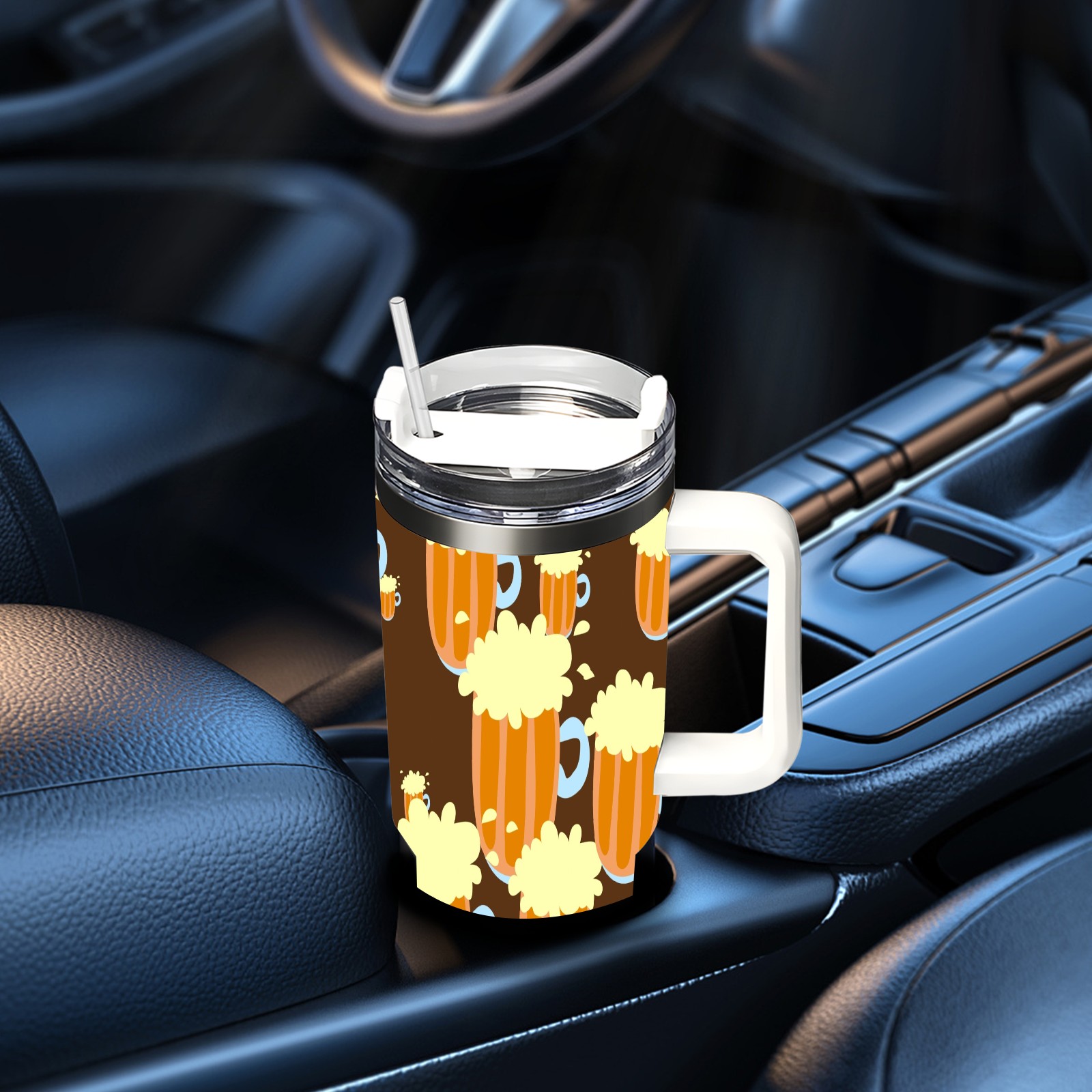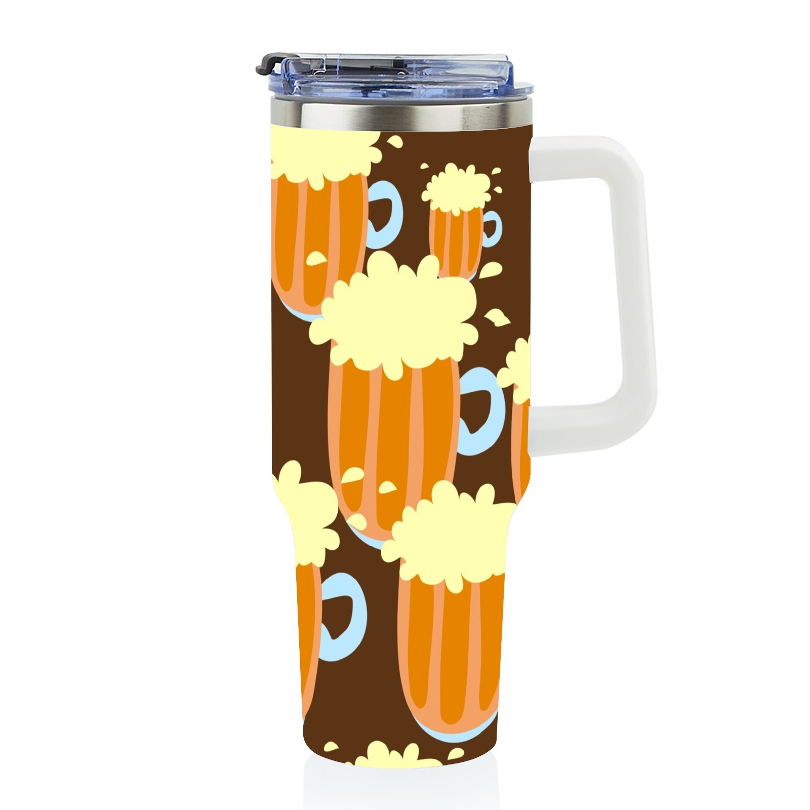 40oz Beer Seamless thermos with lid and straw, leak-proof stainless steel, with handle, spill-proof bottle, convenient for travel(pink)
