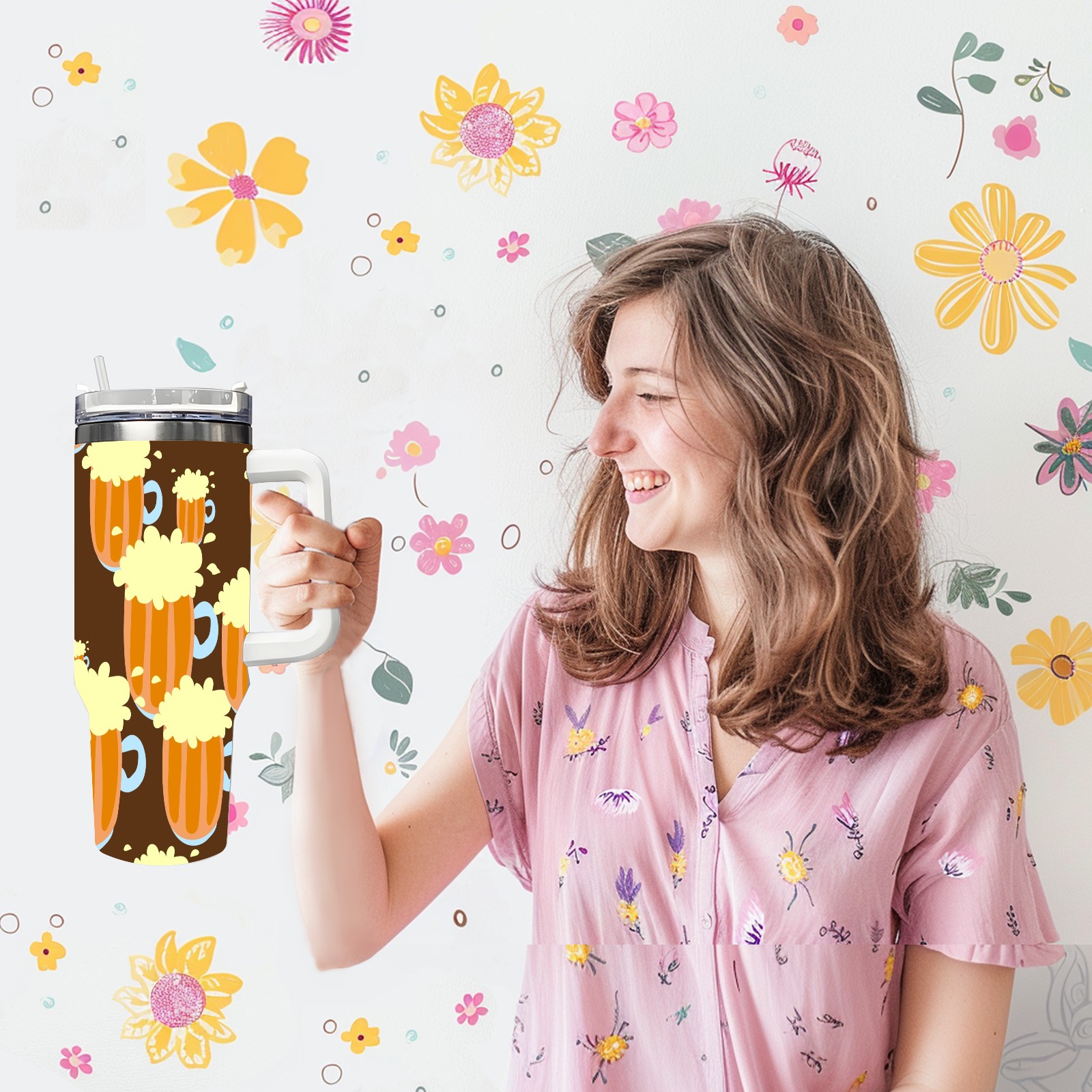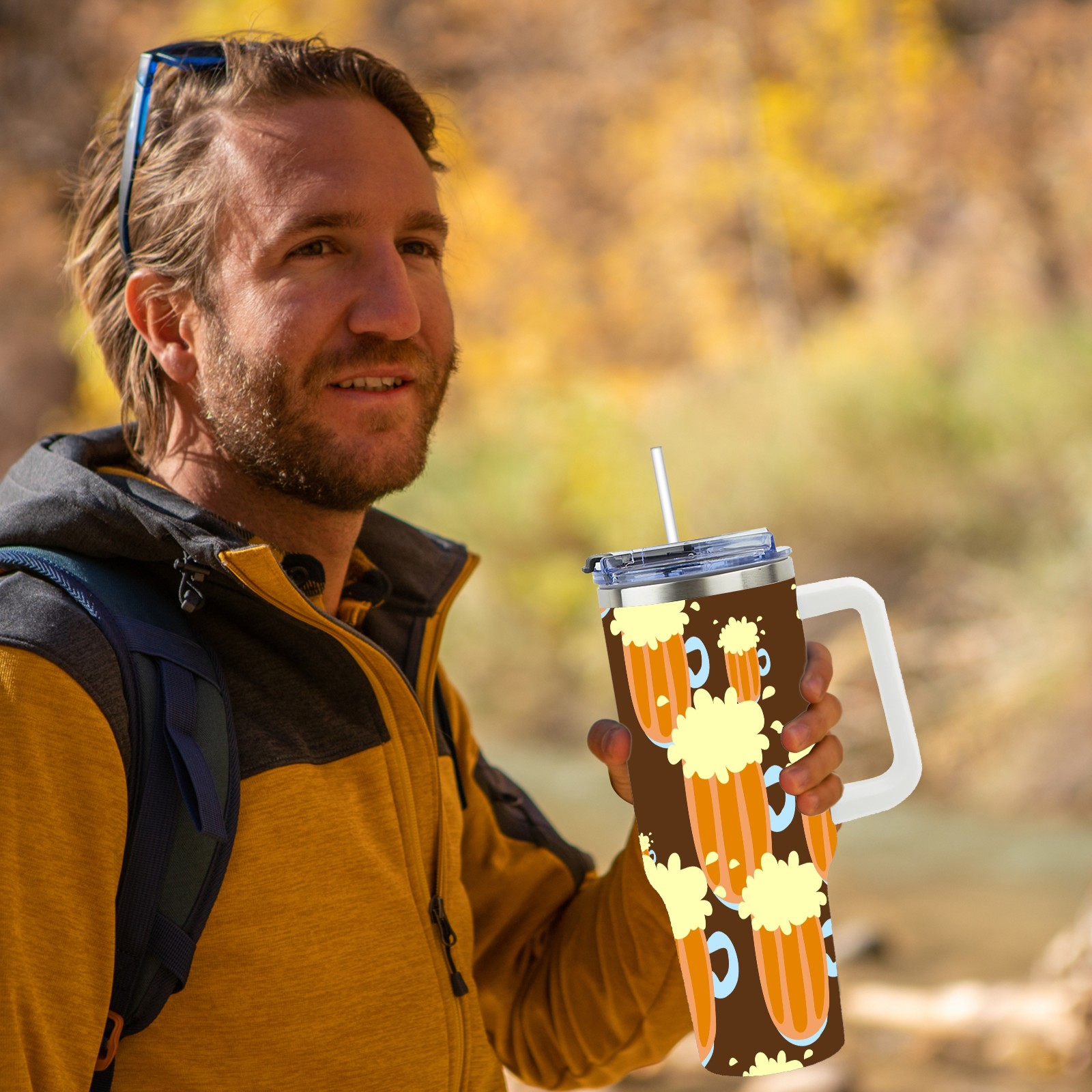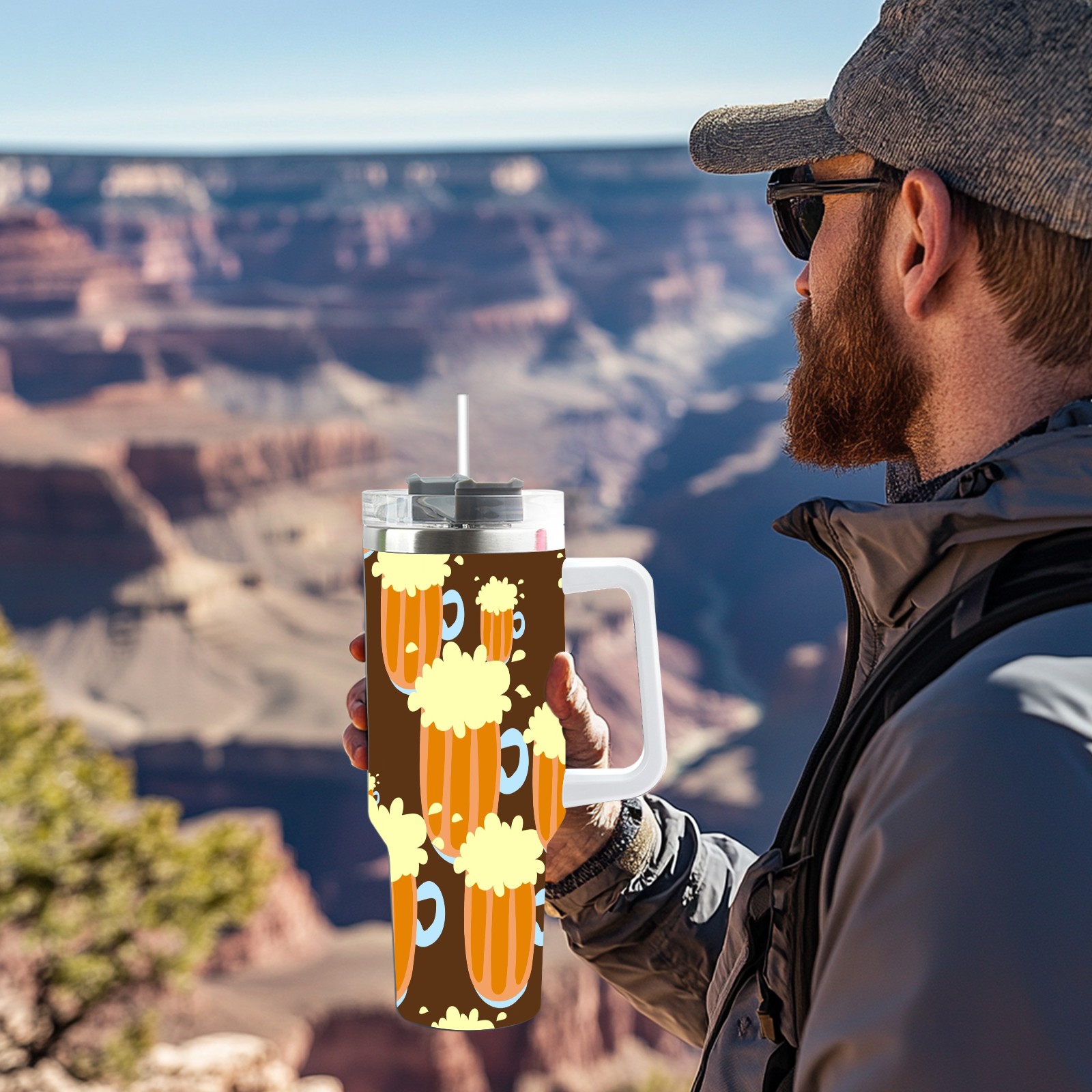 40oz Beer Seamless thermos with lid and straw, leak-proof stainless steel, with handle, spill-proof bottle, convenient for travel(pink)