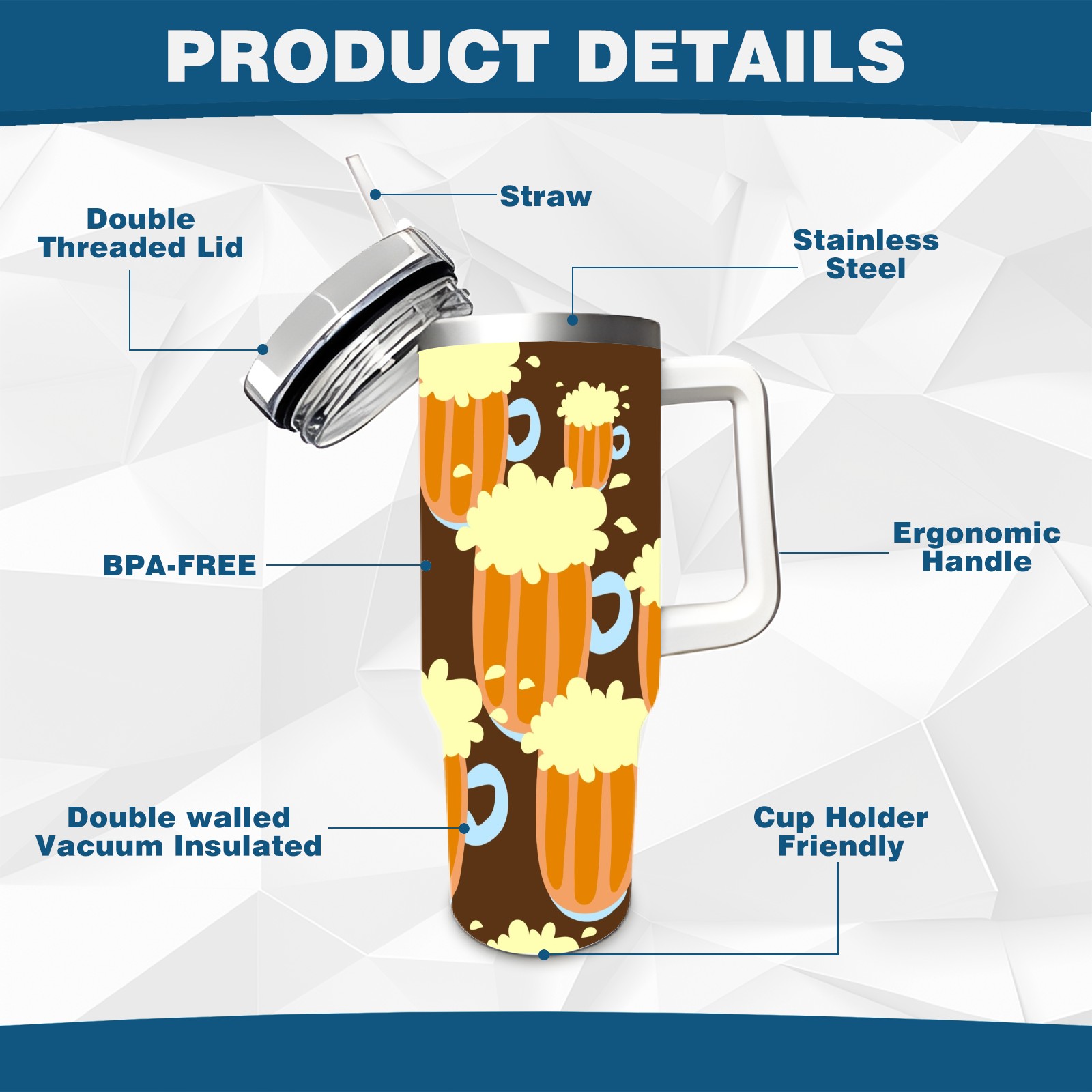 • <p>This multi-functional insulated water bottle features a simple and practical design, suitable for various daily scenarios. The ergonomic handle allows for easy one-handed drinking, and the detachable handle can be adjusted or removed as needed, making it convenient for commuting, exercising, or carrying to meetings. Made of high-quality stainless steel, it is BPA-free and features double-walled vacuum insulation technology that keeps drinks cold for 8 hours and hot for 6 hours, ensuring you can enjoy your beverage at the perfect temperature anytime, anywhere. The 40-ounce Christmas edition comes with a sliding lid, silicone straw, and a non-slip design. Accessories are dishwasher safe, and the narrow bottom and wide mouth design perfectly fits car cup holders. The exclusive flip-top straw lid is environmentally friendly and durable, with a one-touch leak-proof closure and two drinking modes: sip and gulp. A dust cover provides effective protection. This bottle is suitable for travel, office work, sports, camping, and other occasions, making it a thoughtful gift for friends and family.</p>