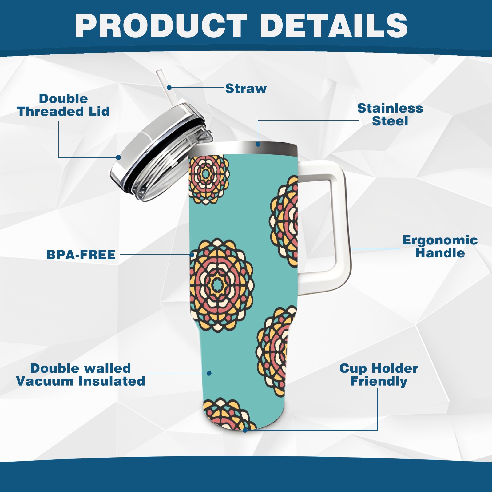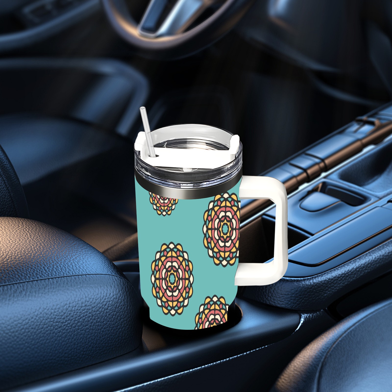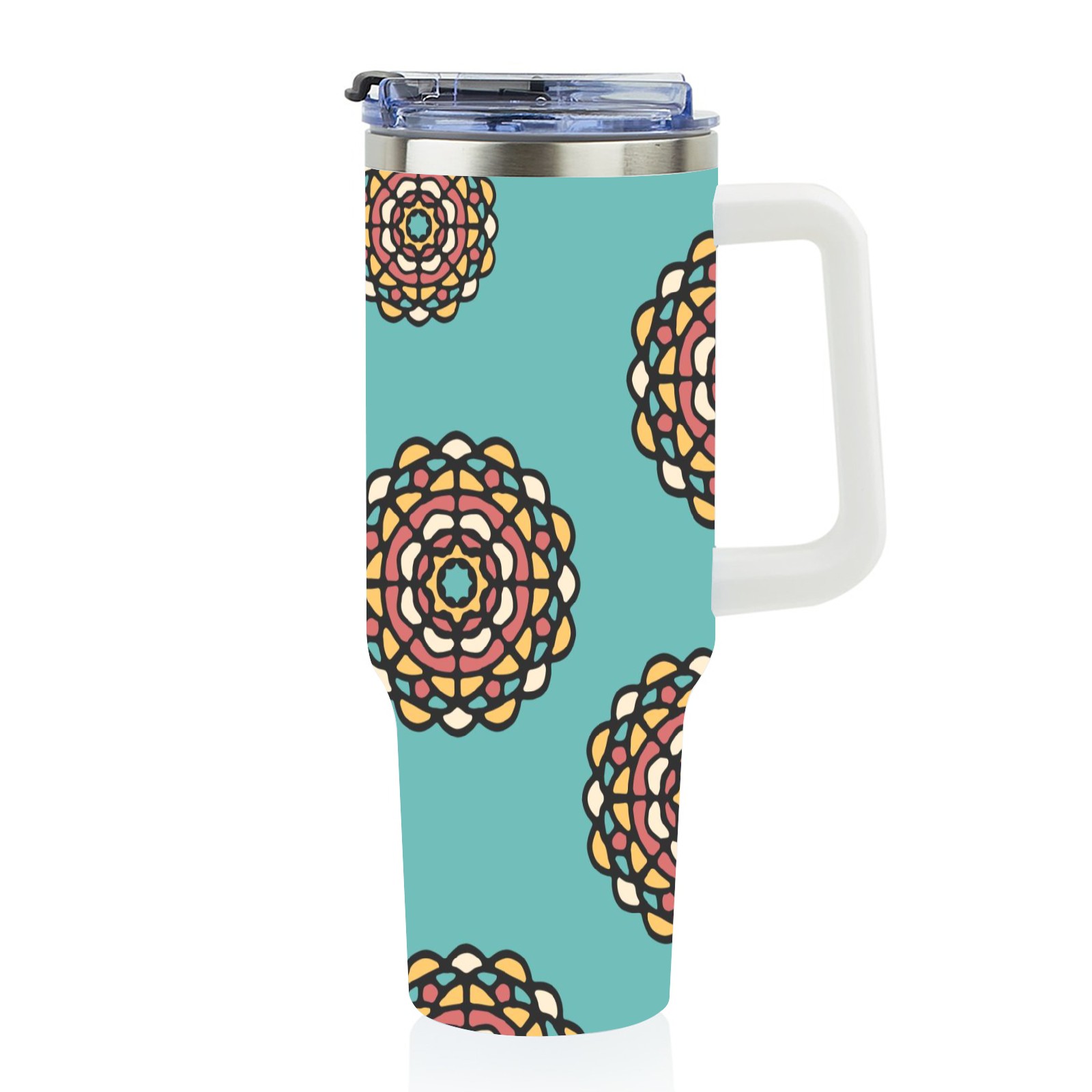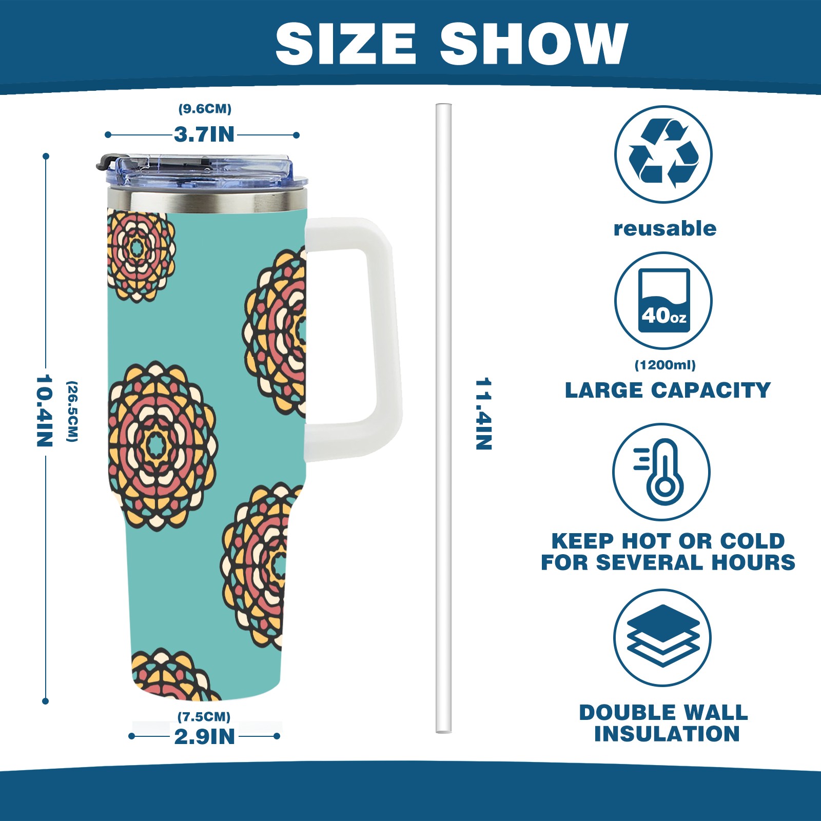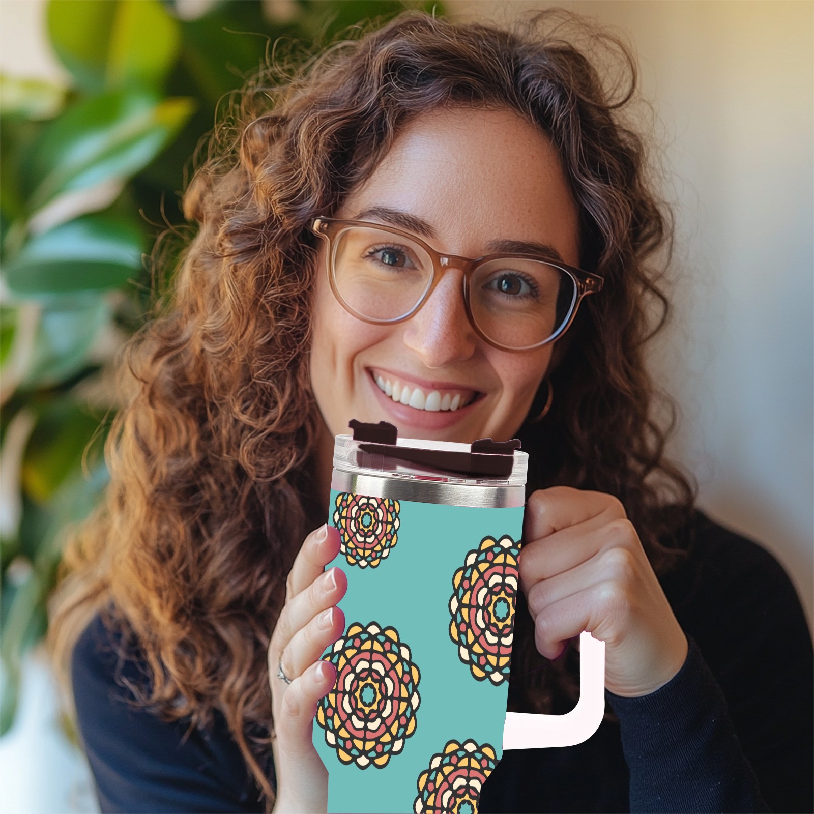 40oz Circle Seamless Abstract thermos with lid and straw, leak-proof stainless steel, with handle, spill-proof bottle, convenient for travel(pink)
