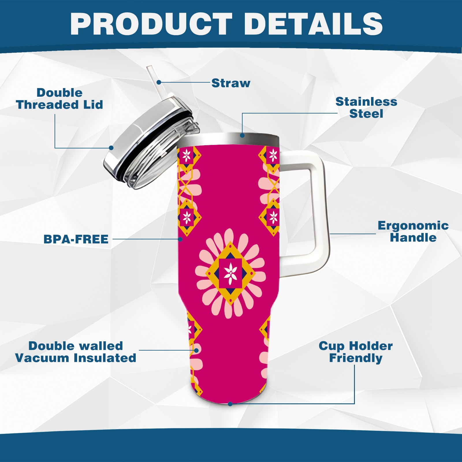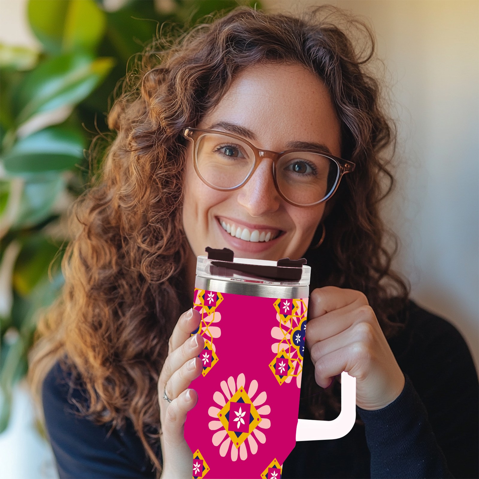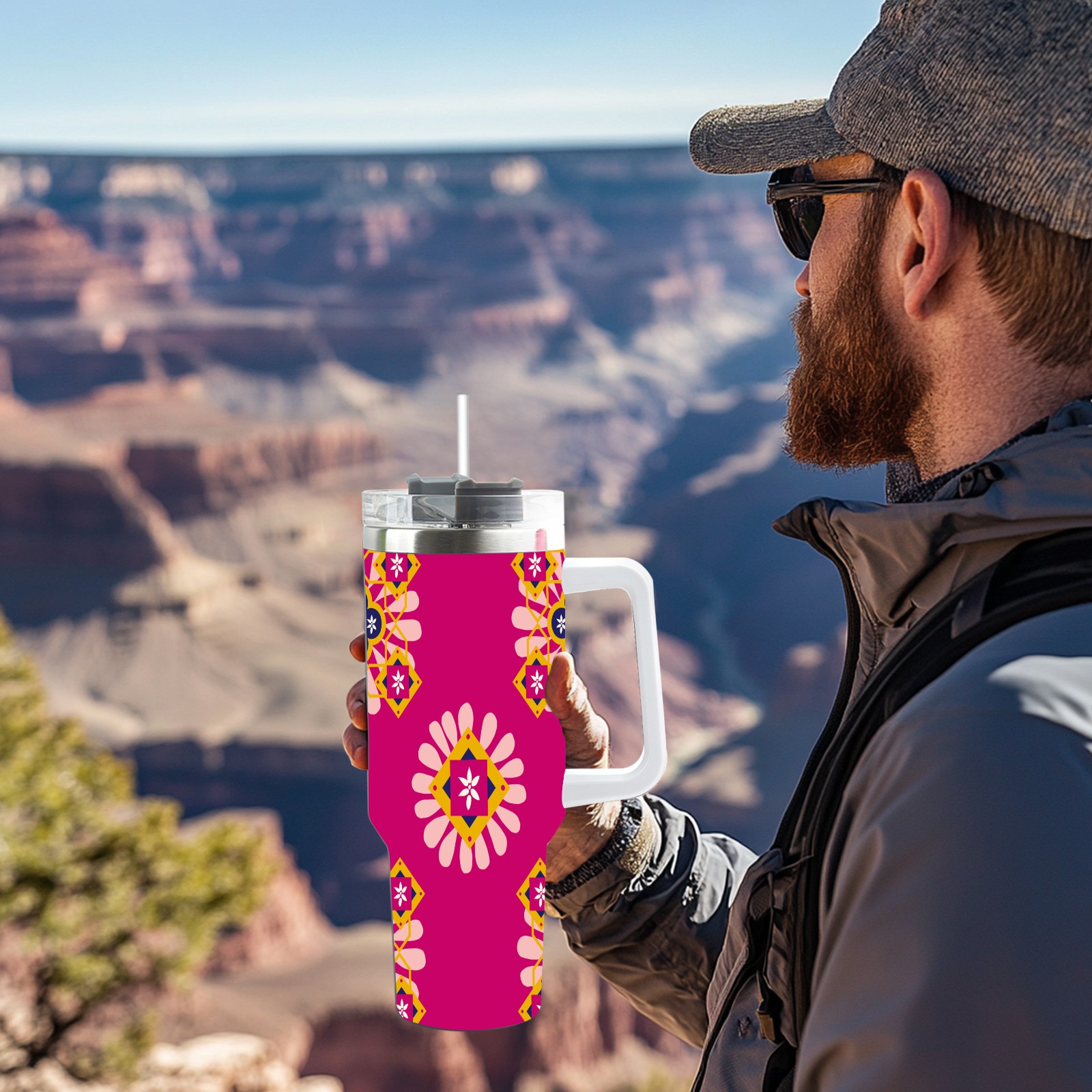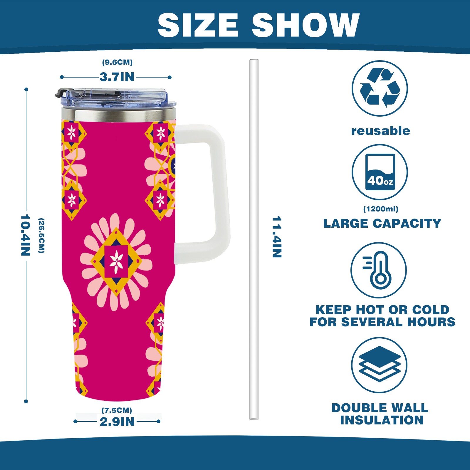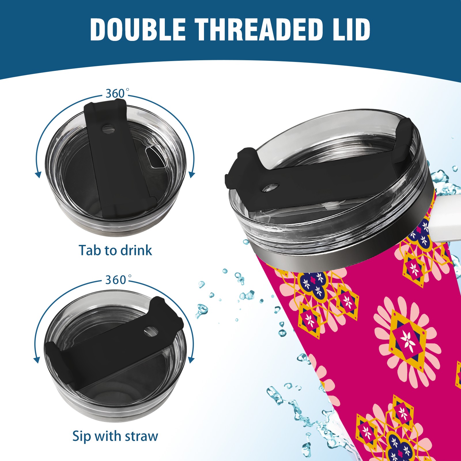40oz Morocco Style Colorful thermos with lid and straw, leak-proof stainless steel, with handle, spill-proof bottle, convenient for travel(pink)