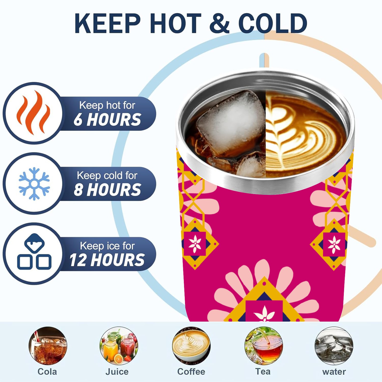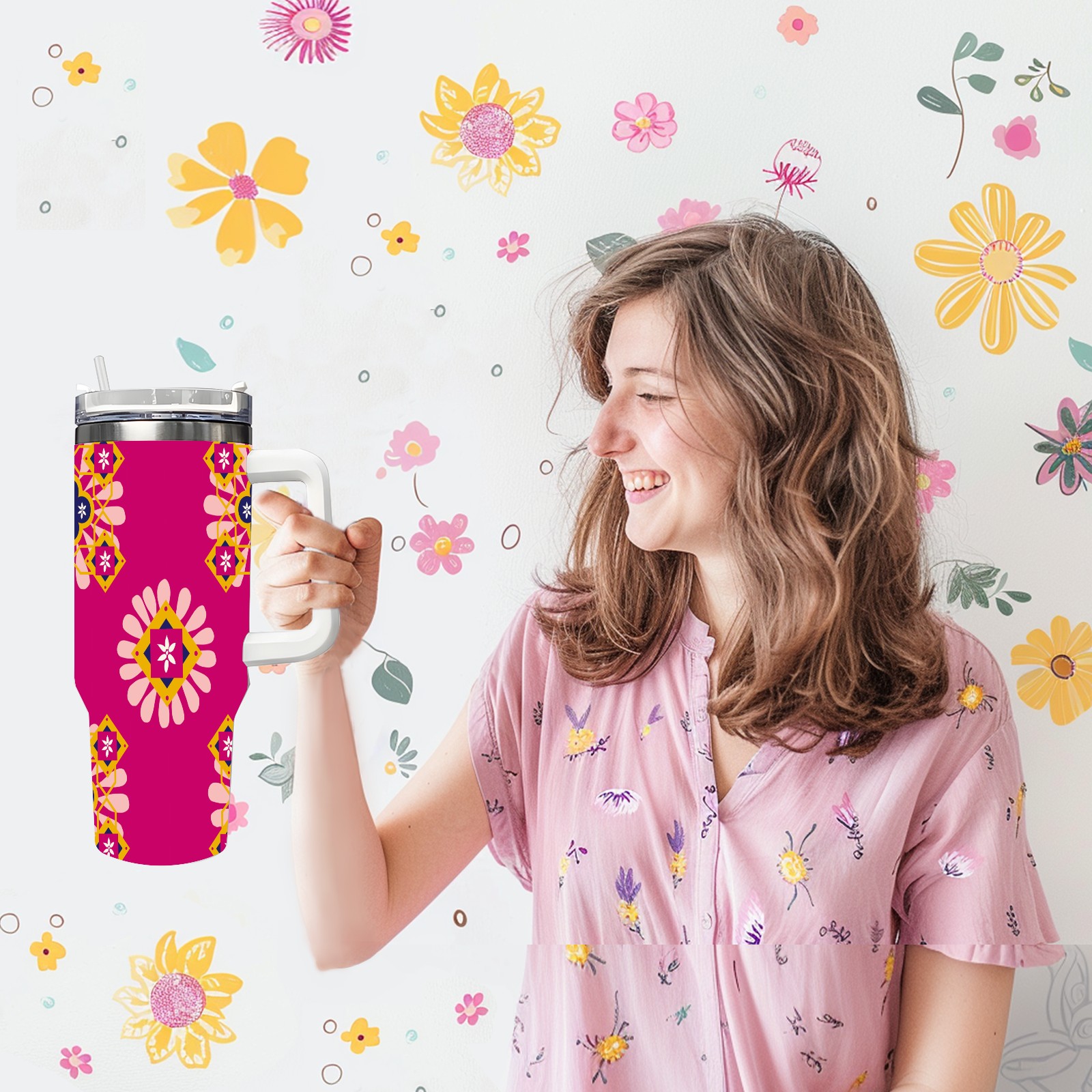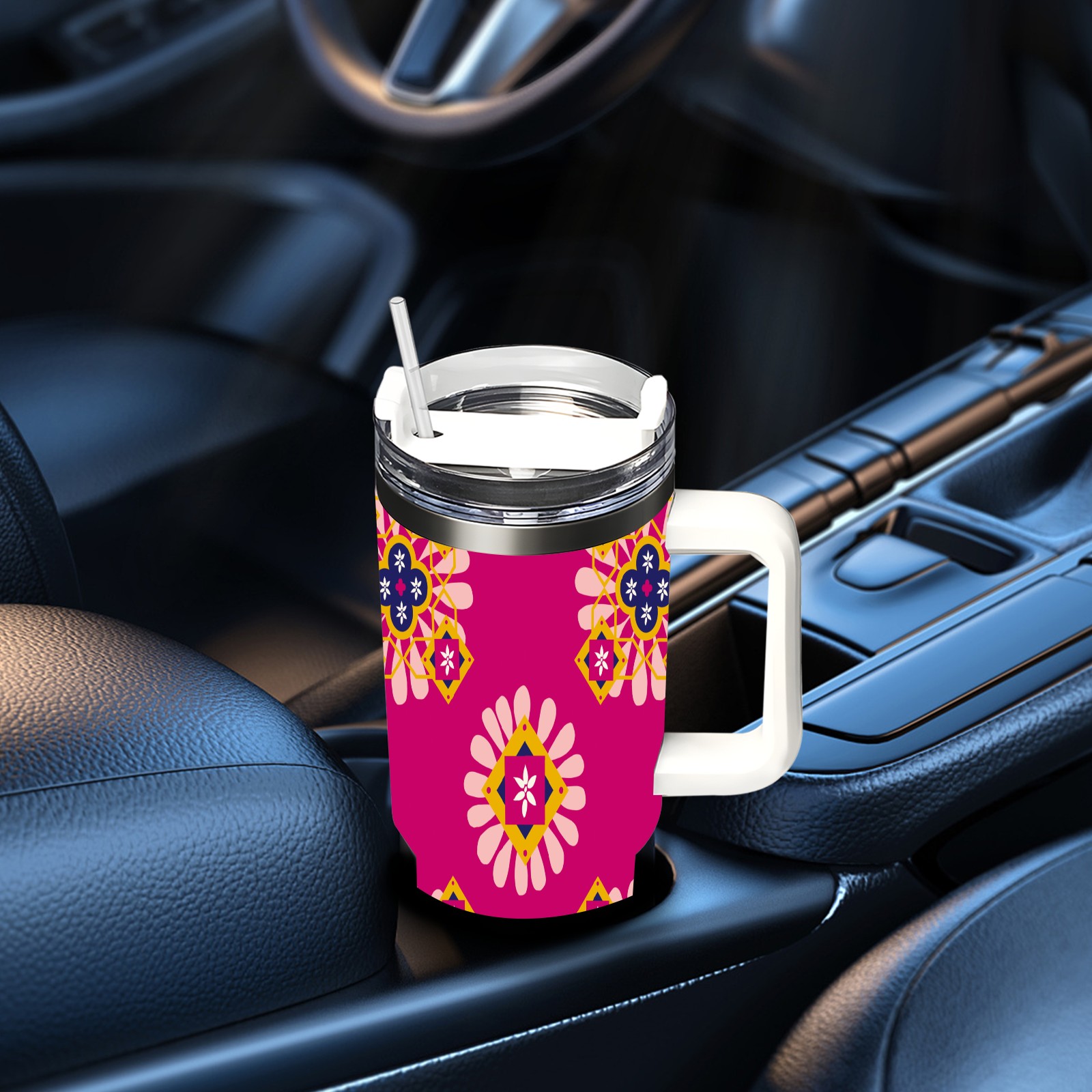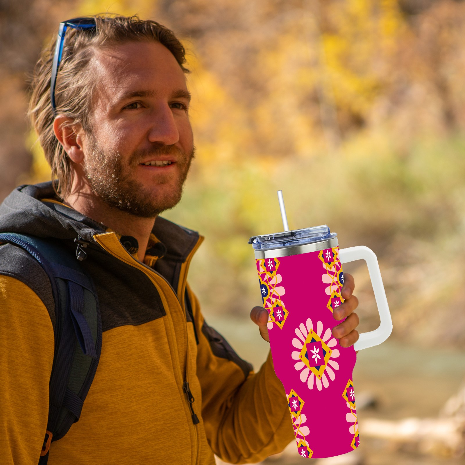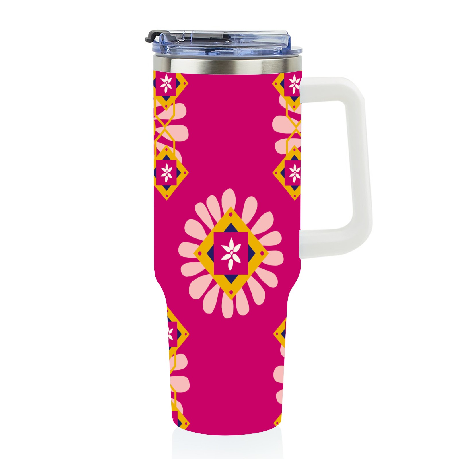 40oz Morocco Style Colorful thermos with lid and straw, leak-proof stainless steel, with handle, spill-proof bottle, convenient for travel(pink)